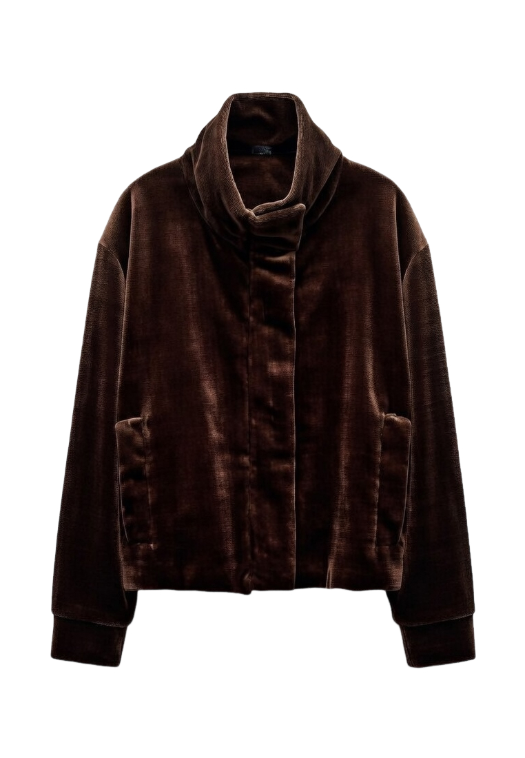 Бомбер из микровельвета на молнии с дополнительными магнитными кнопками,