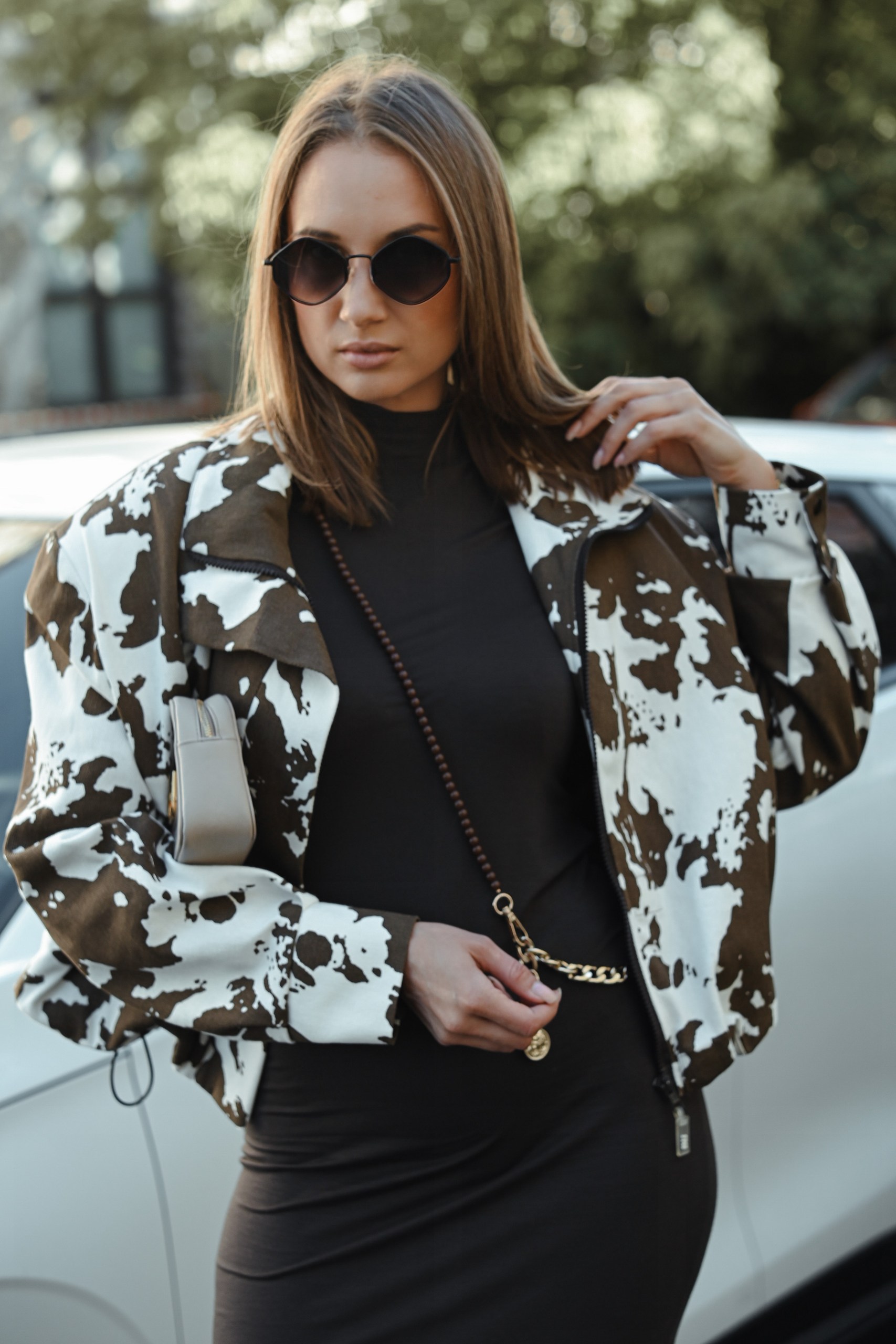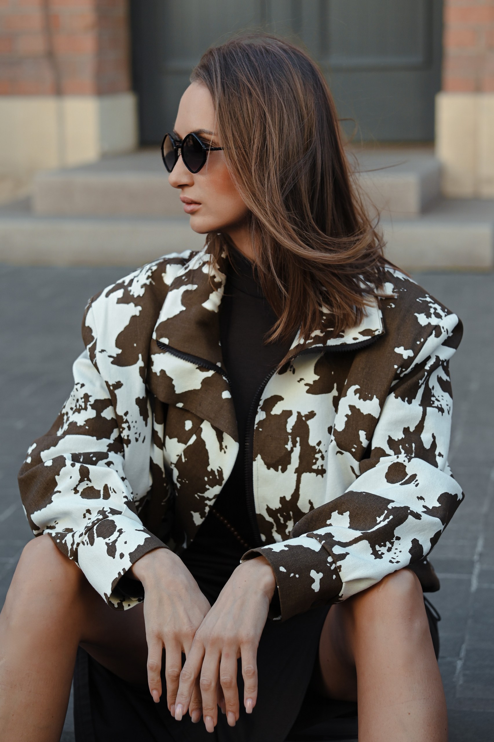 Бомбер "Коровий принт" на молнии с дополнительными магнитными кнопками,