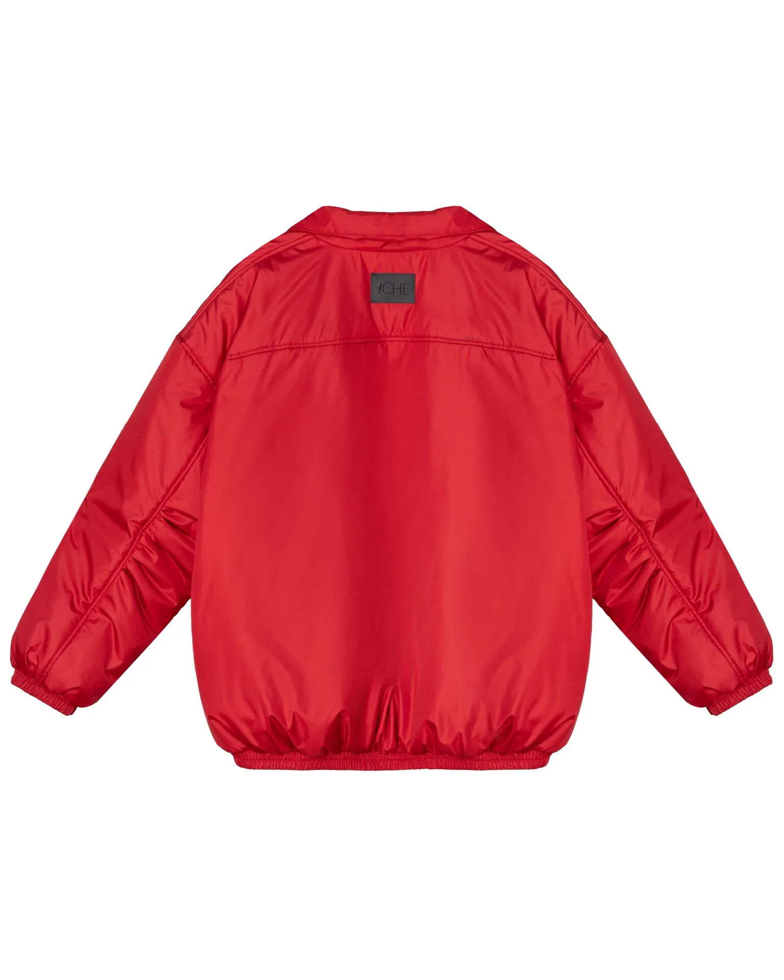 Утепленный бомбер из мембранной ткани со сборками по рукавам и застежкой на молнию, с высоким воротом-стойкой и кокеткой по спинке.