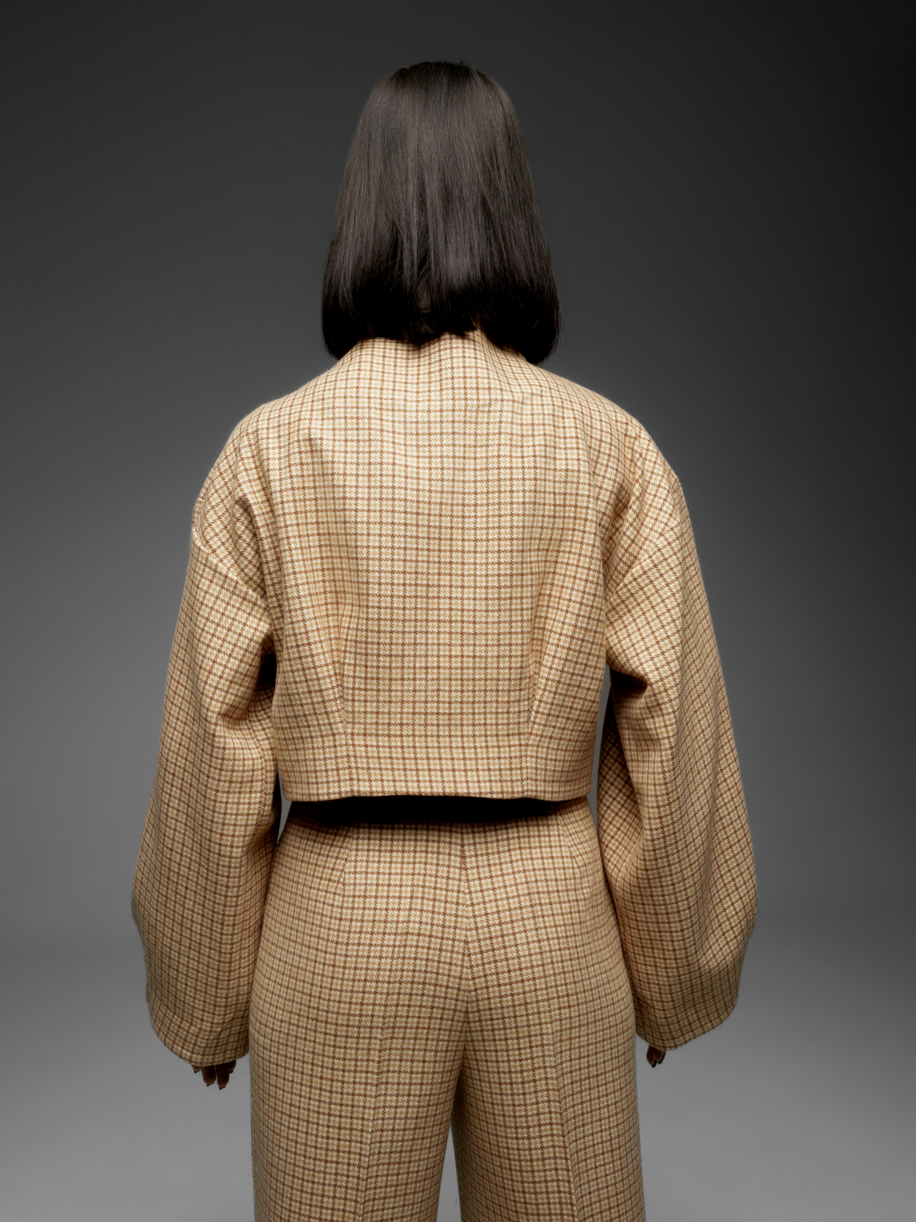 Бомбер с объемными рукавами как альтернатива пальто. Укороченная модель. Бомбер из шерсти в мелкий квадрат. Изящная модель сложного кроя длиной до бедра. Мягкая шерсть австралийского мериноса. Используемые волокна делают материал легче и долговечнее. В отличие от других видов шерсти, она совершенно не колется; обладает высокой воздухопроницаемостью.