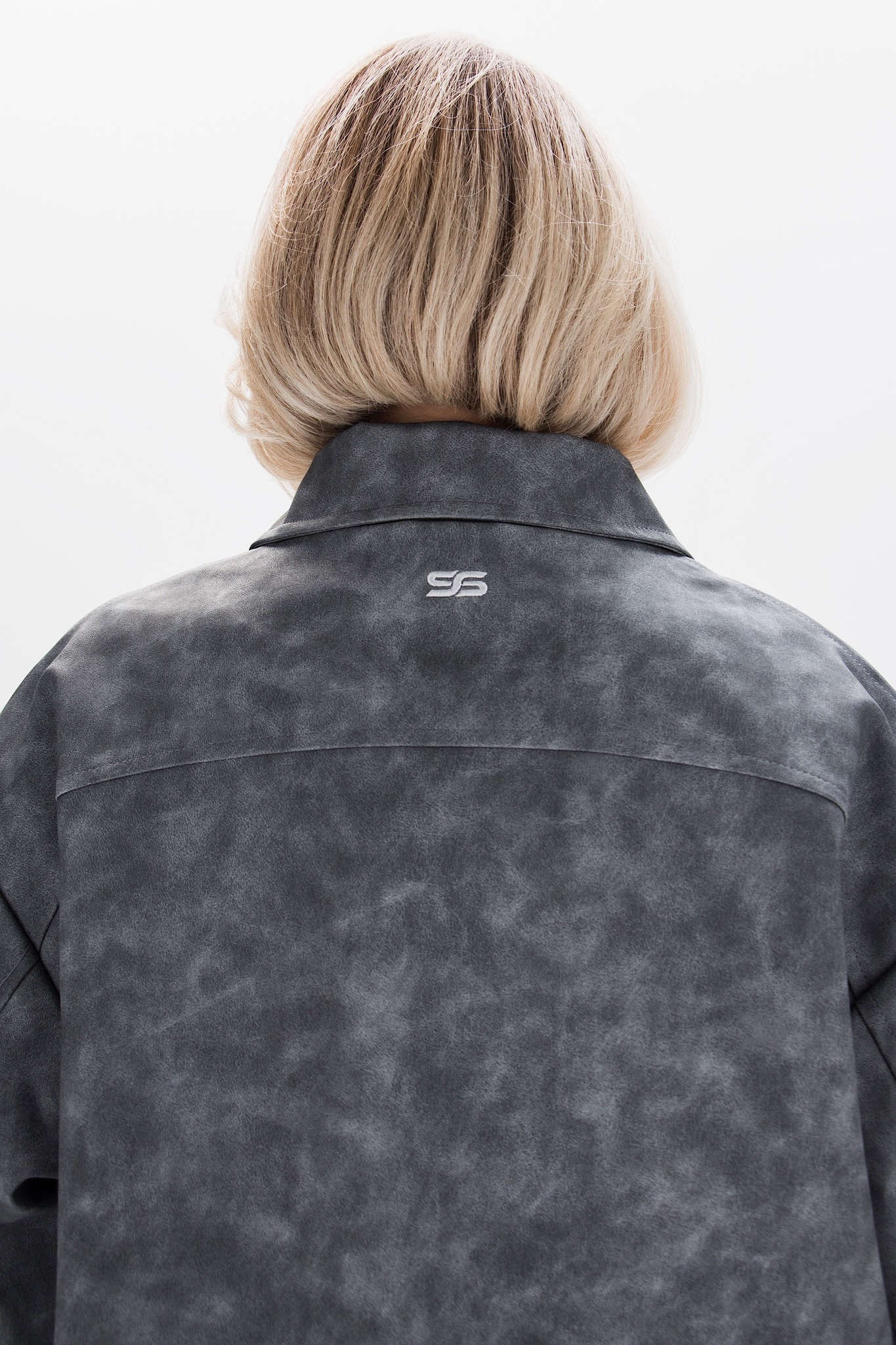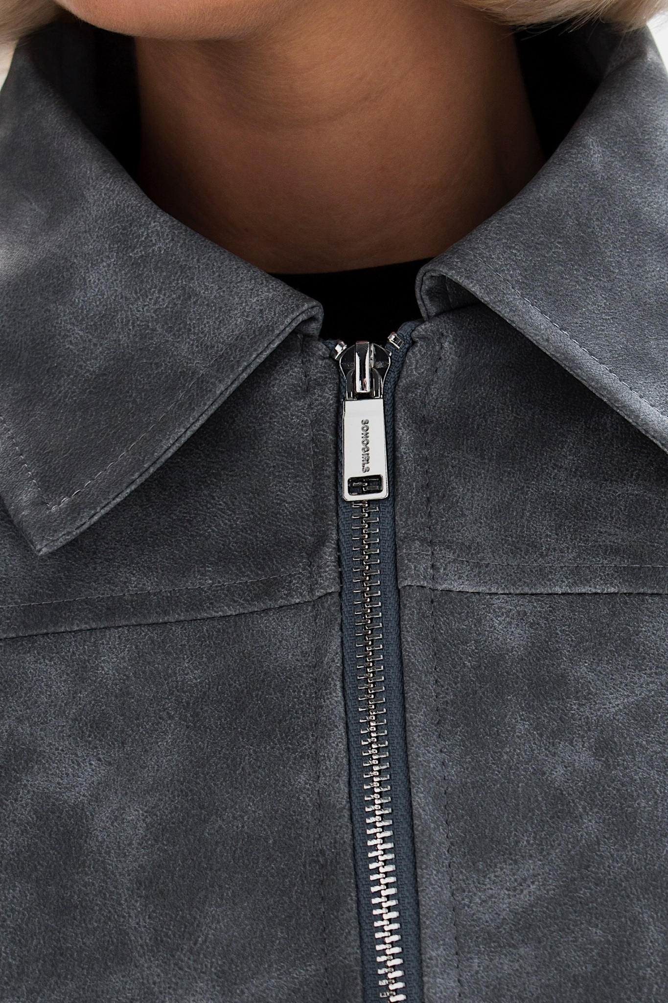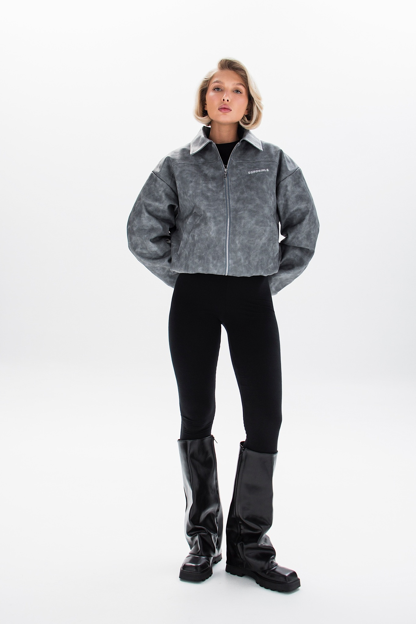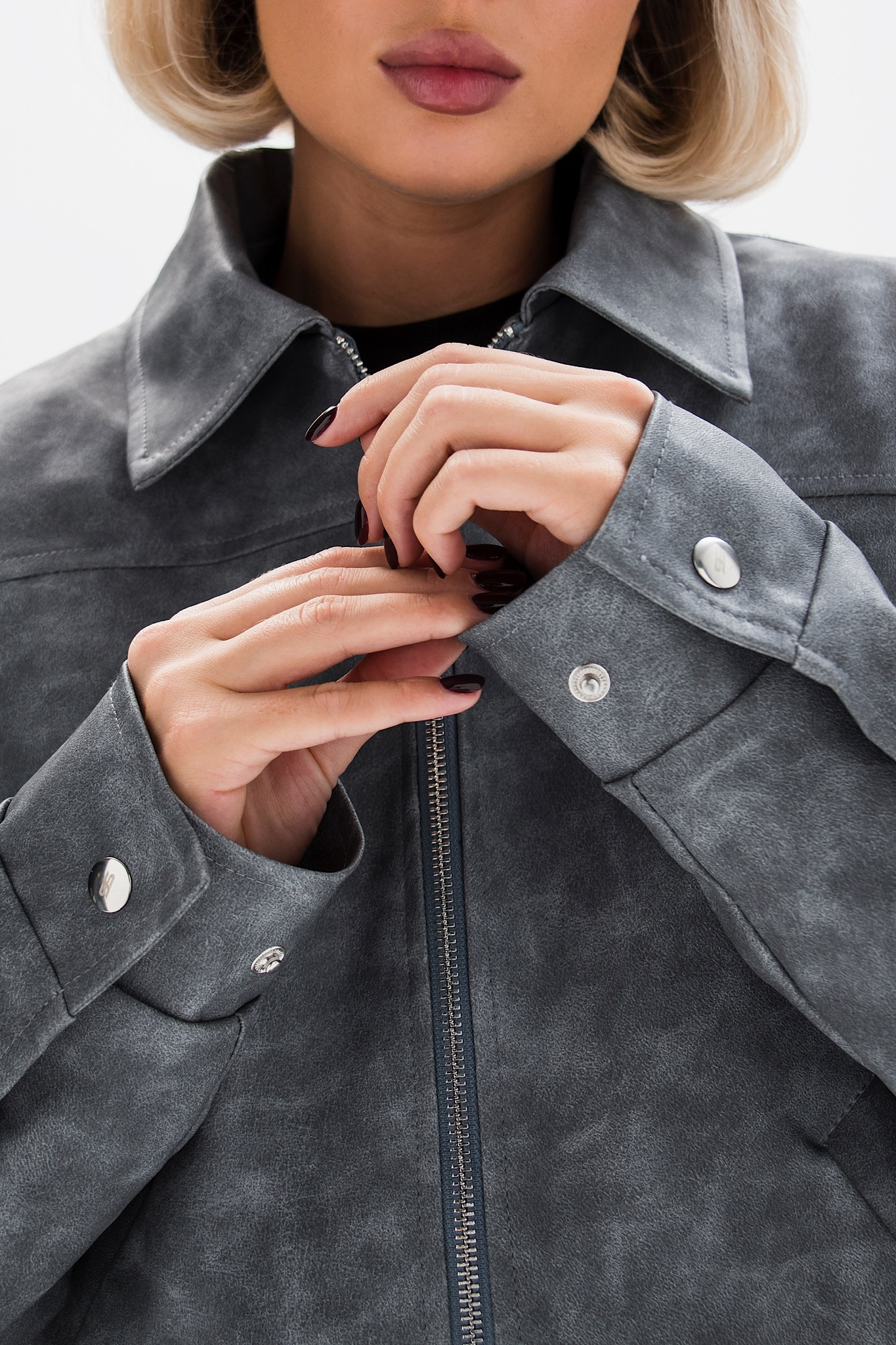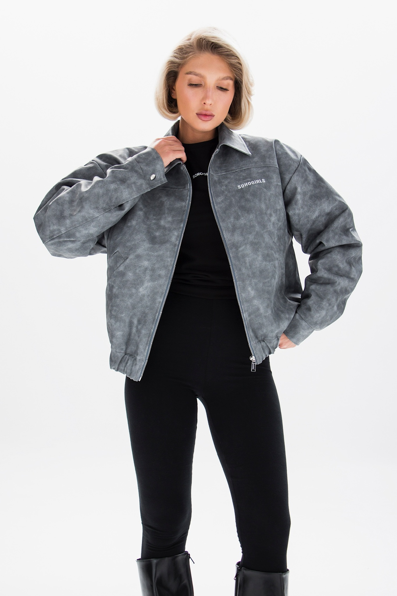 Куртка из мягкой экокожи с эффектом лёгкой потертости. Универсальный крой и минималистичный дизайн с серебристой фурнитурой и фирменными логотипами.