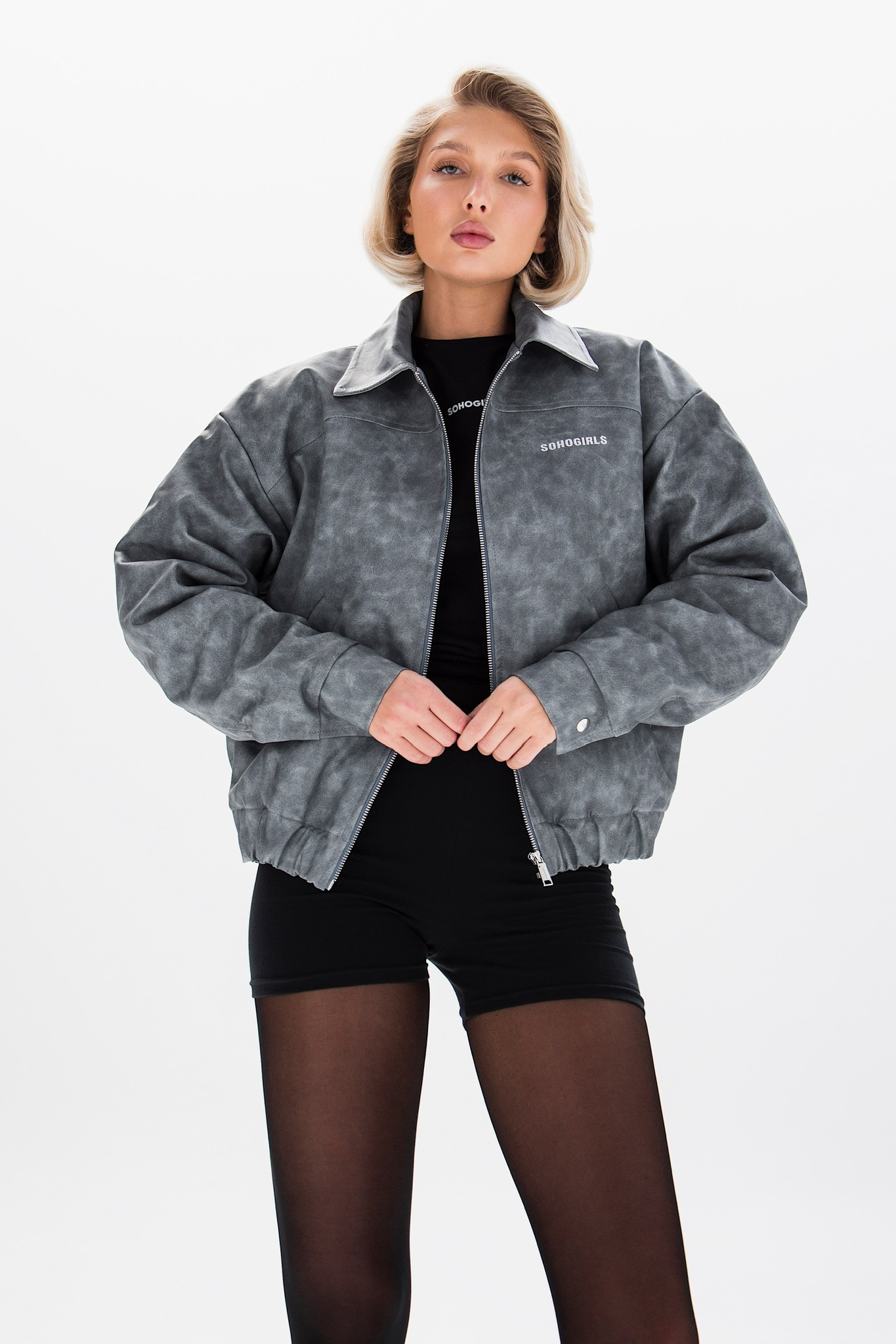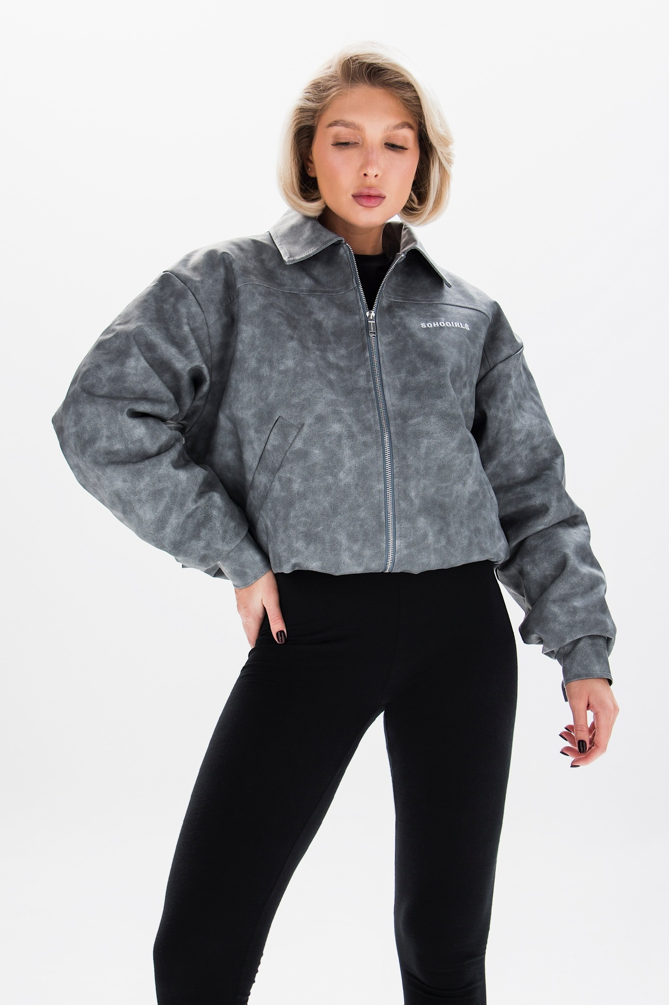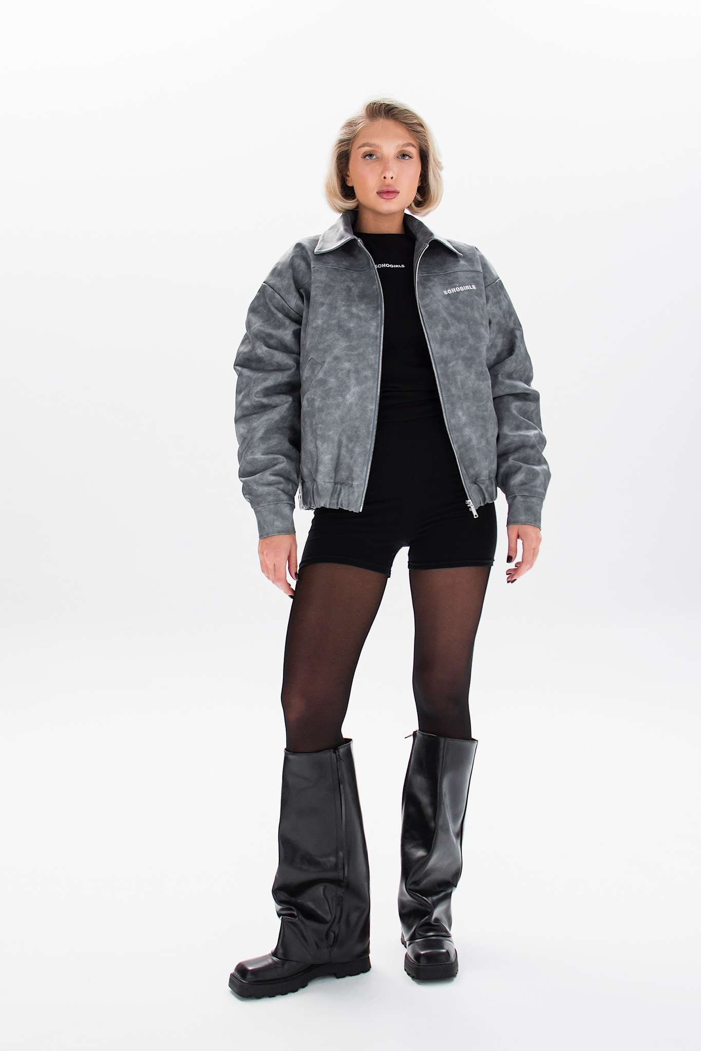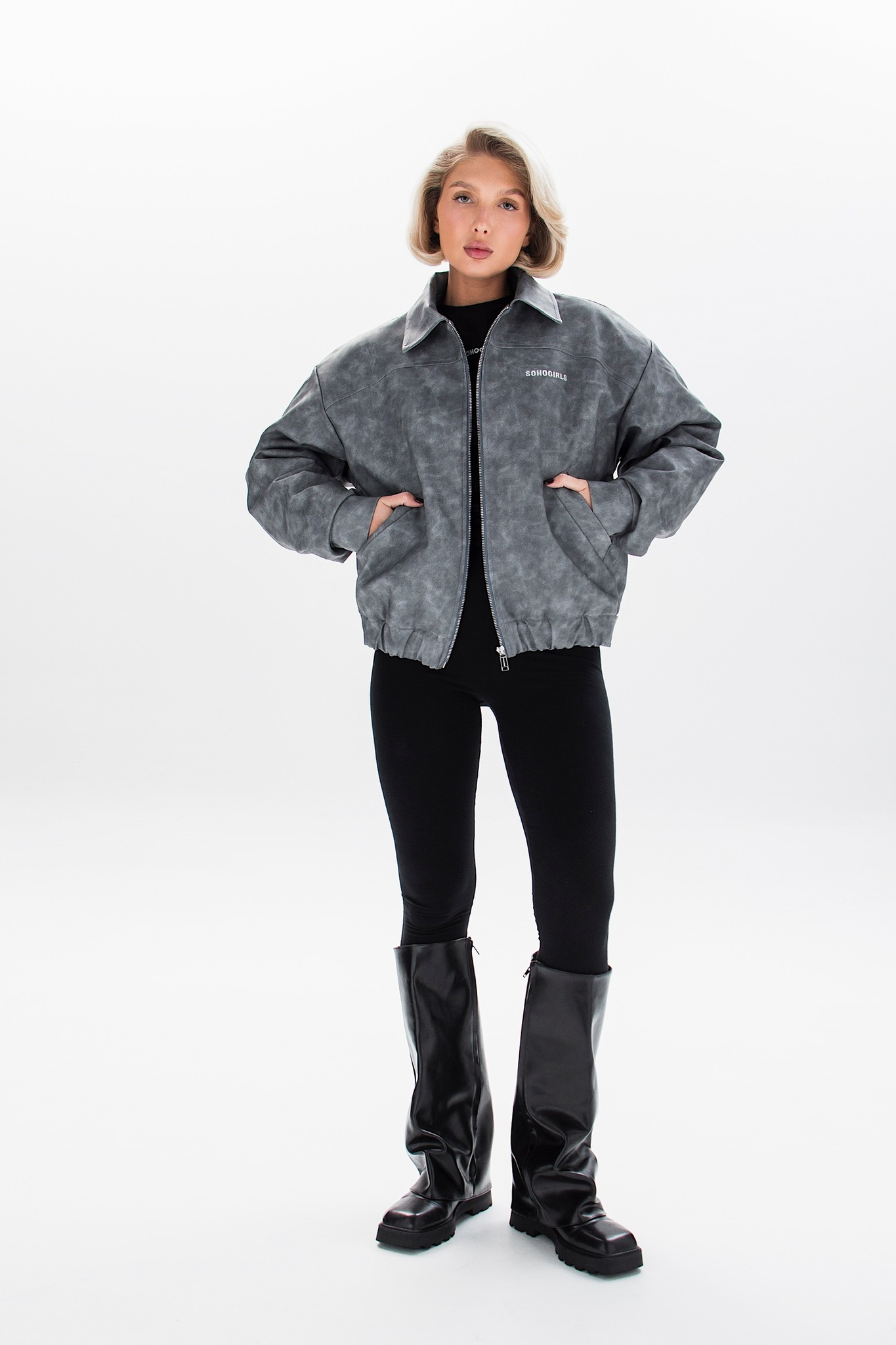 Куртка из мягкой экокожи с эффектом лёгкой потертости. Универсальный крой и минималистичный дизайн с серебристой фурнитурой и фирменными логотипами.