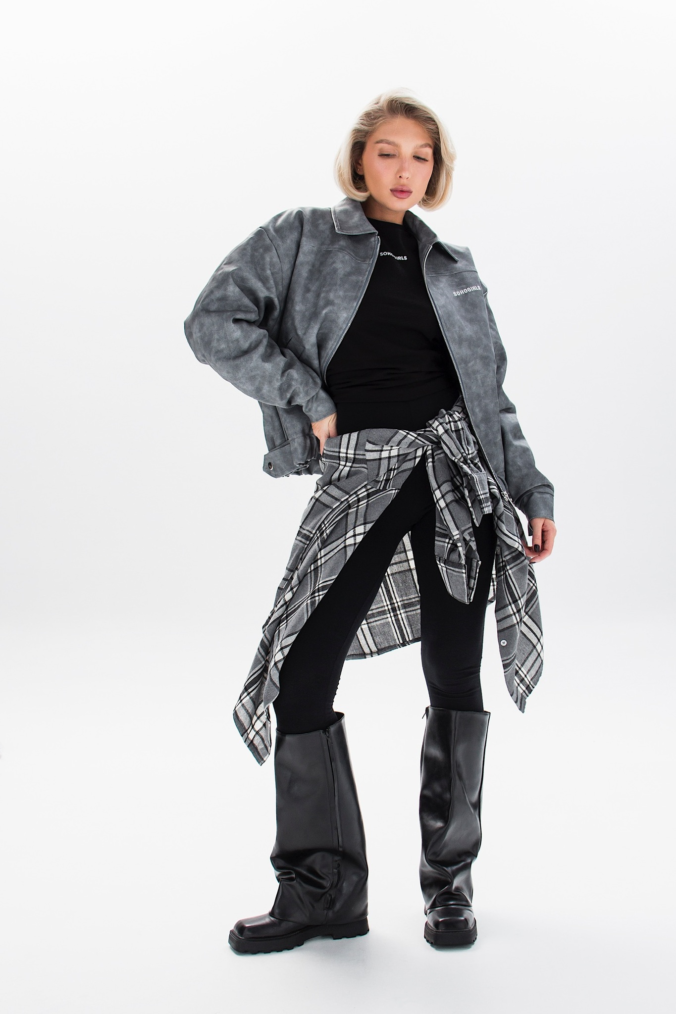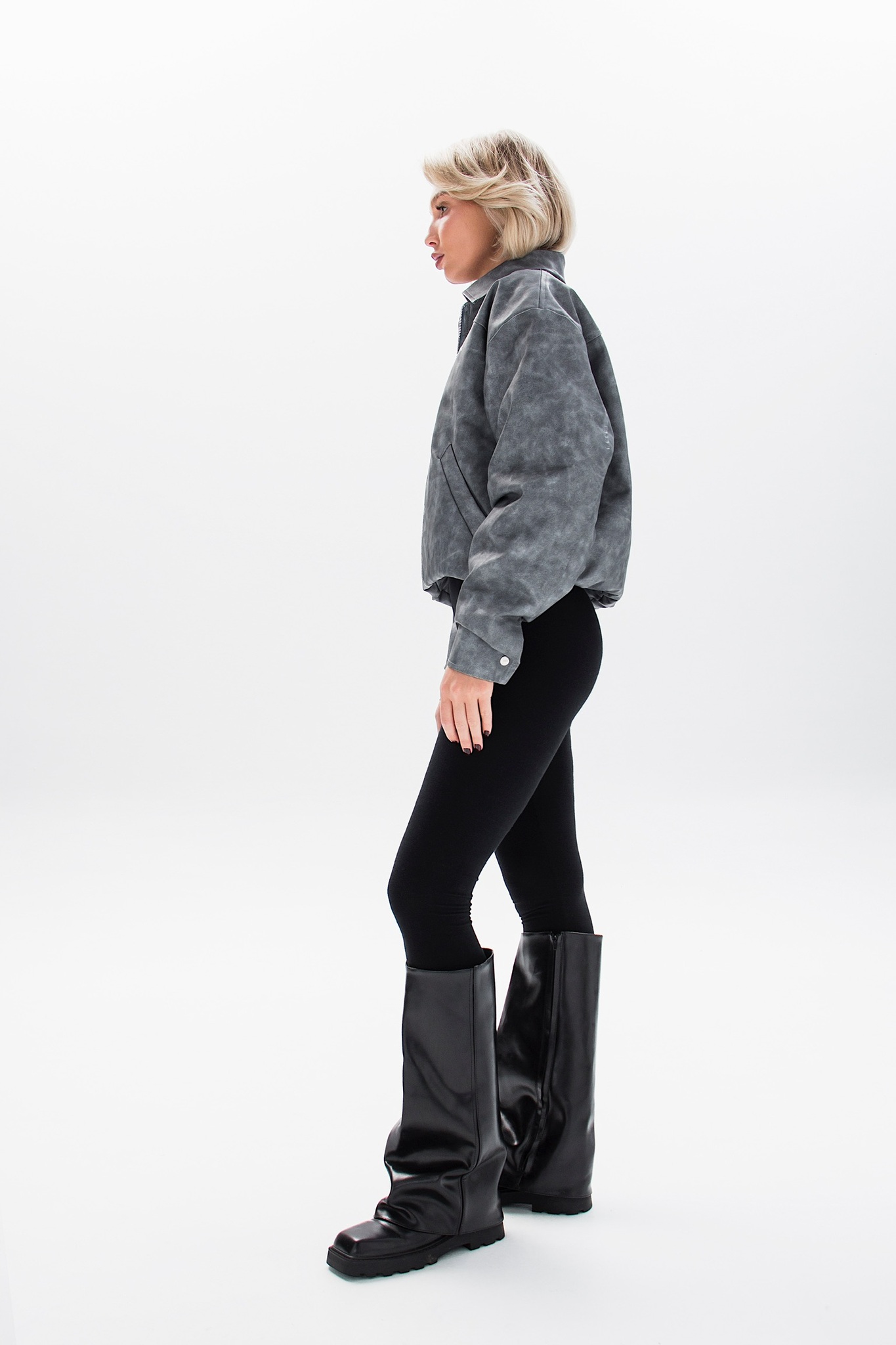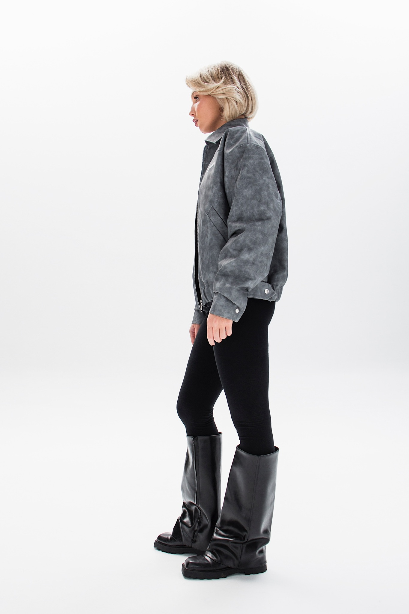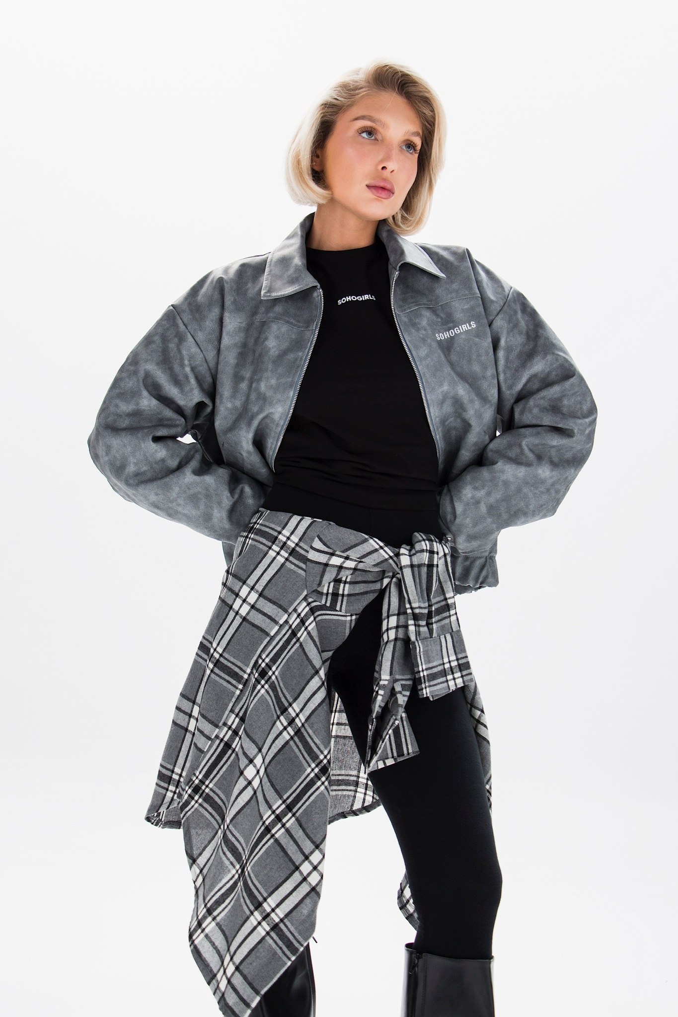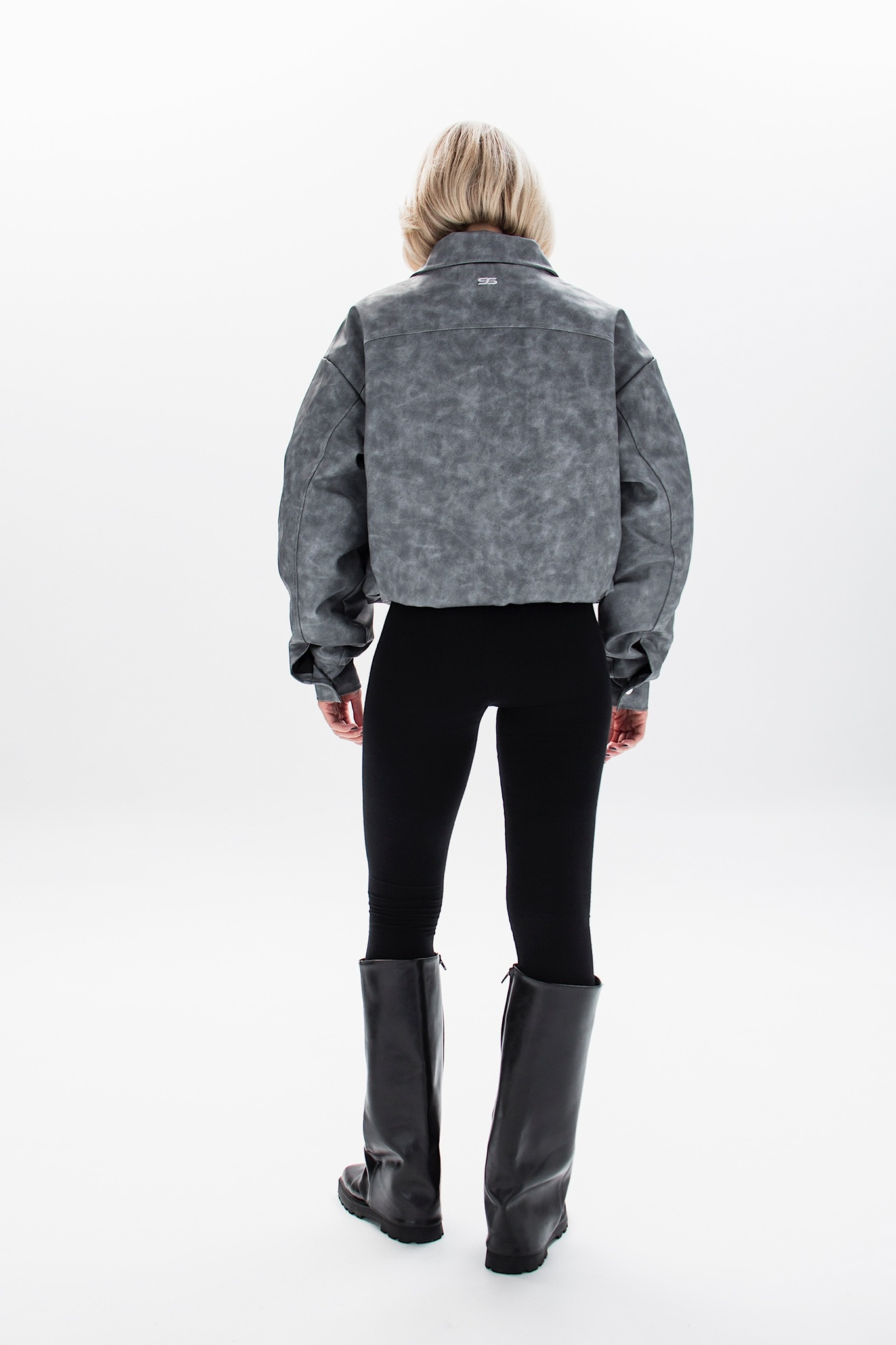 Куртка из мягкой экокожи с эффектом лёгкой потертости. Универсальный крой и минималистичный дизайн с серебристой фурнитурой и фирменными логотипами.