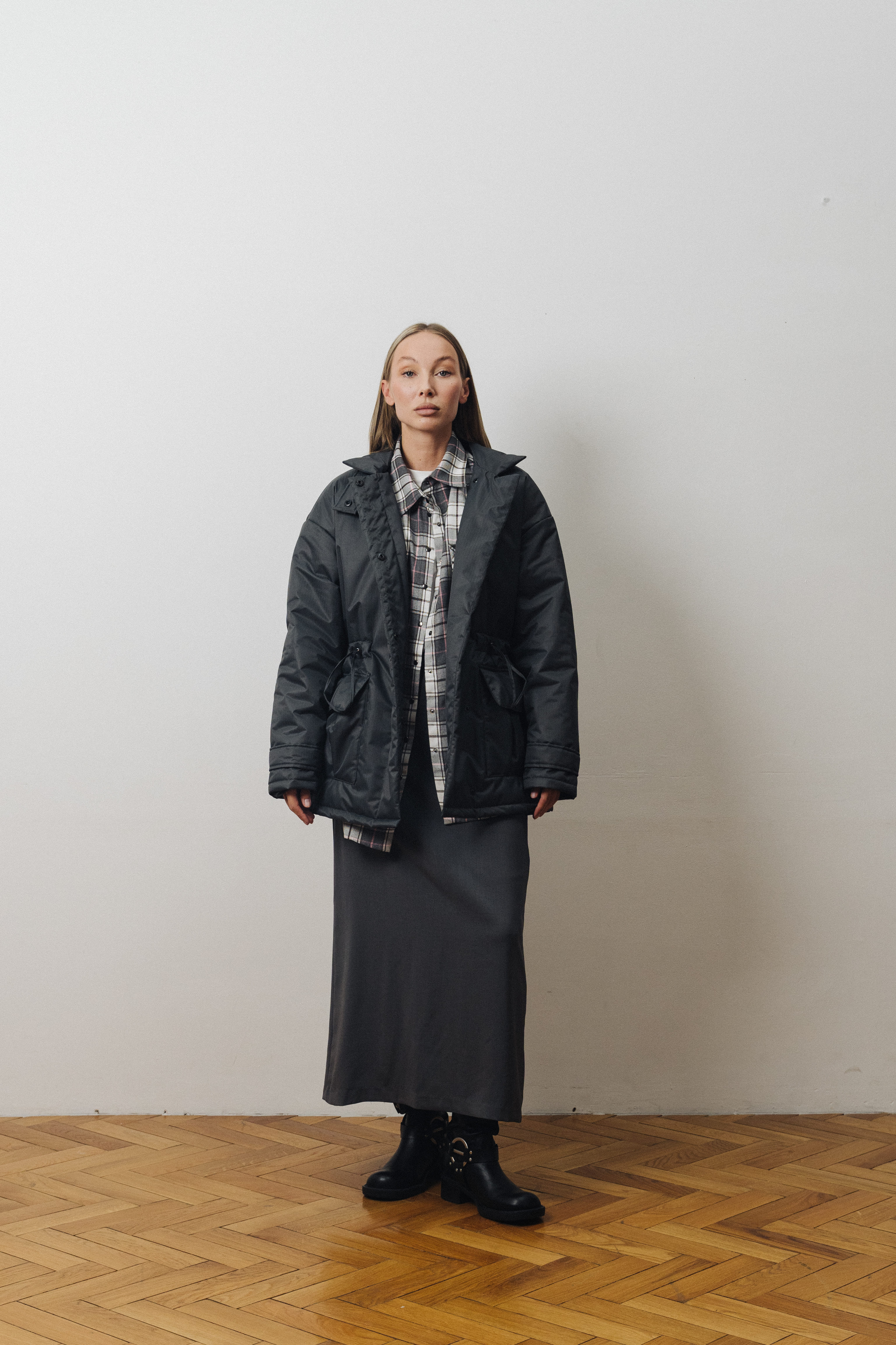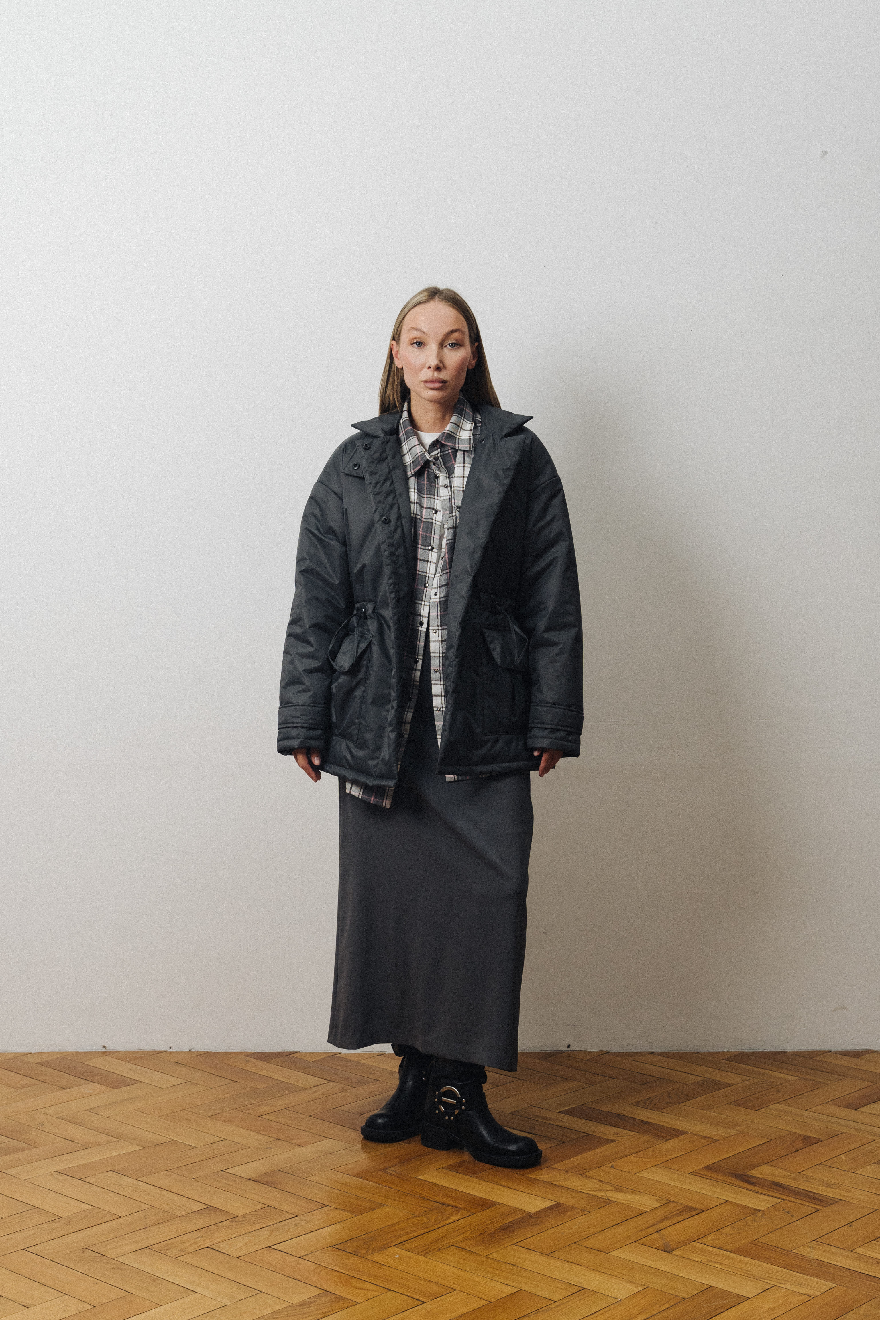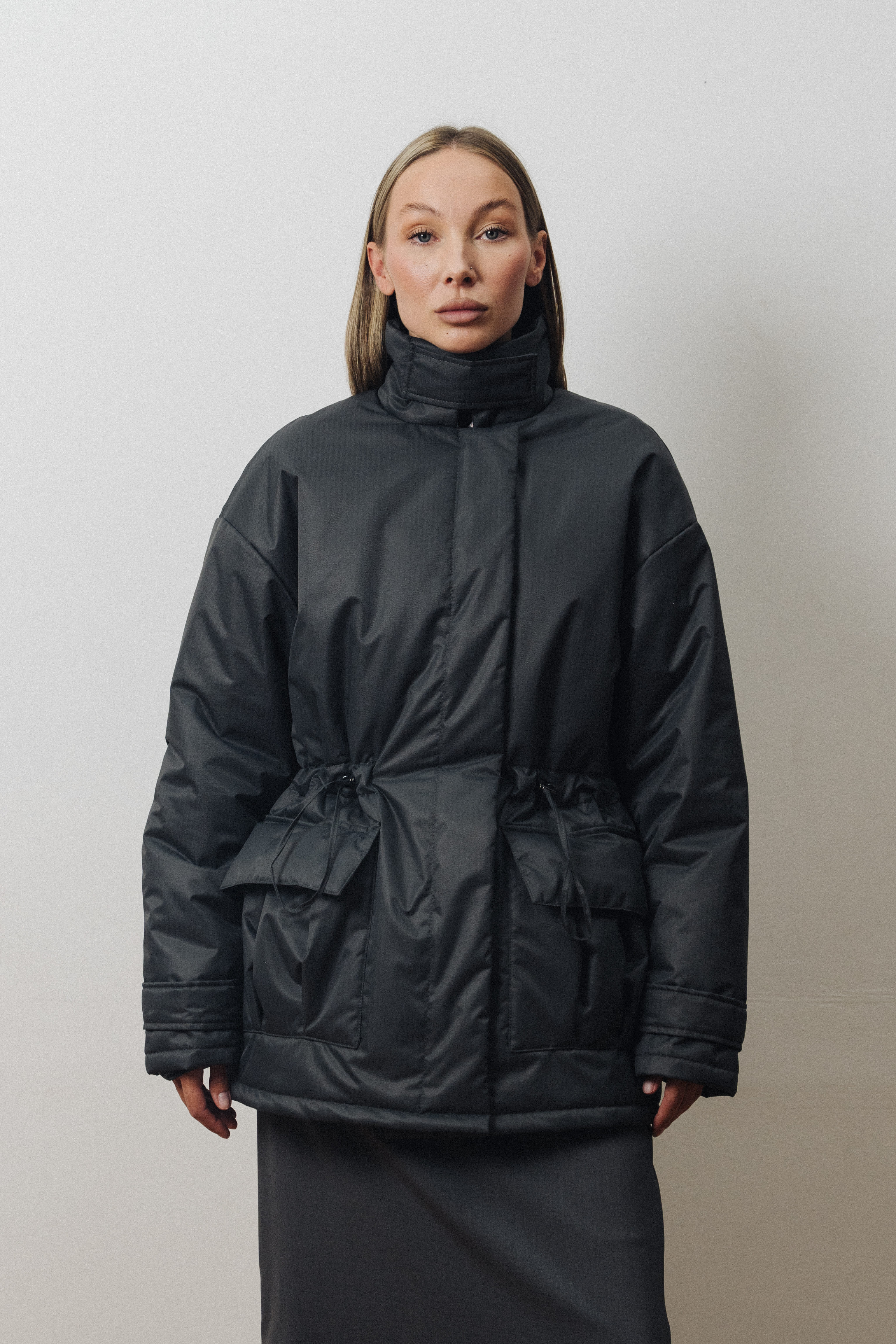 Куртка-парка oversize кроя с акцентными карманами и кулиской на талии. Идеальный вариант на демисезонный период, наполнитель из слайтекса позволяет ей быть легкой и при этом устойчивой к морозам до -10 градусов.