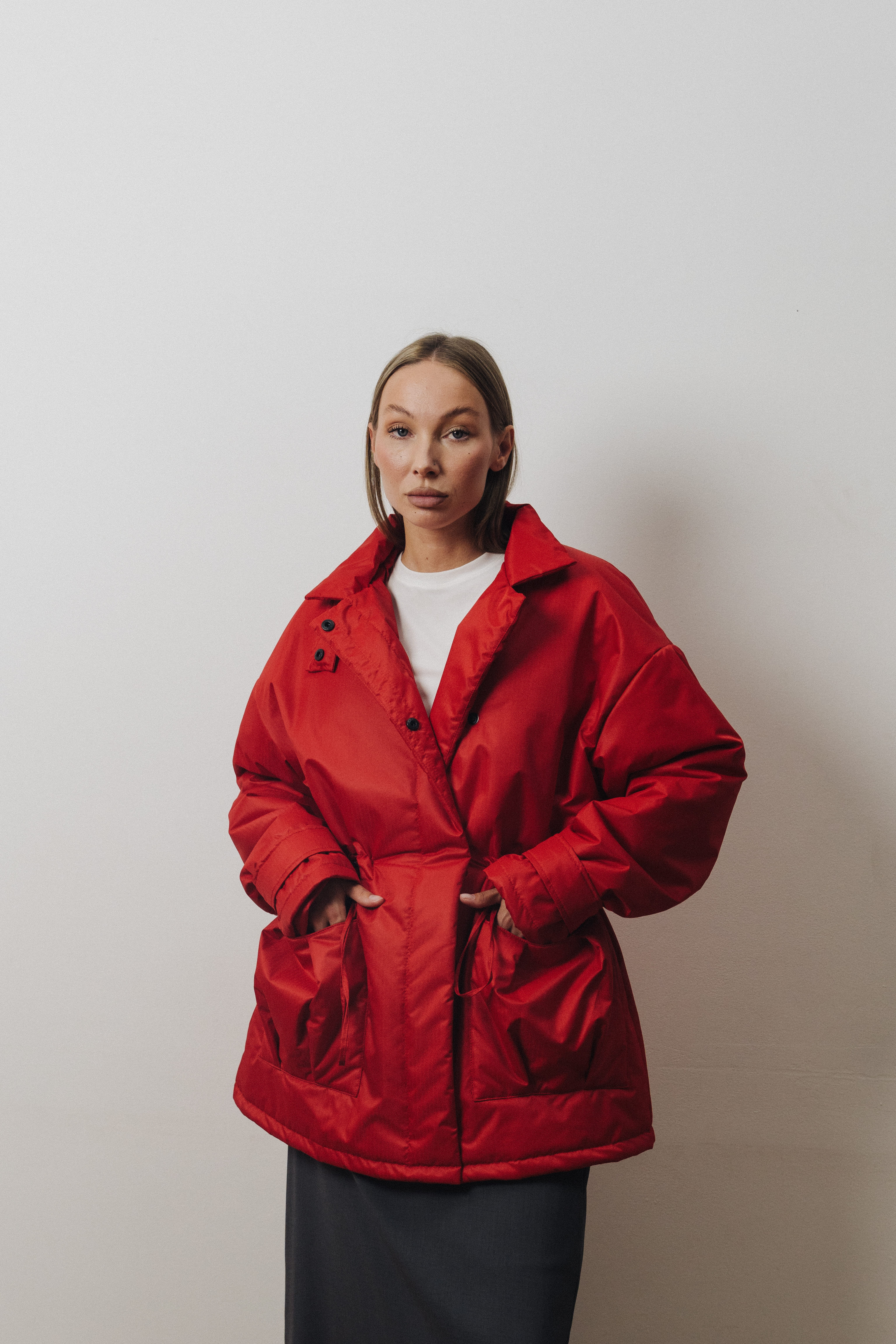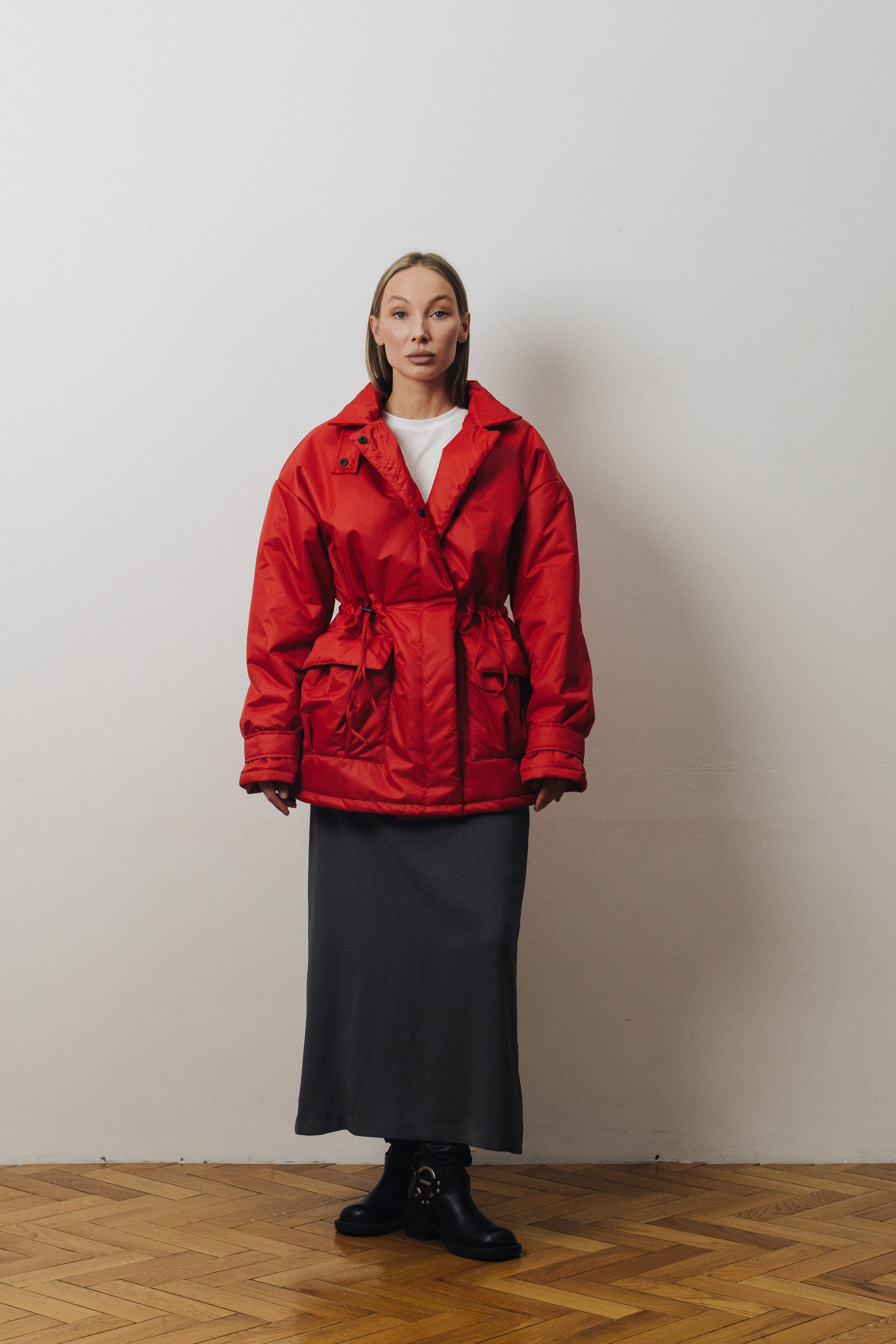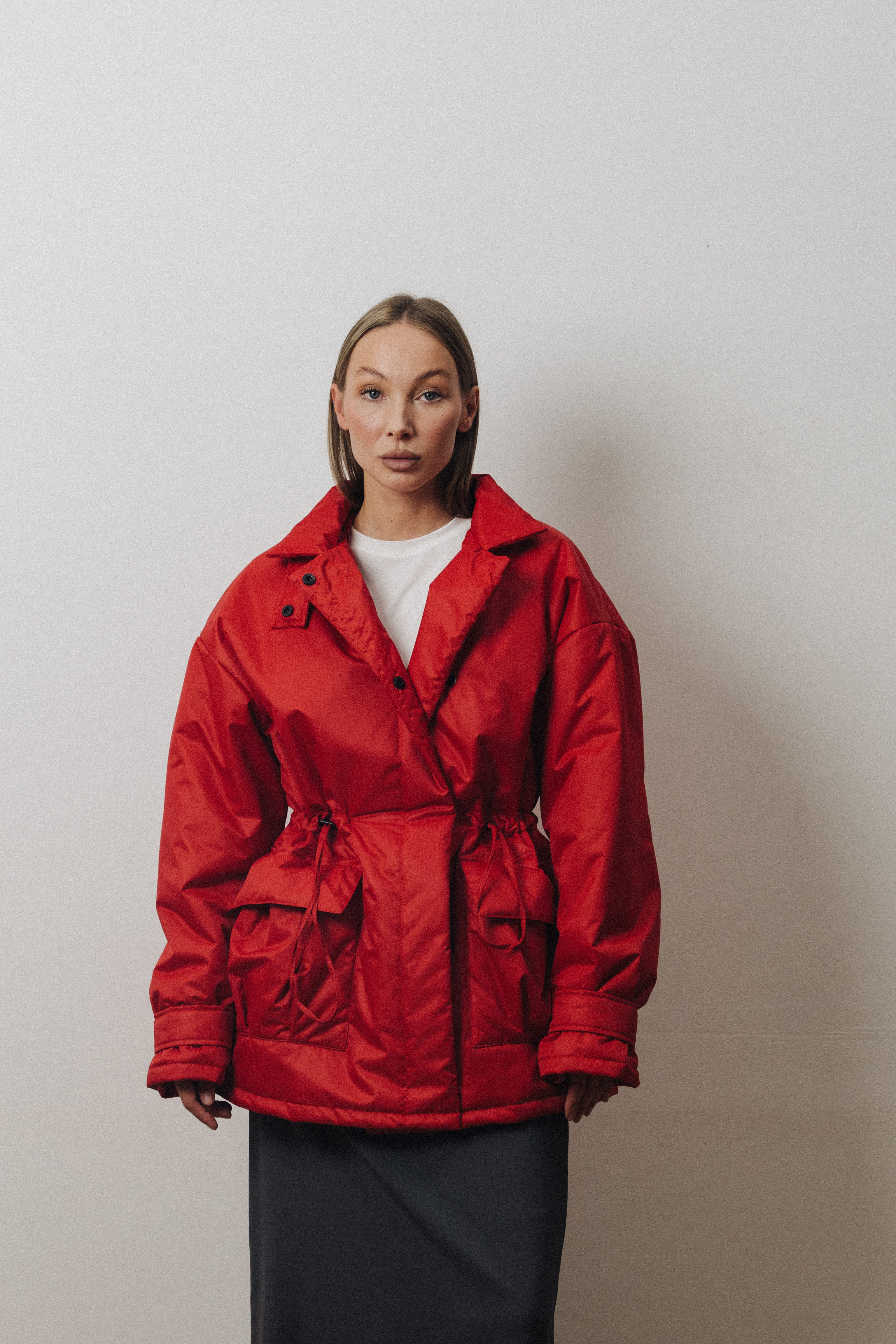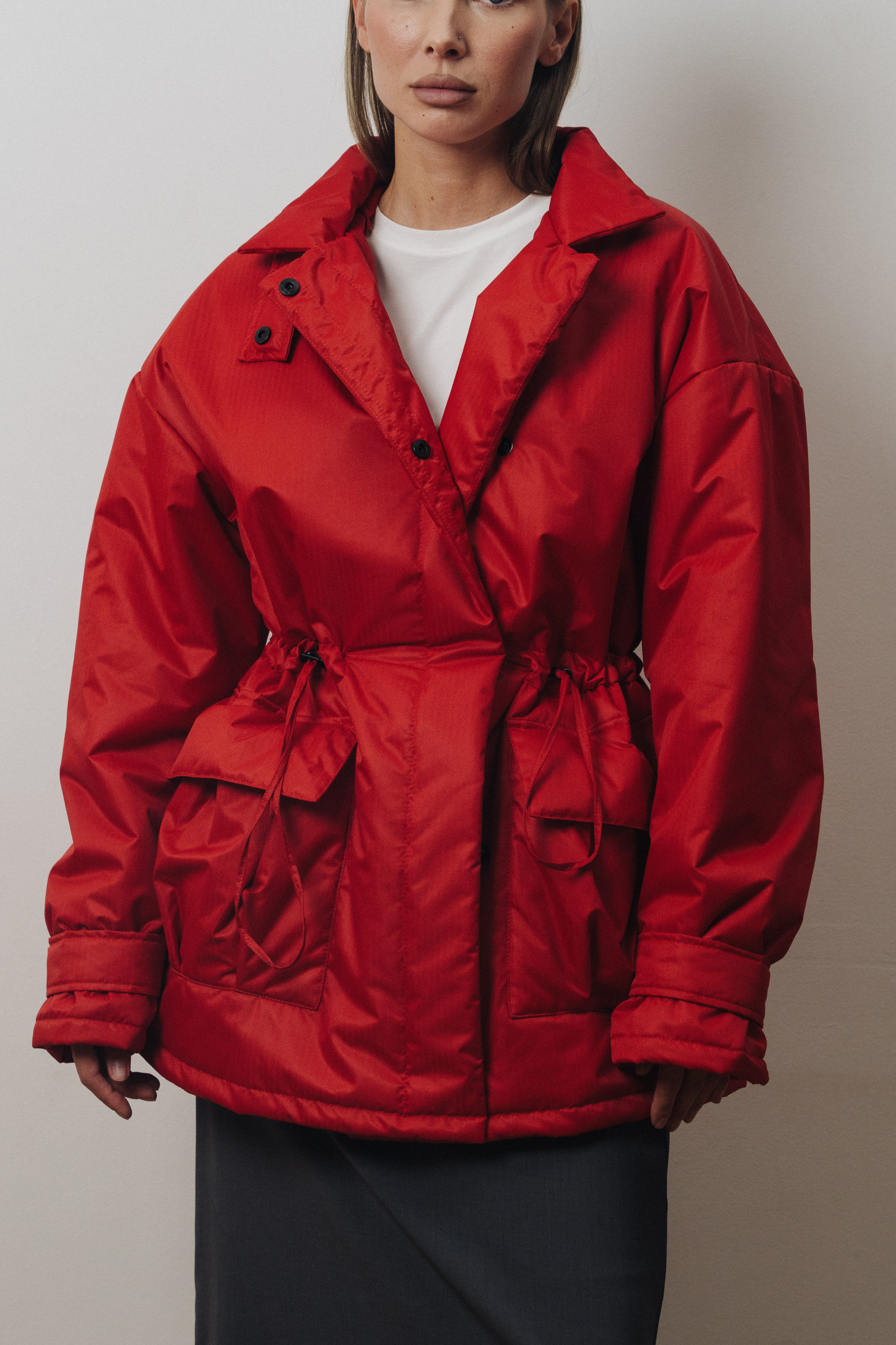Куртка-парка oversize кроя с акцентными карманами и кулиской на талии. Идеальный вариант на демисезонный период, наполнитель из слайтекса позволяет ей быть легкой и при этом устойчивой к морозам до -10 градусов.