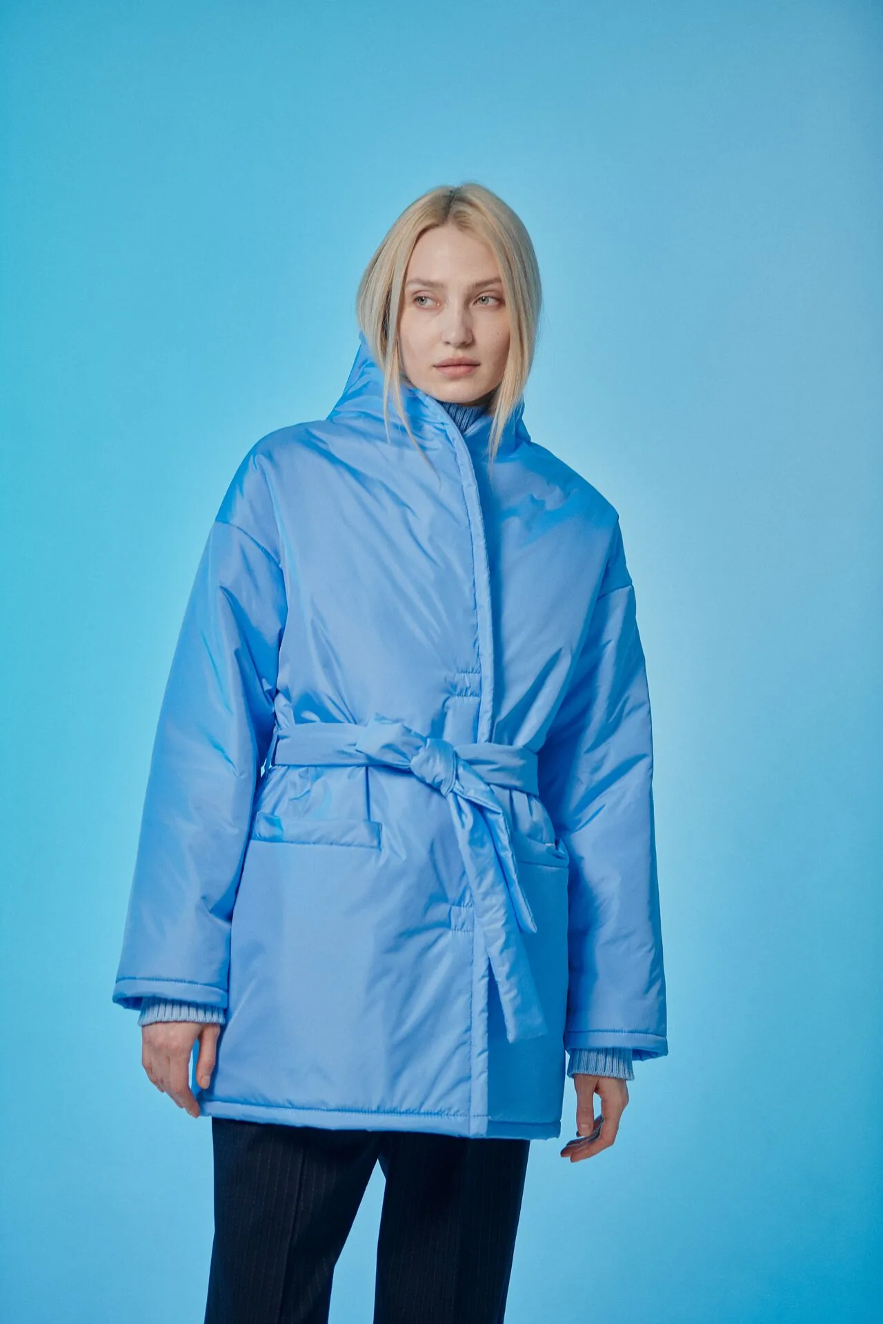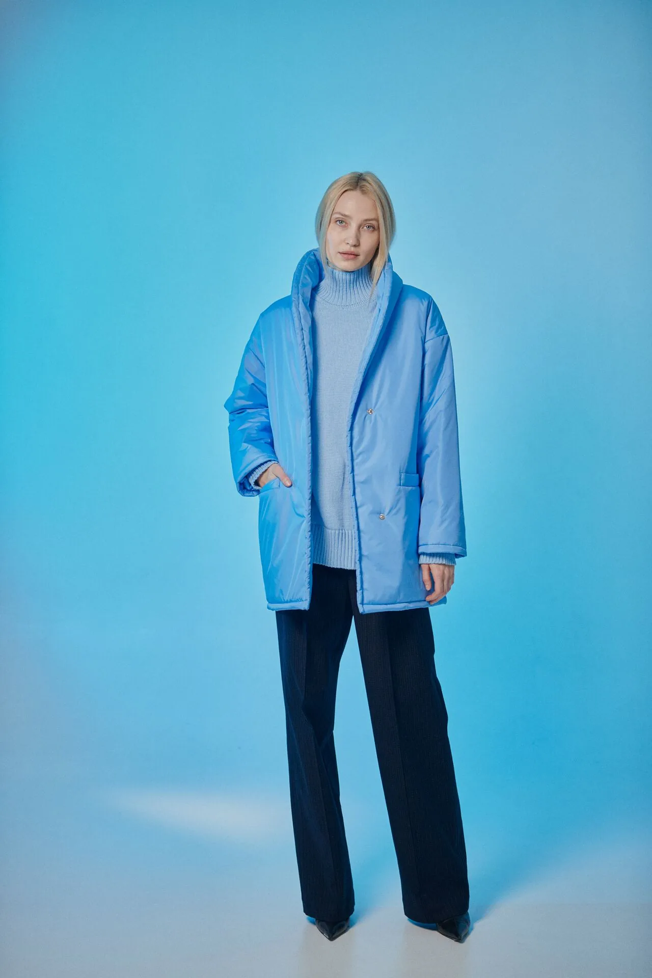 Демисезонная куртка с шалевым воротником. Застежка на кнопки, рукав с подворотом. Плотная плащевая ткань не впитывает грязь, шалевый воротник защищает от ветра, а легкий наполнитель хорошо сохраняет тепло и воздушность.