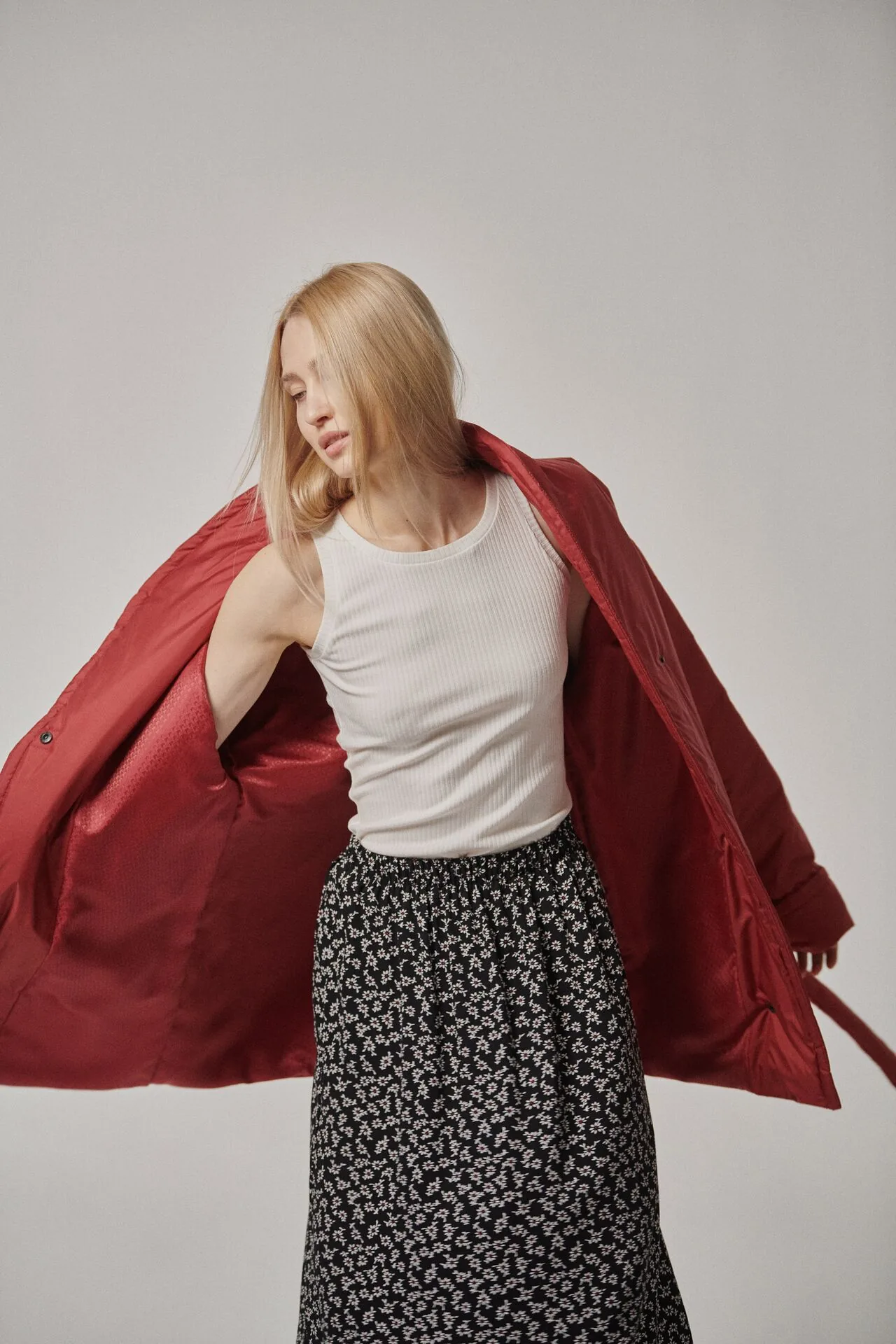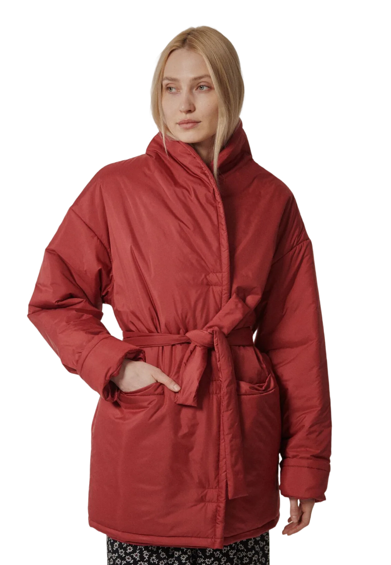 Куртка прямого кроя с английским воротником. Практичная модель на каждый день. Застежка на пуговицы, пояс в комплекте. Плотная плащевая ткань не впитывает грязь, а легкий наполнитель хорошо сохраняет тепло и воздушность.  ПАРАМЕТРЫ ИЗДЕЛИЯ: размер длина изделия, см...