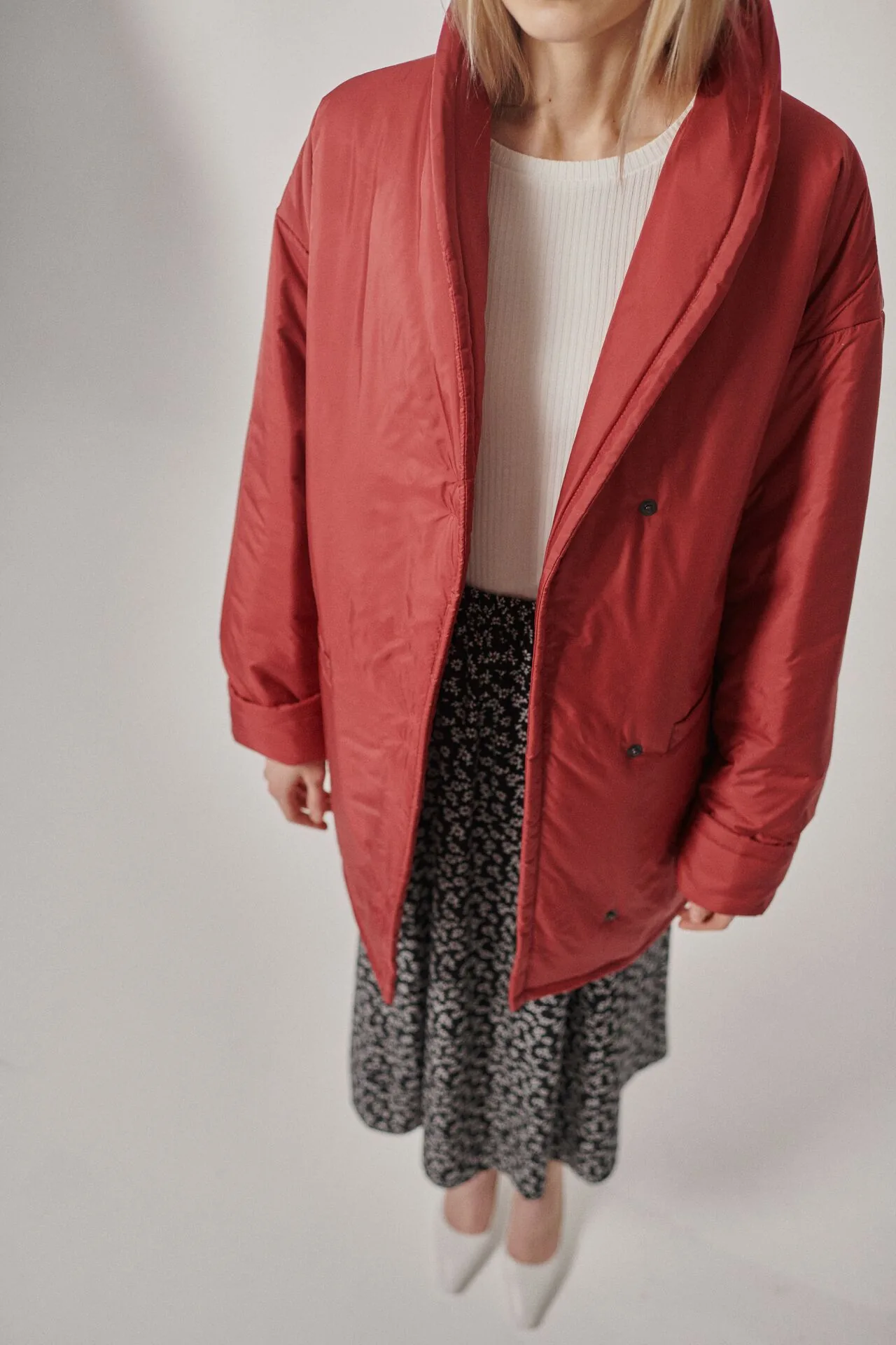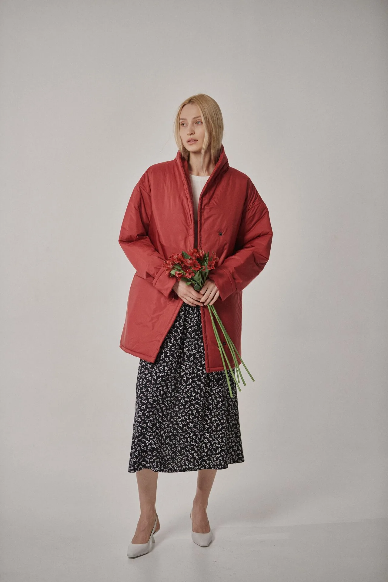Воздушная стеганая куртка свободного кроя с современным утеплителем поможет влиться в осенний ритм города и остаться в покое, чувствуя тепло и уют. Застегивается на надежные кнопки черного цвета. Высокий воротник надежно защищает от ветра и оставляет свободу для ношения шарфа, платка или свитера...