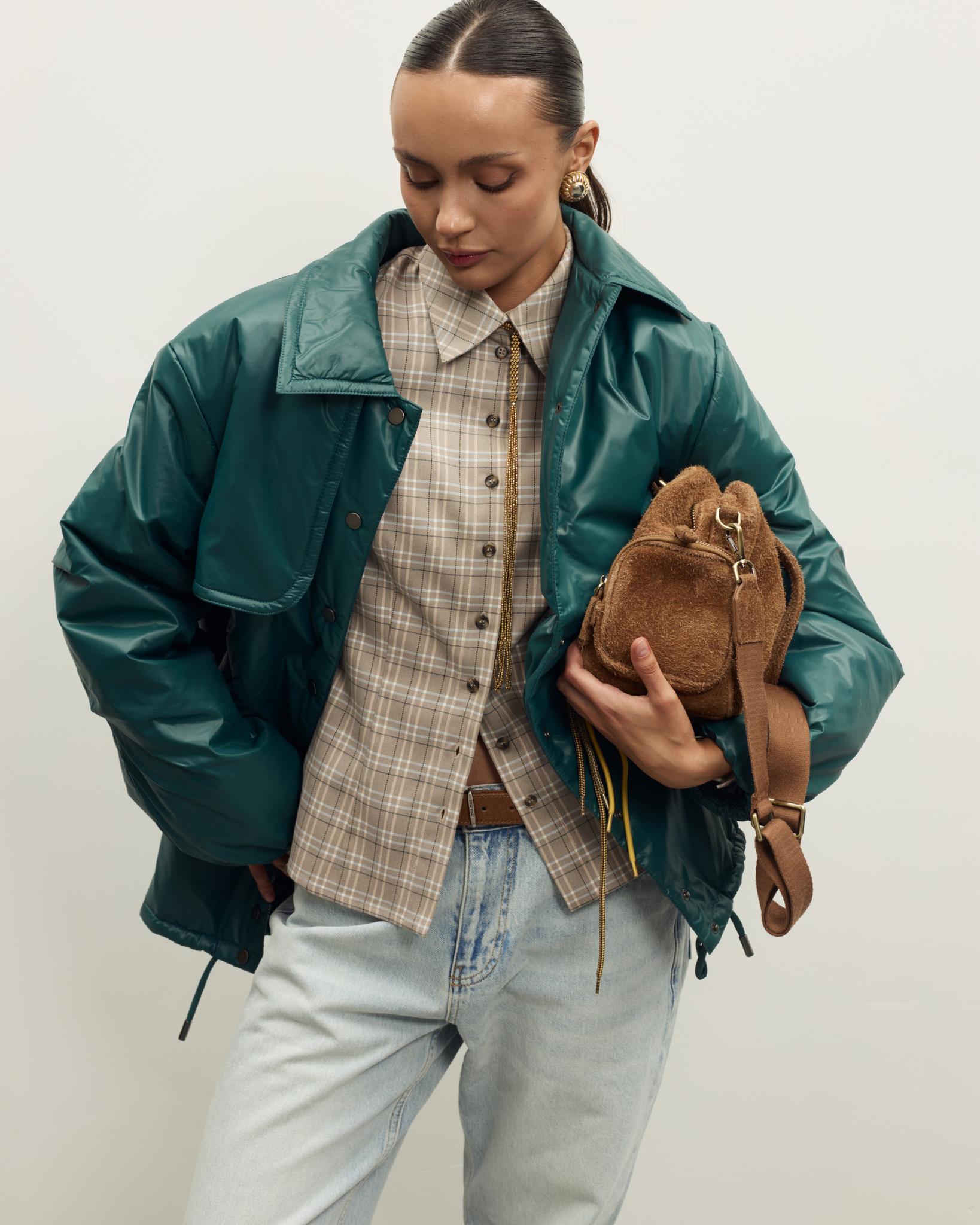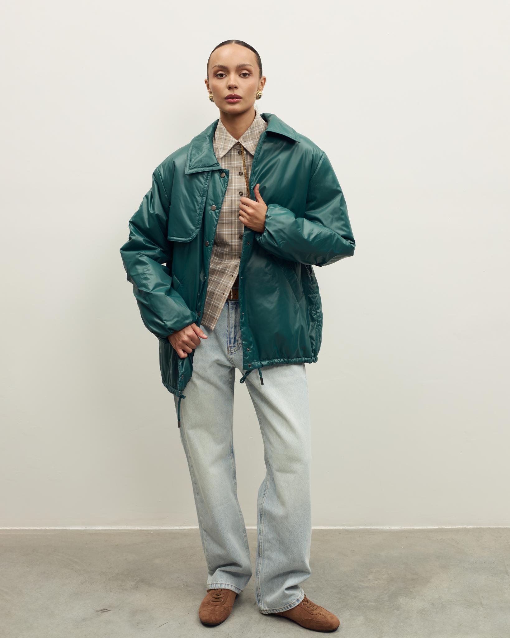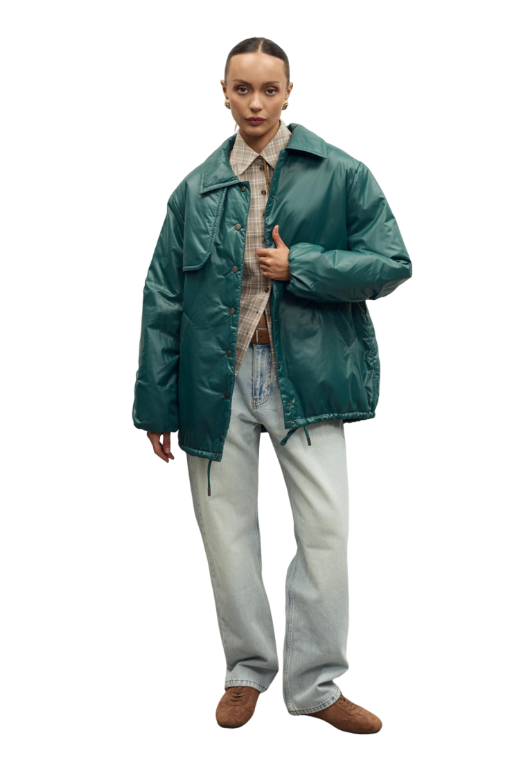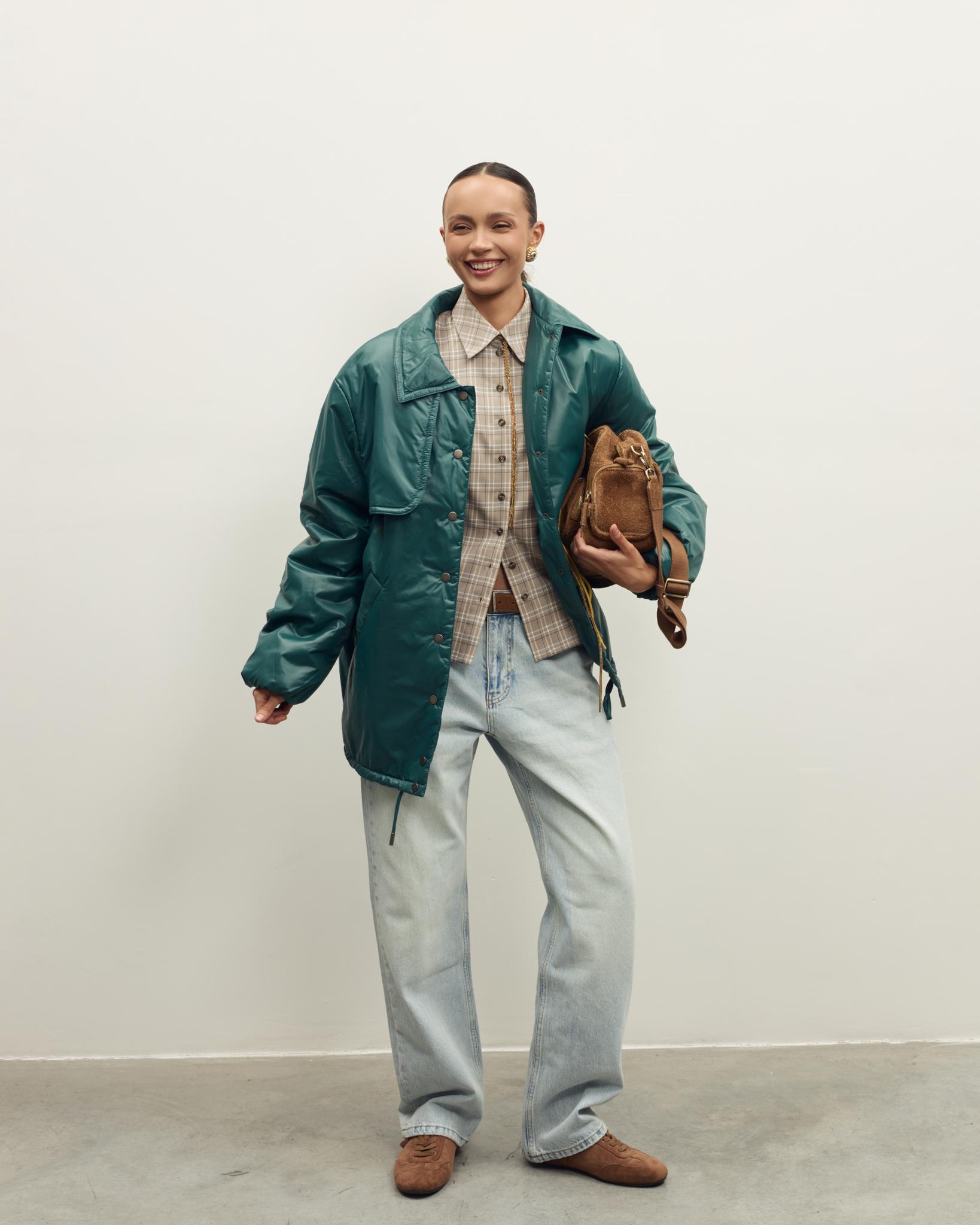 Лаконичная утепленная куртка - универсальная модель для демисезонных образов. Свободный силуэт обеспечивает комфорт и свободу движений, мягкая матовая ткань хорошо держит форму.