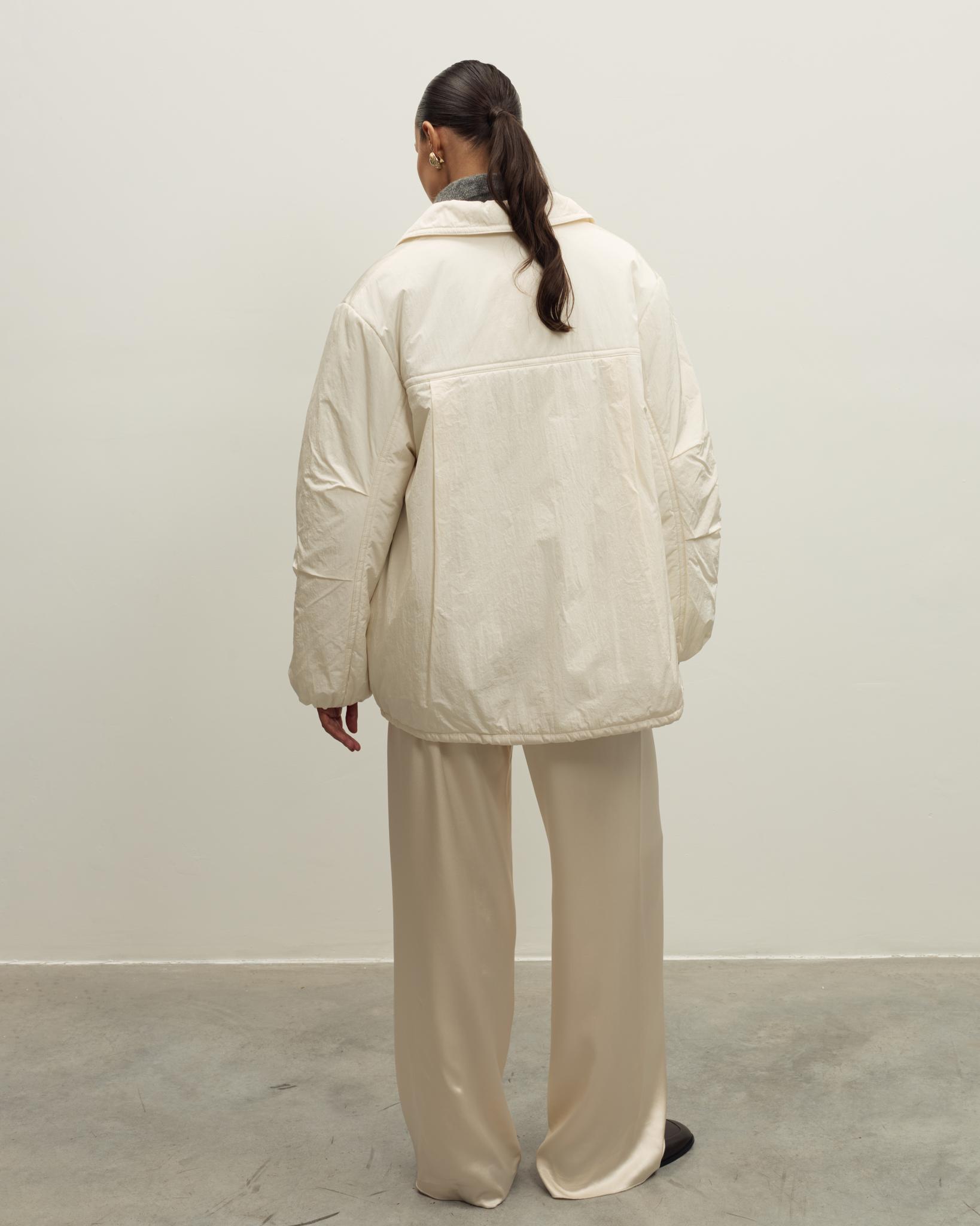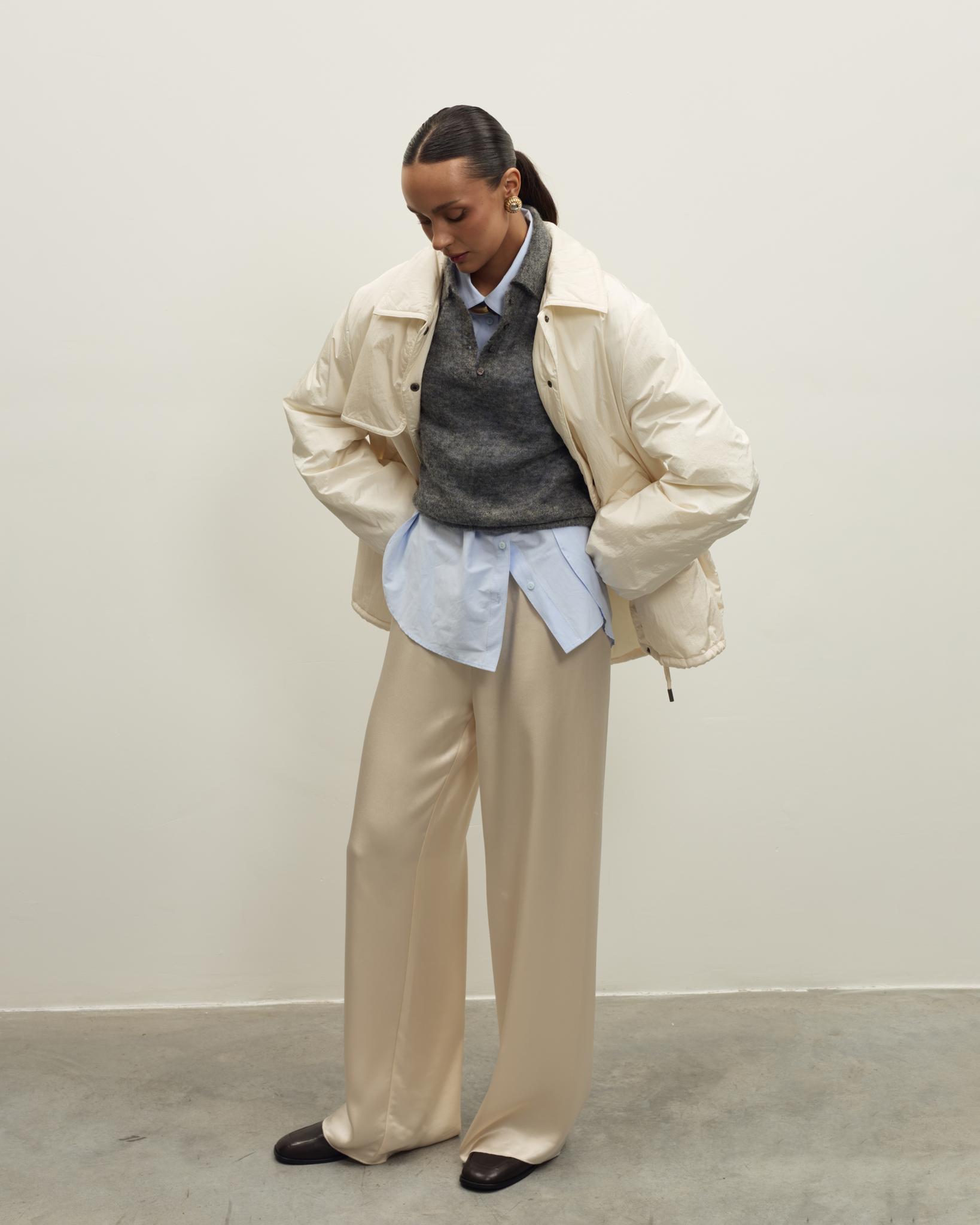Лаконичная утепленная куртка - универсальная модель для демисезонных образов. Свободный силуэт обеспечивает комфорт и свободу движений, мягкая матовая ткань хорошо держит форму.