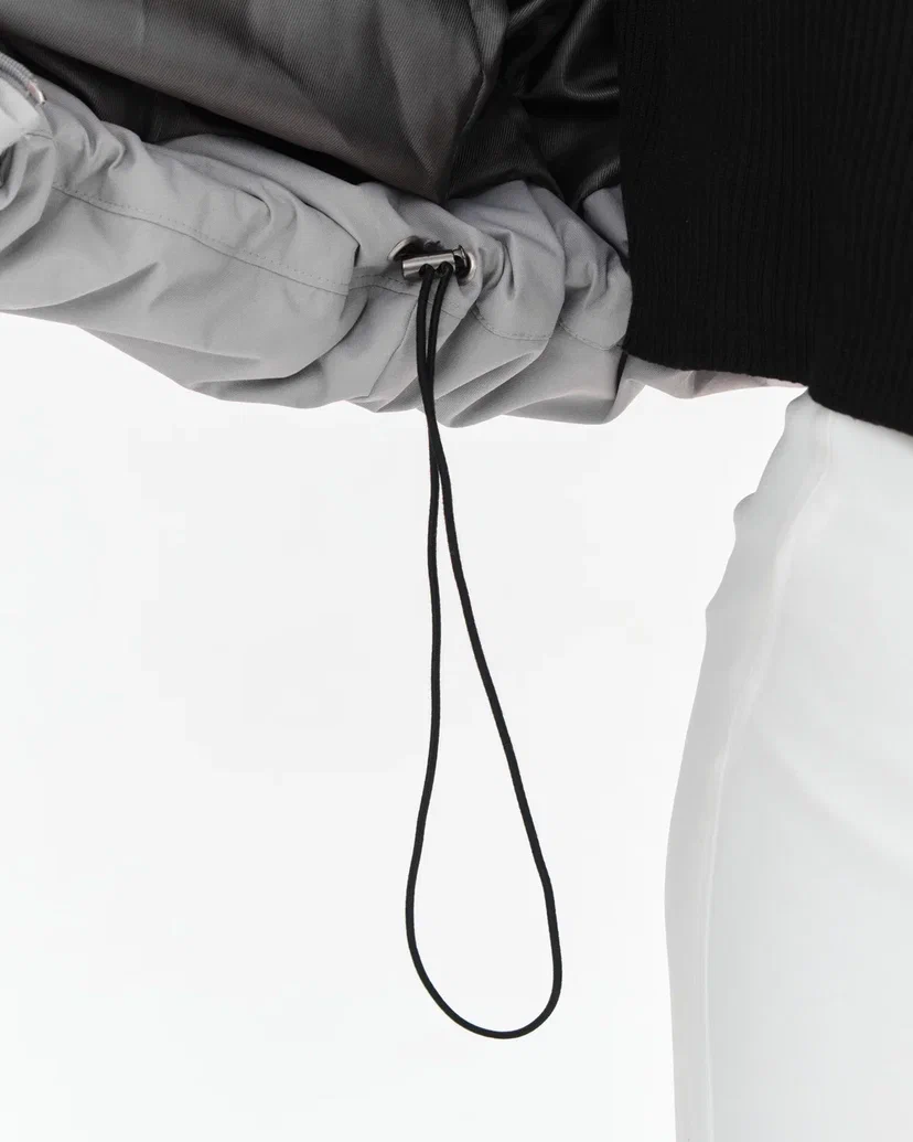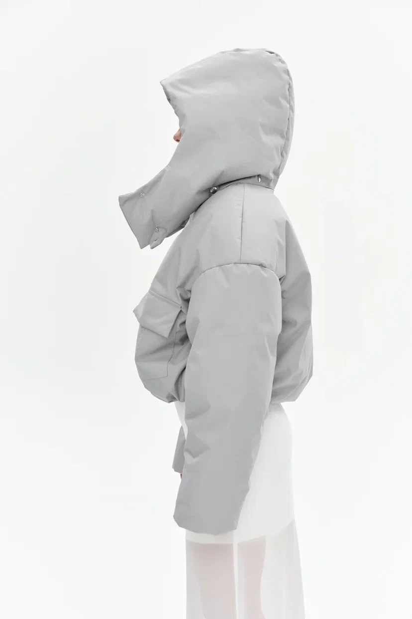 Куртка с капюшоном на замке, единого размера, понизу есть утяжка.
