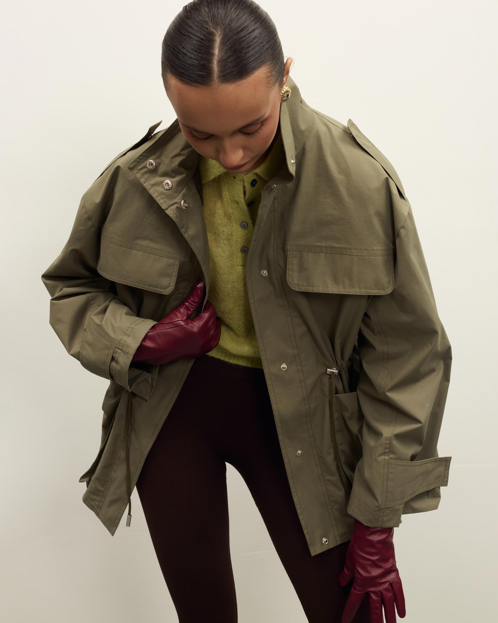 Модель дополнена накладными карманами и застёжкой на кнопки, что делает куртку практичной для повседневной носки. Натуральный хлопок хорошо «дышит» и подходит для переменчивой погоды. Куртка легко вписывается в городские образы и сочетается как с базовыми, так и с более элегантными комплектами.