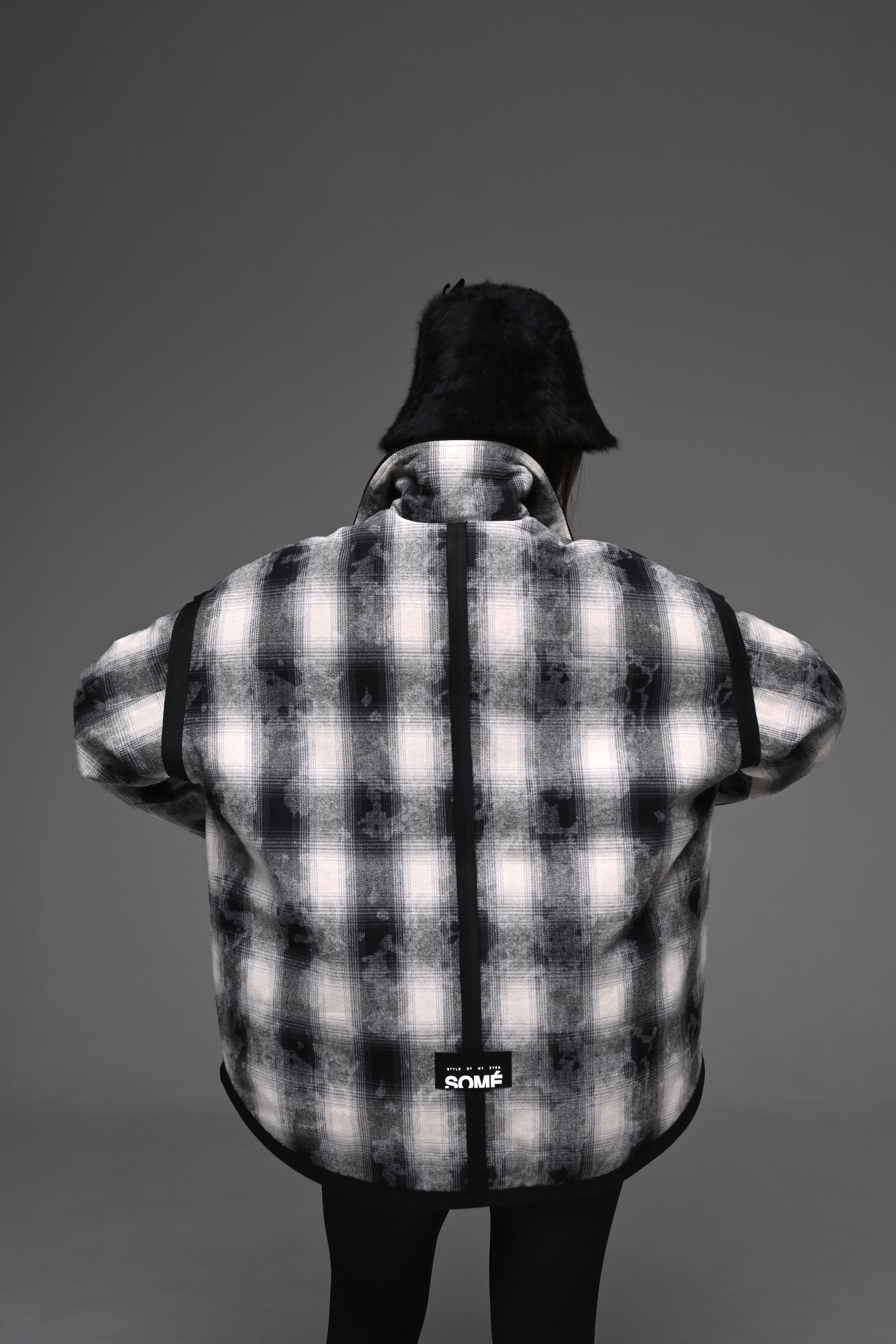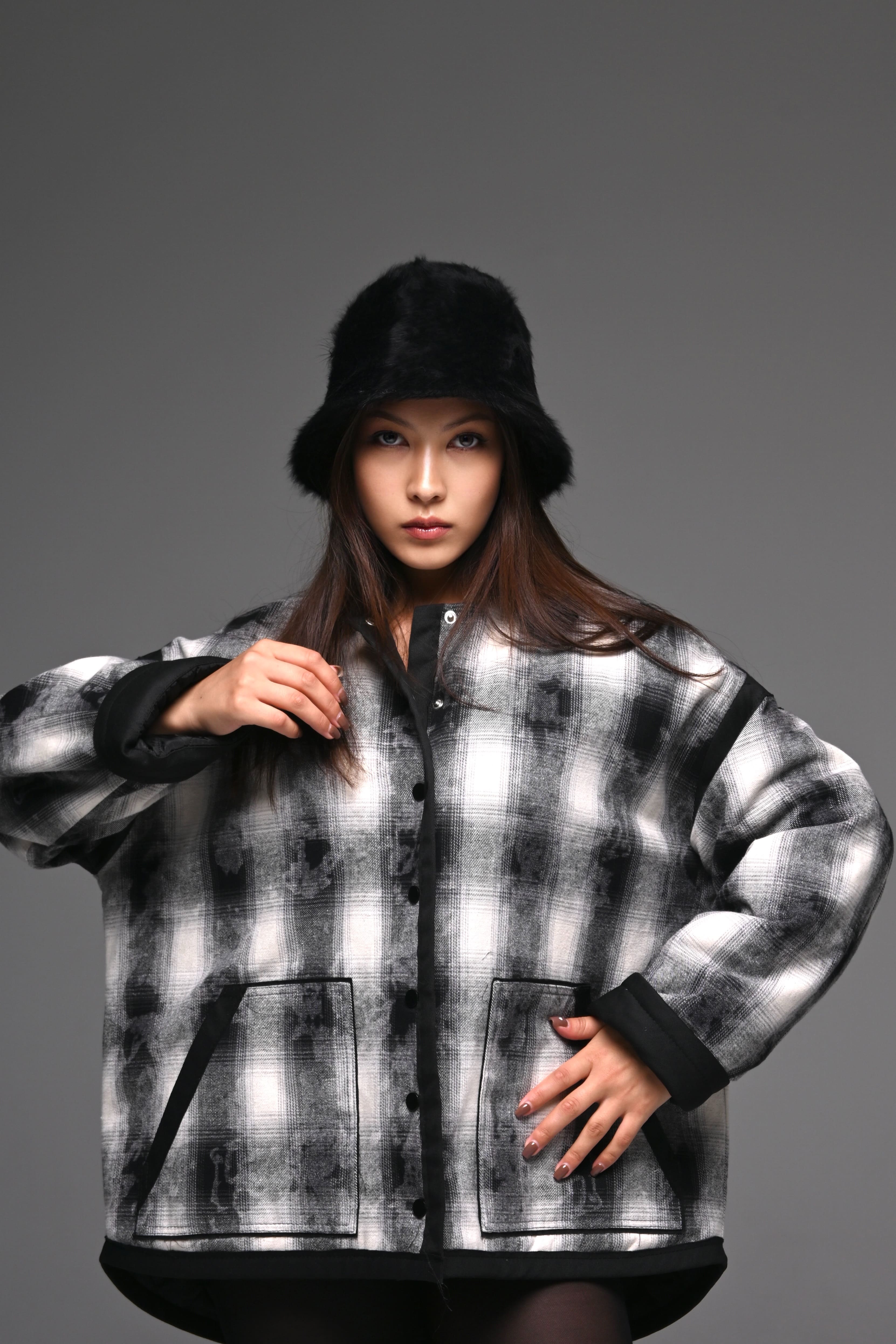 Объёмный крой, трендовая чёрно-белая клетка и мягкий утеплитель делают эту куртку идеальным вариантом для прохладных дней. Она дарит комфорт и свободу движений, подчёркивая ваш уверенный и современный стиль.