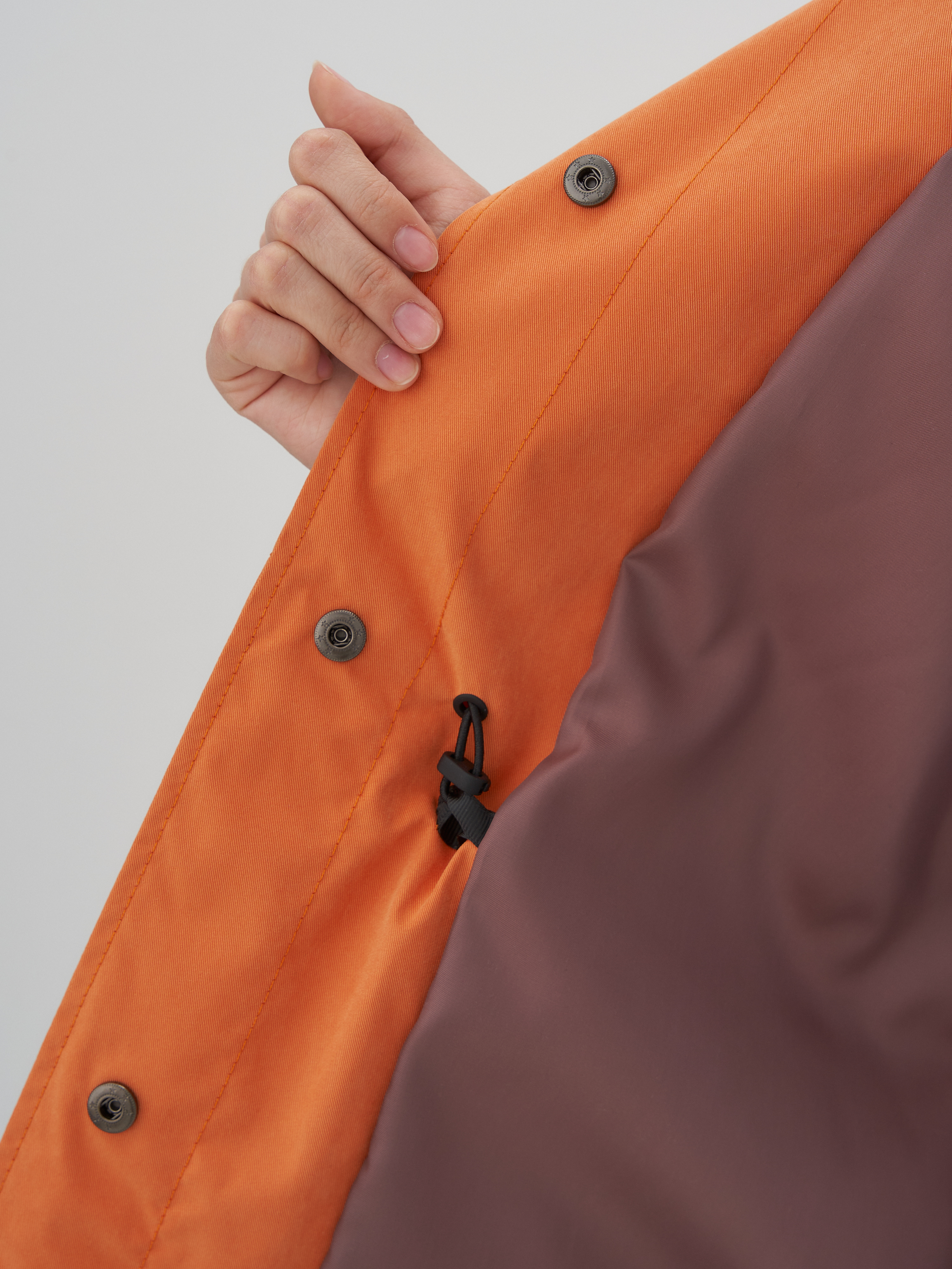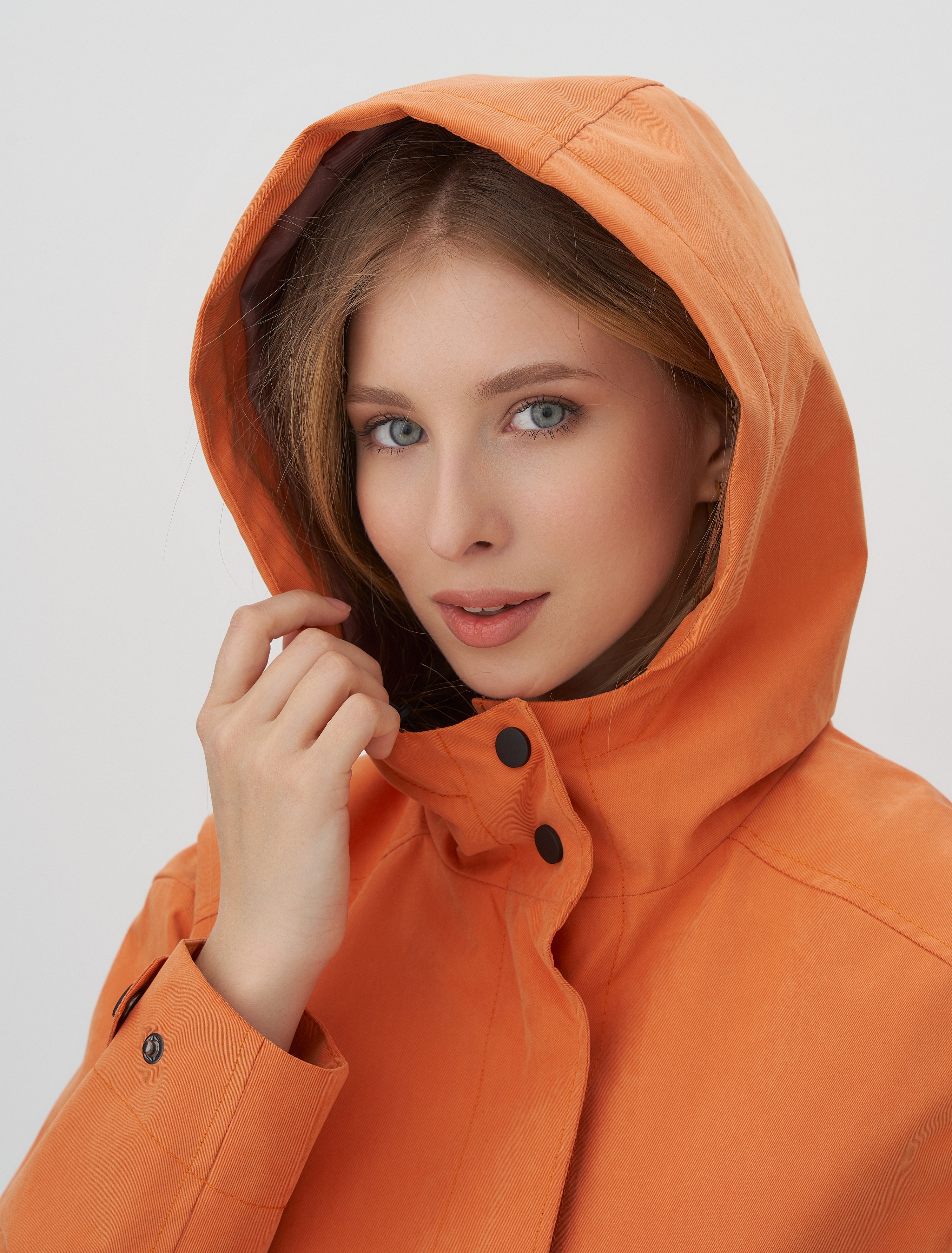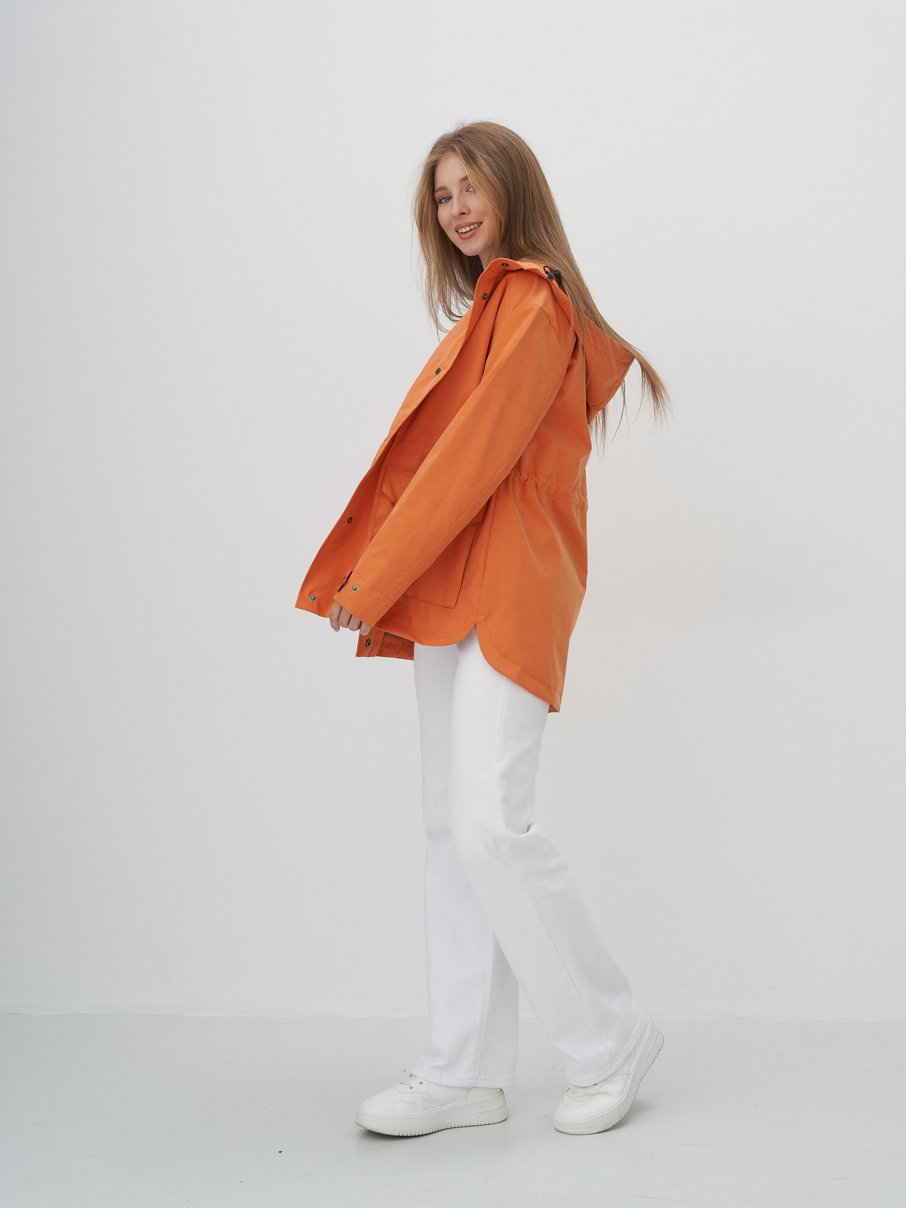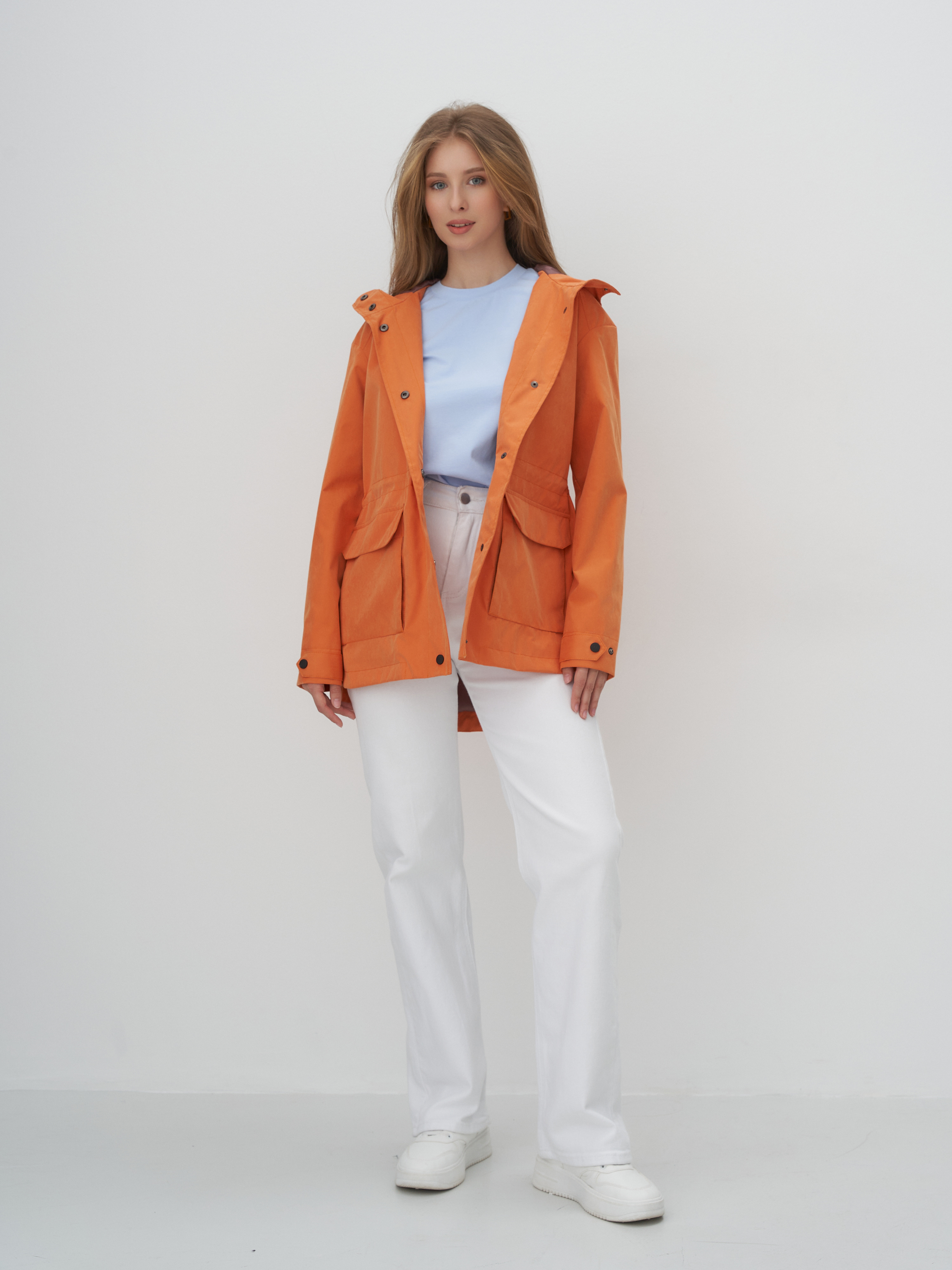 Детали ветровки: удобные внешние накладные карманы на кнопках, внутренняя утяжка на талии, регулируемые манжеты и глубокий регулируемый капюшон.