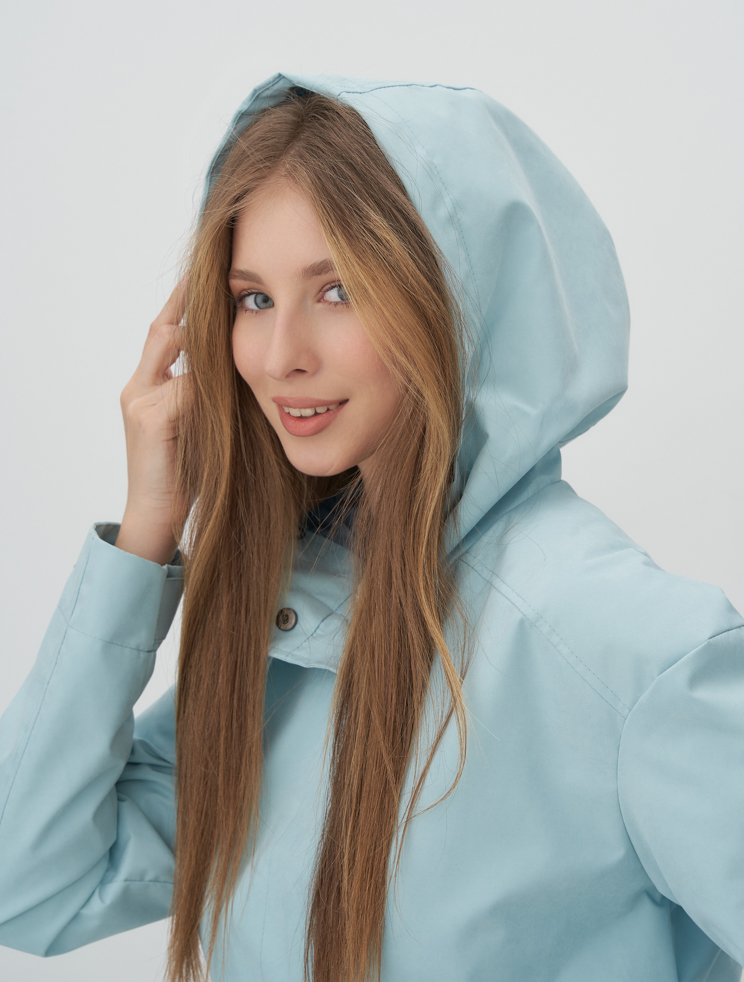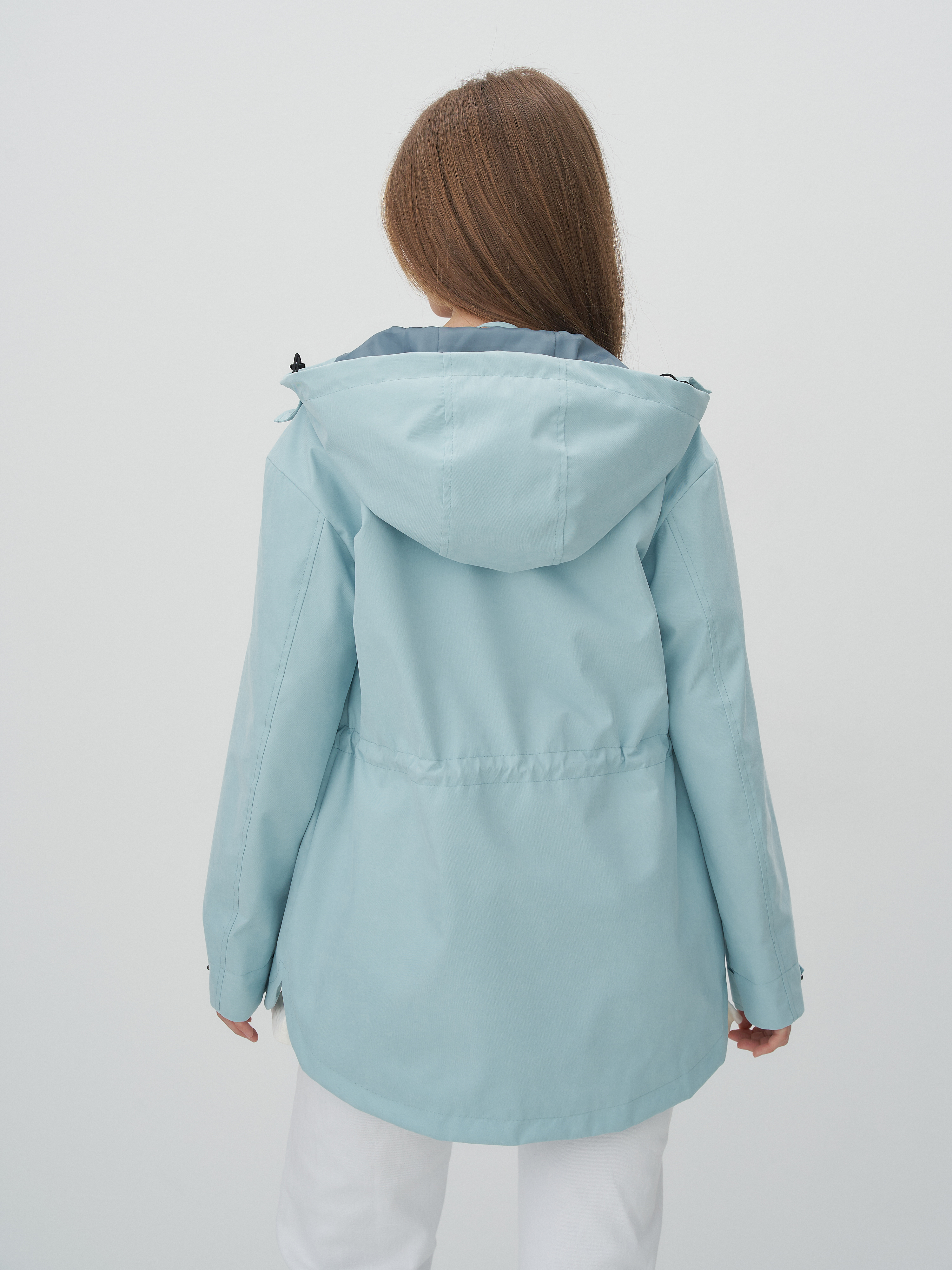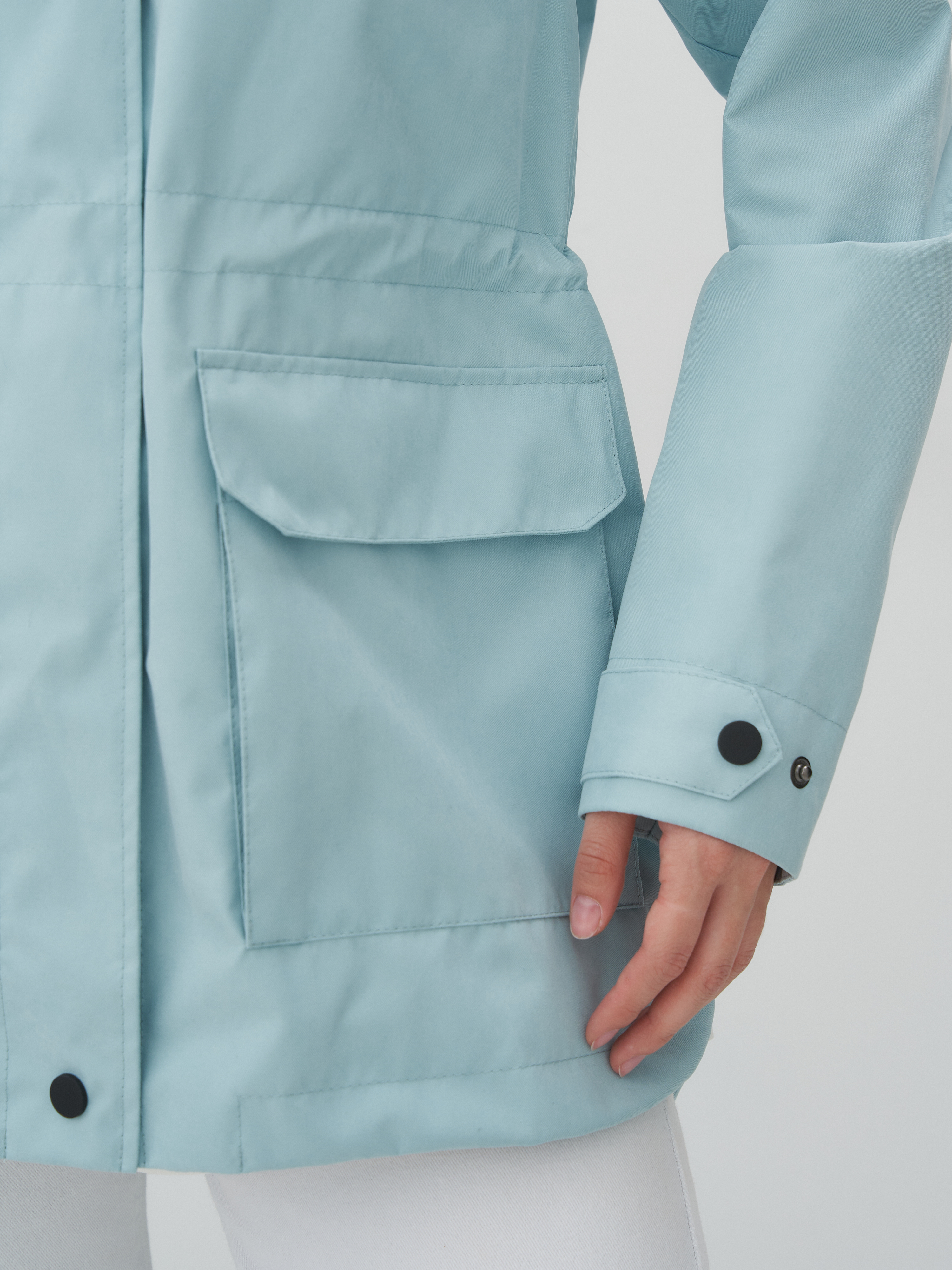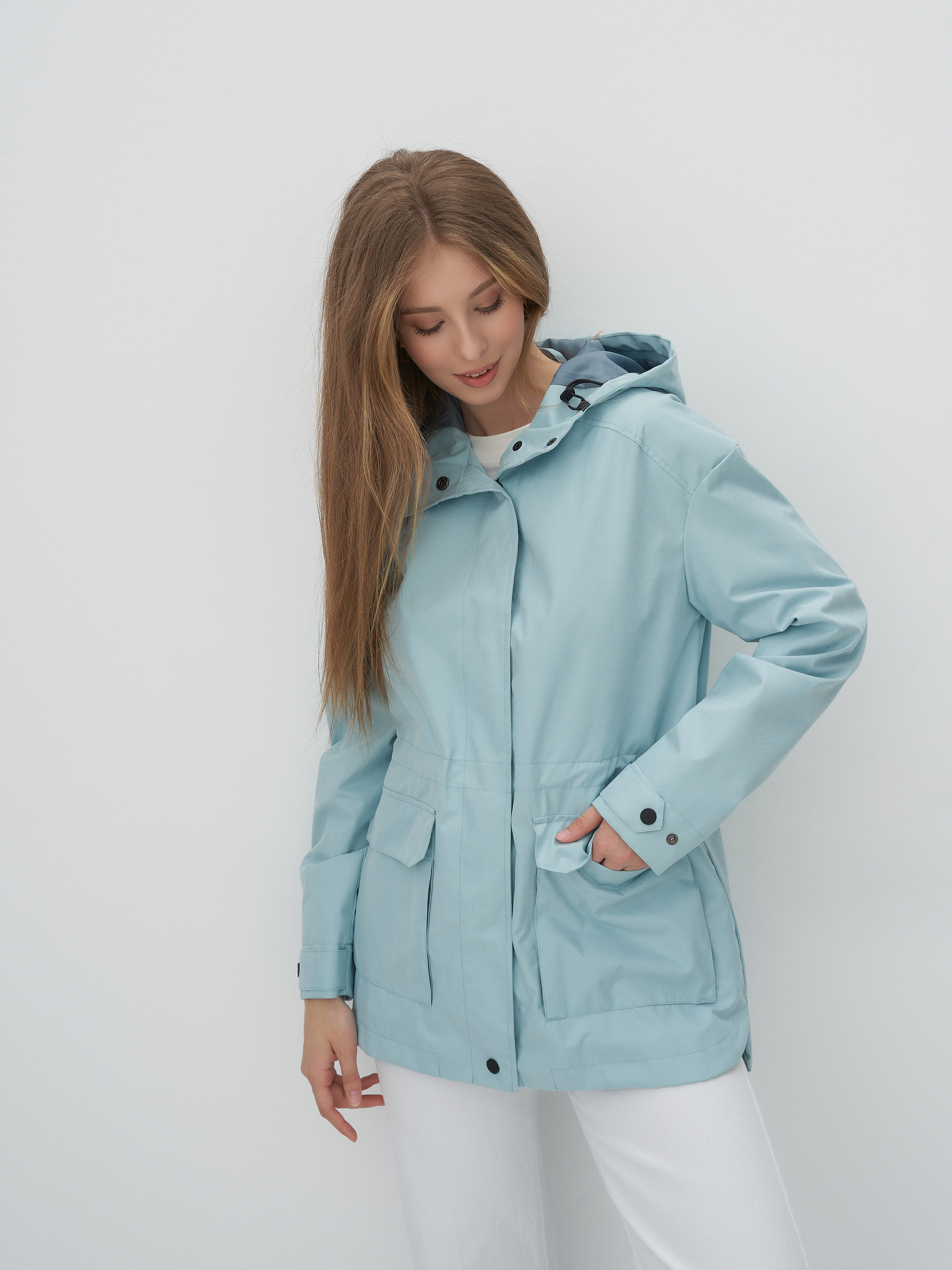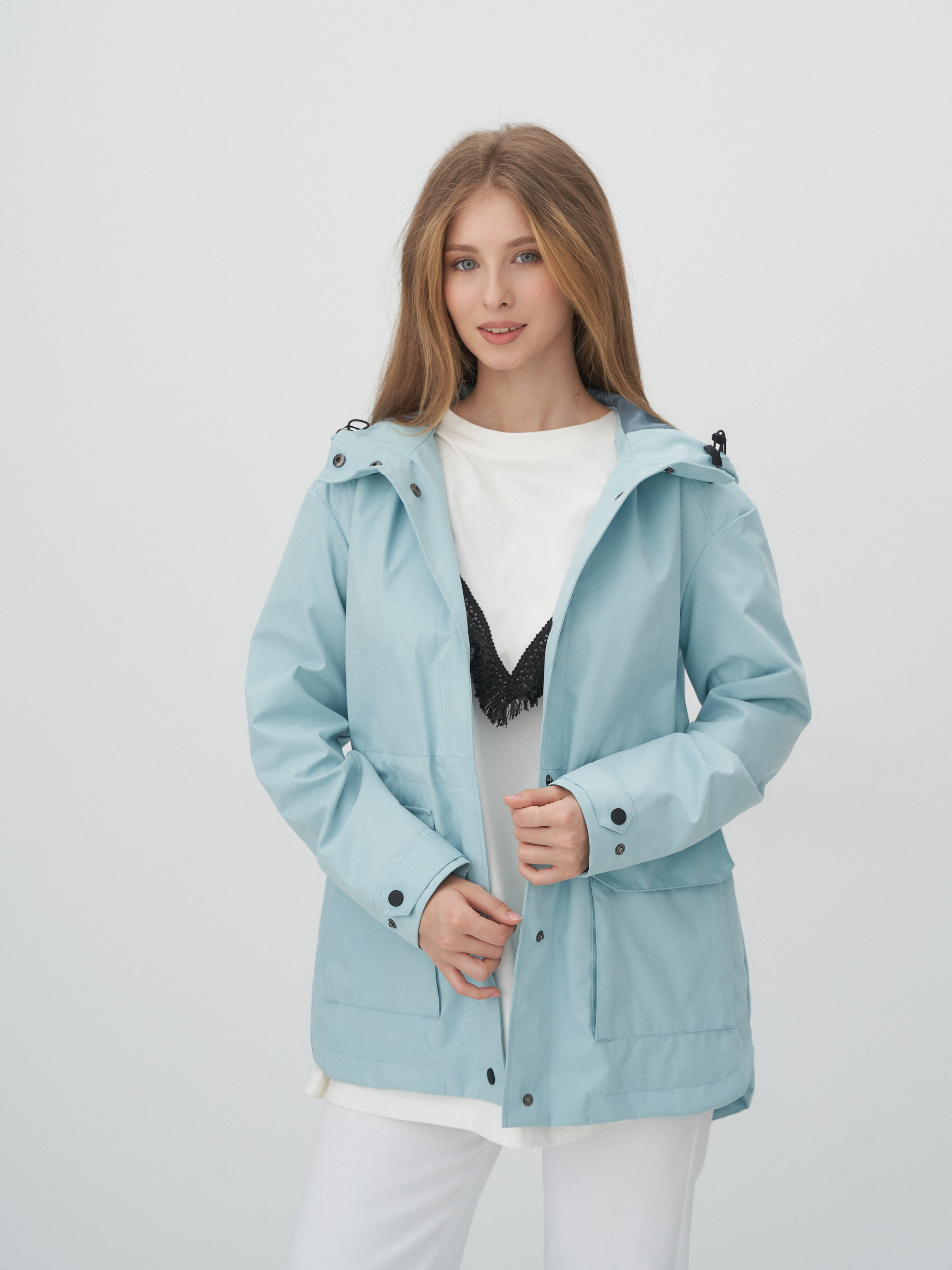 Детали ветровки: удобные внешние накладные карманы на кнопках, внутренняя утяжка на талии, регулируемые манжеты и глубокий регулируемый капюшон.