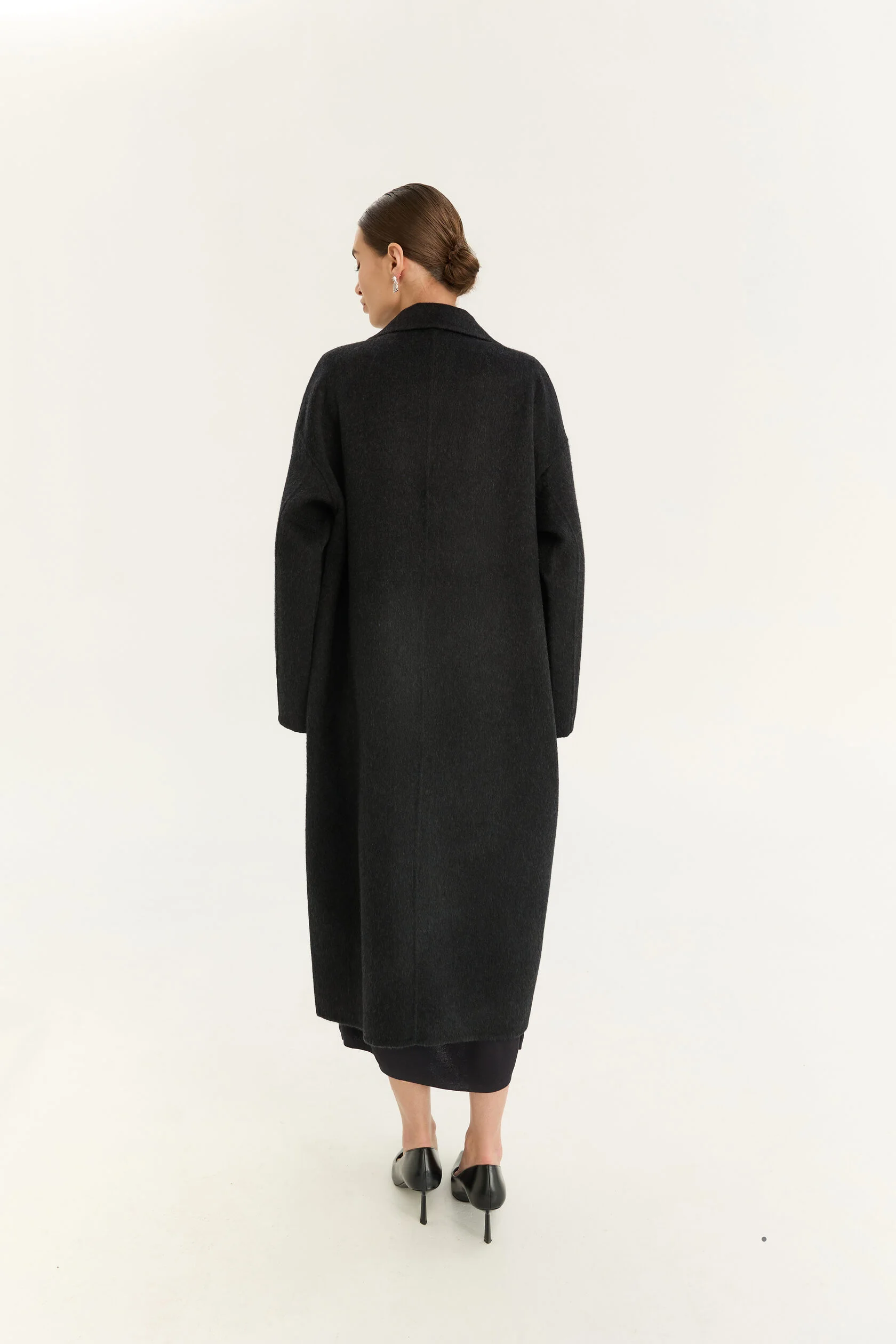Пальто Wool – это пальто свободного кроя, практичной длины миди, без подклада и с широким лацканом. Выполнено из полотна с премиальным составом, где 75% шерсть, 10% шерсть кролика и 15% волокна натурального шёлка.