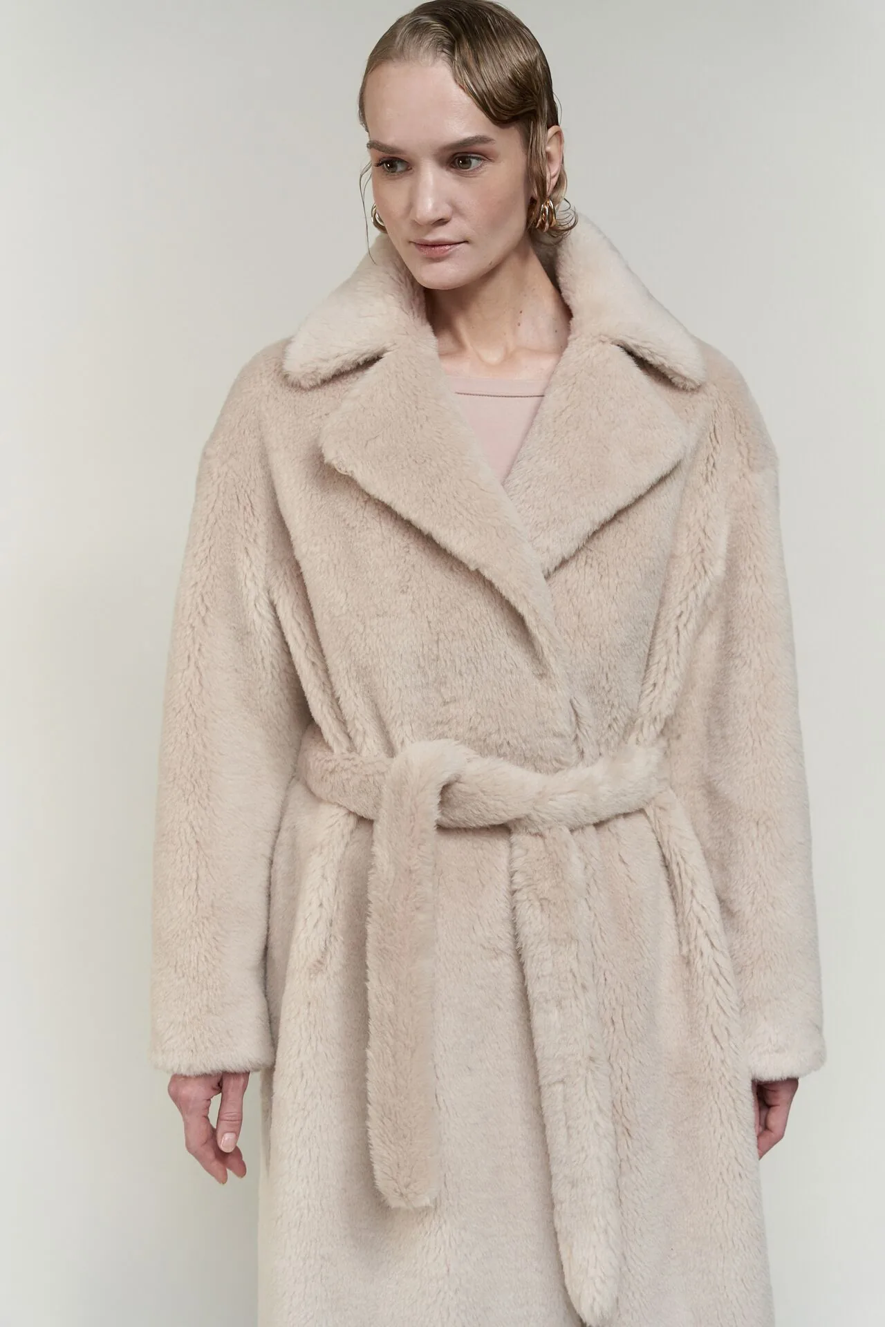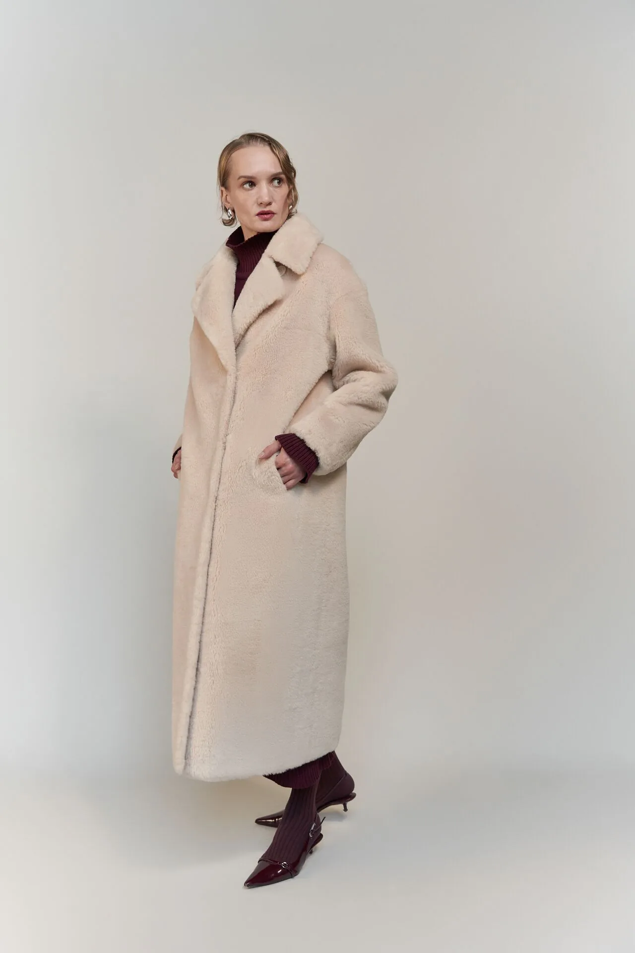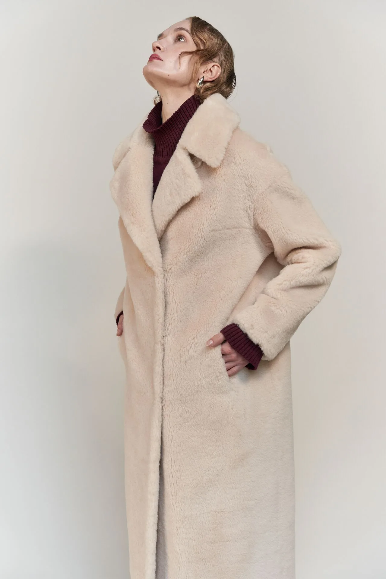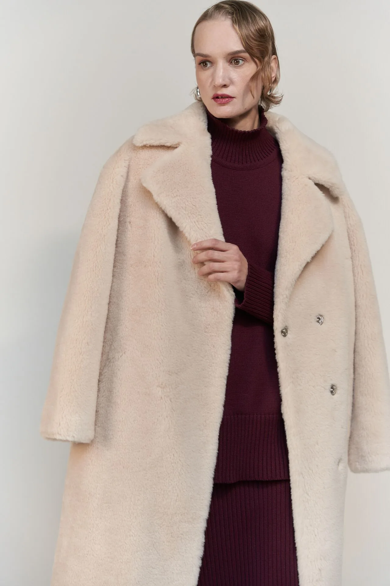 Пальто меховое из овечьей шерсти.