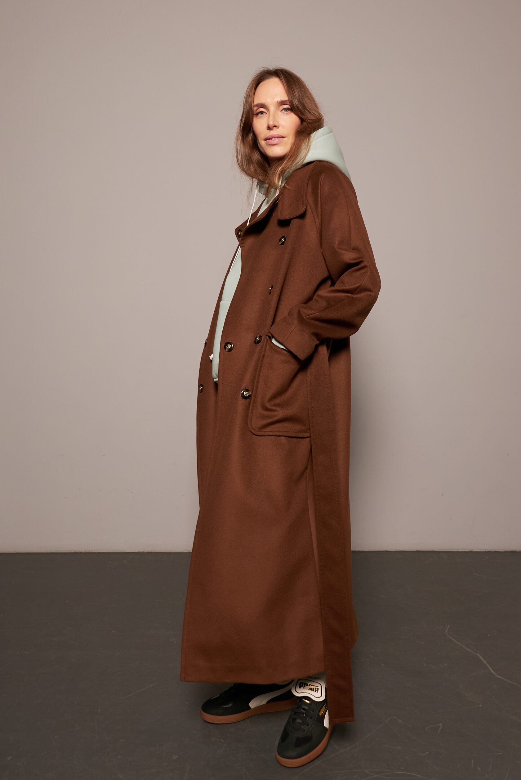 Пальто из верблюжьей шерсти лаконичного кроя и классического силуэта. Минималистичный дизайн со скрытыми пуговицами, острый лацкан, слегка увеличенная линия плеча. Безупречное пальто, продуманное до мелочей. Параметры изделия: Размер S Обхват по линии груди 100 см Обхват по линии бедер 104 см Линия плеча 16 см Длина рукава от плечевого шва 64 см Длина изделия по спинке 135 см Размер М Обхват по линии груди 110 см Обхват по линии бедер 114 см Линия плеча 16 см Длина рукава от плечевого шва 64 см Длина изделия по спинке 135 см Параметры модели: 94-60-90 Рост модели: 173 см Размер изделия на модели: S Уход: Стирка запрещена. Сухая бережная чистка