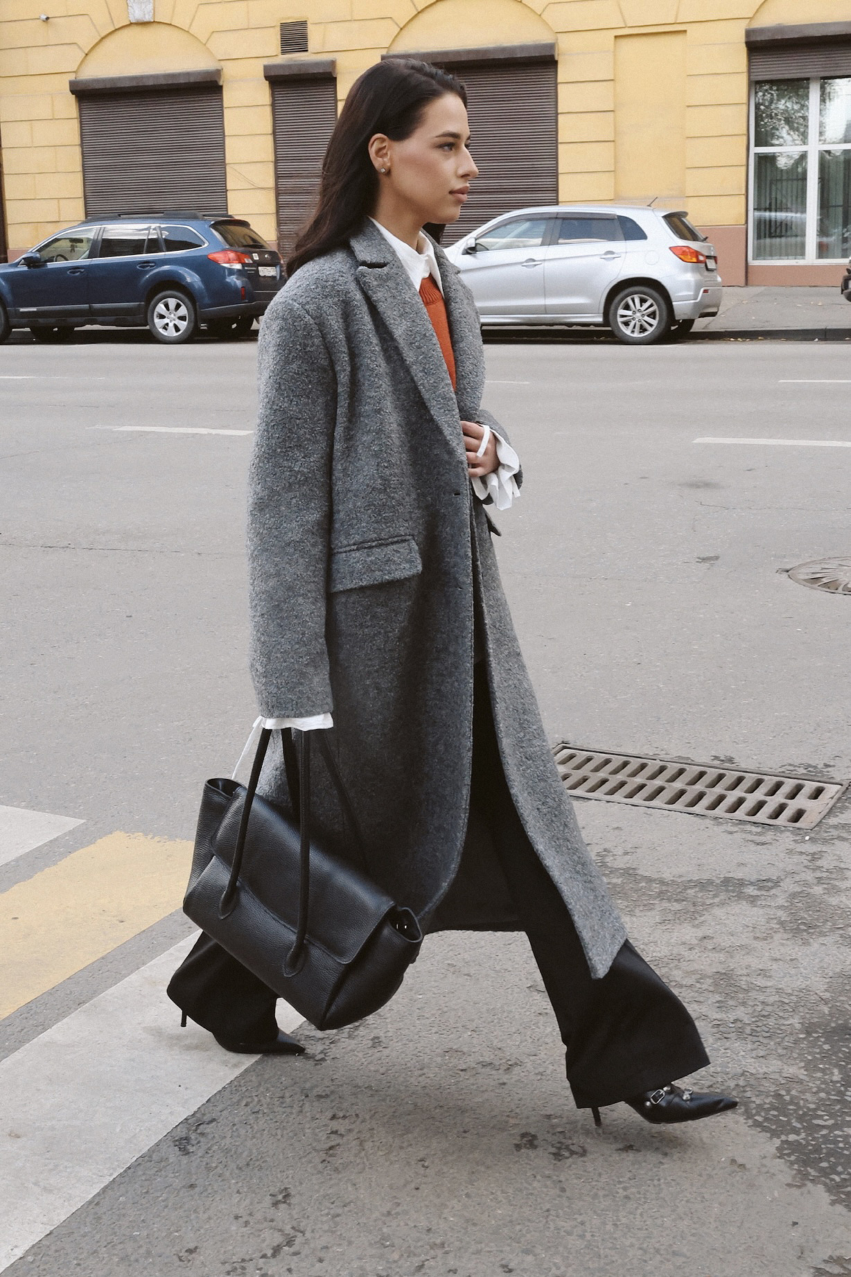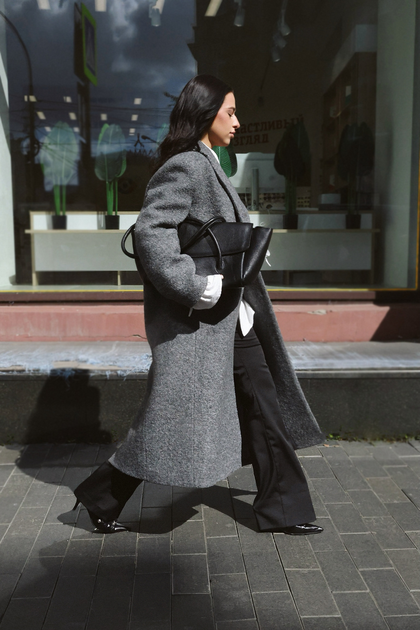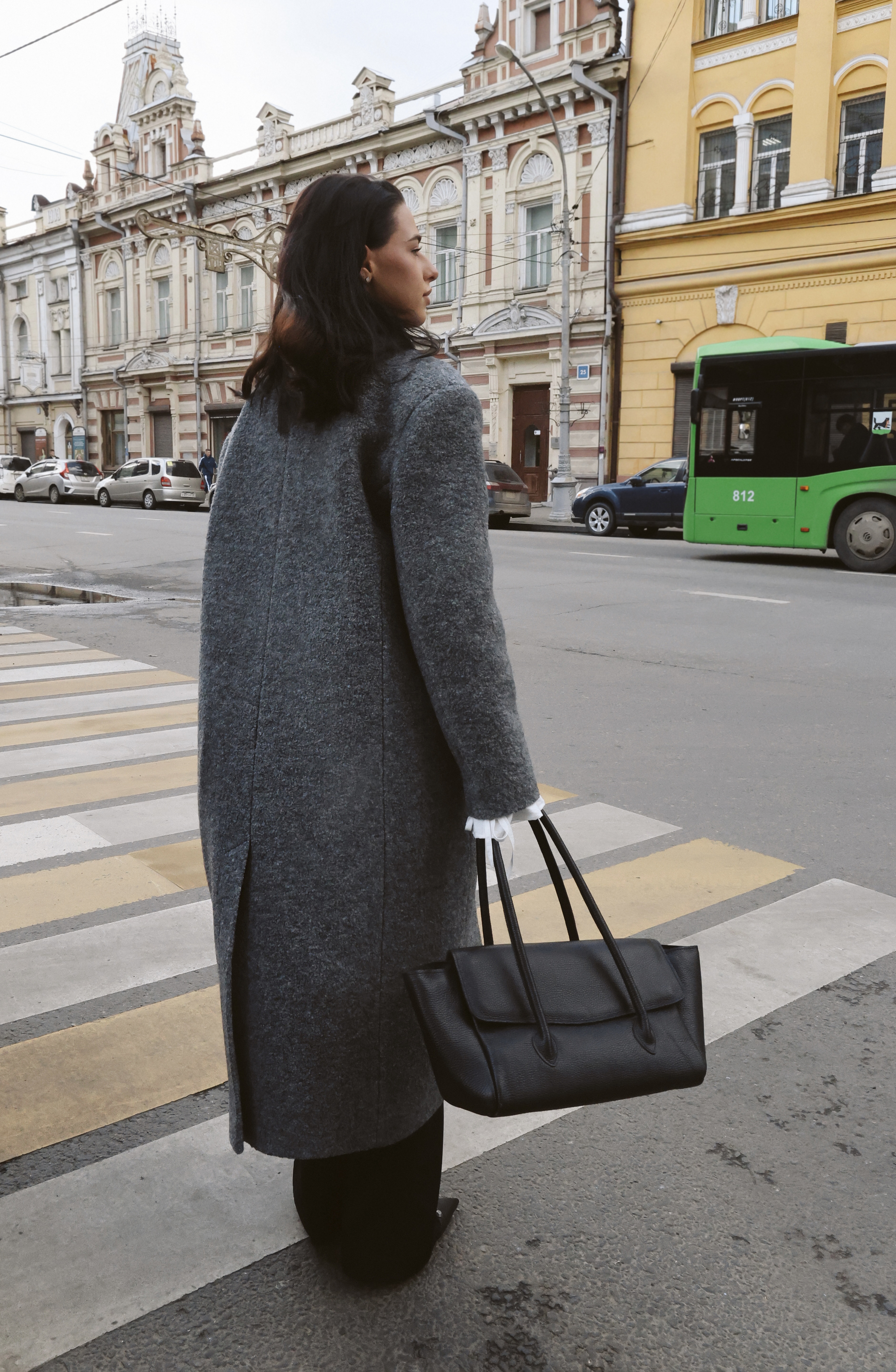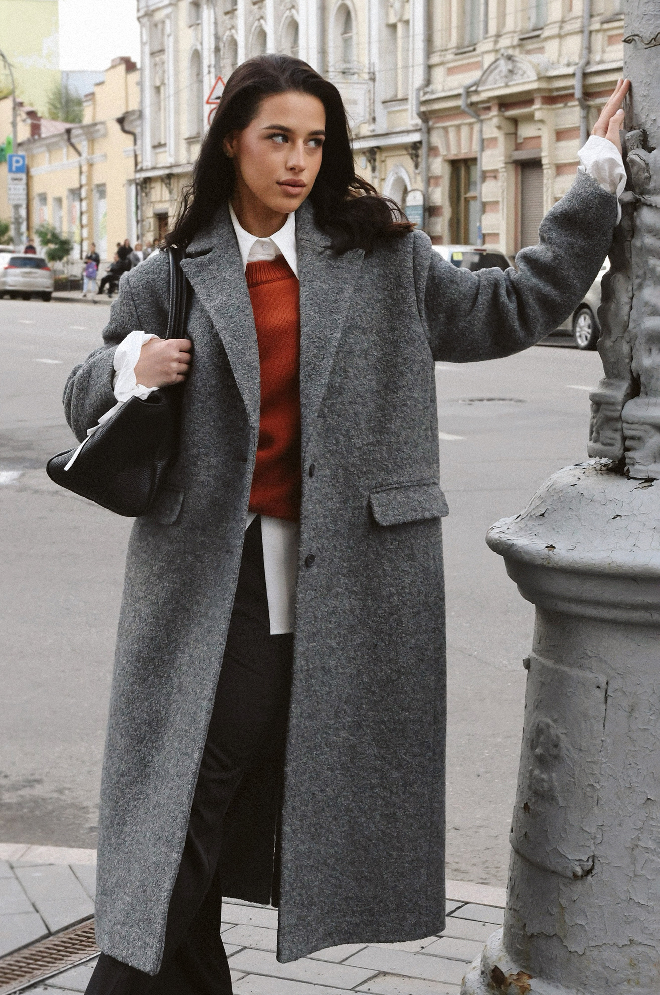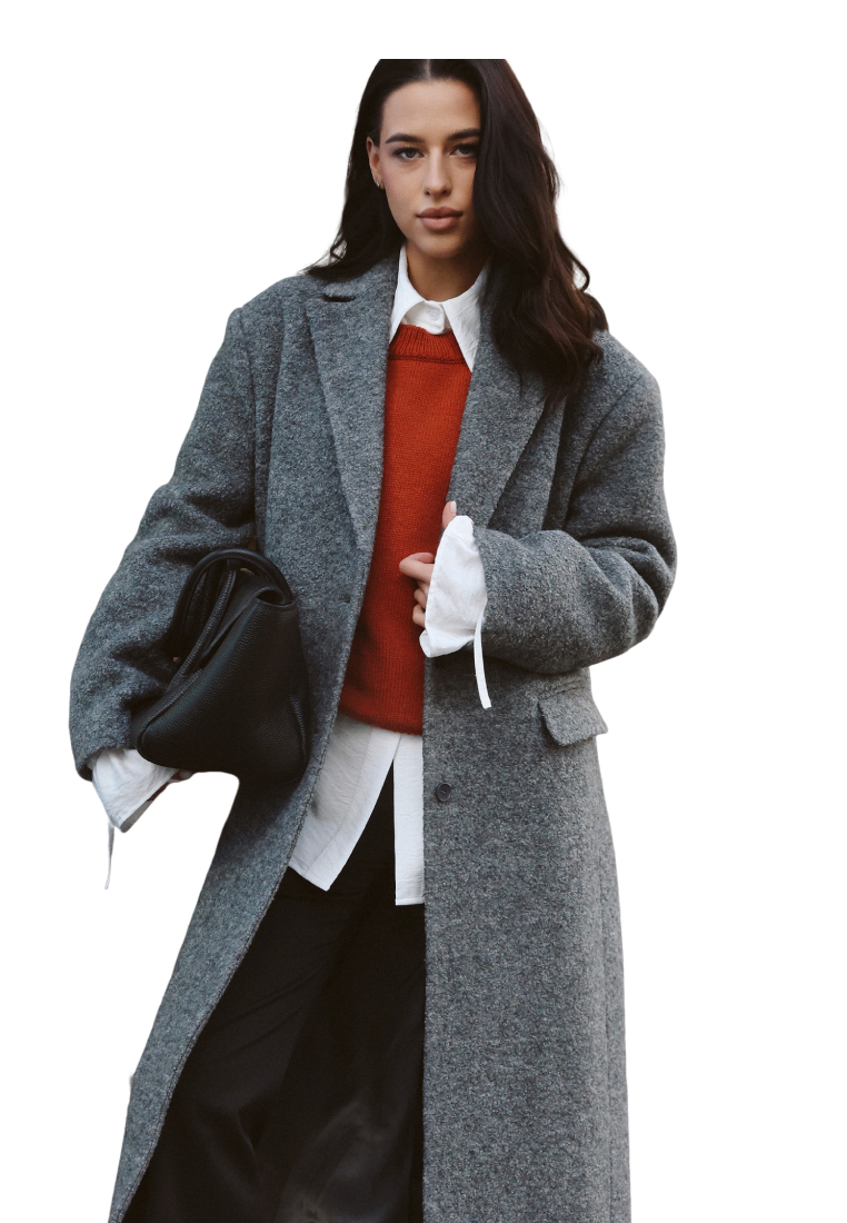 Пальто oversize кроя из драпа букле. Плотная, износостойкая ткань без предрасположенности к пилингу. Сохранение тепла за счет большого содержания шерсти. Застежка на пуговицы; два кармана с клапаном; шлица на спинке.
