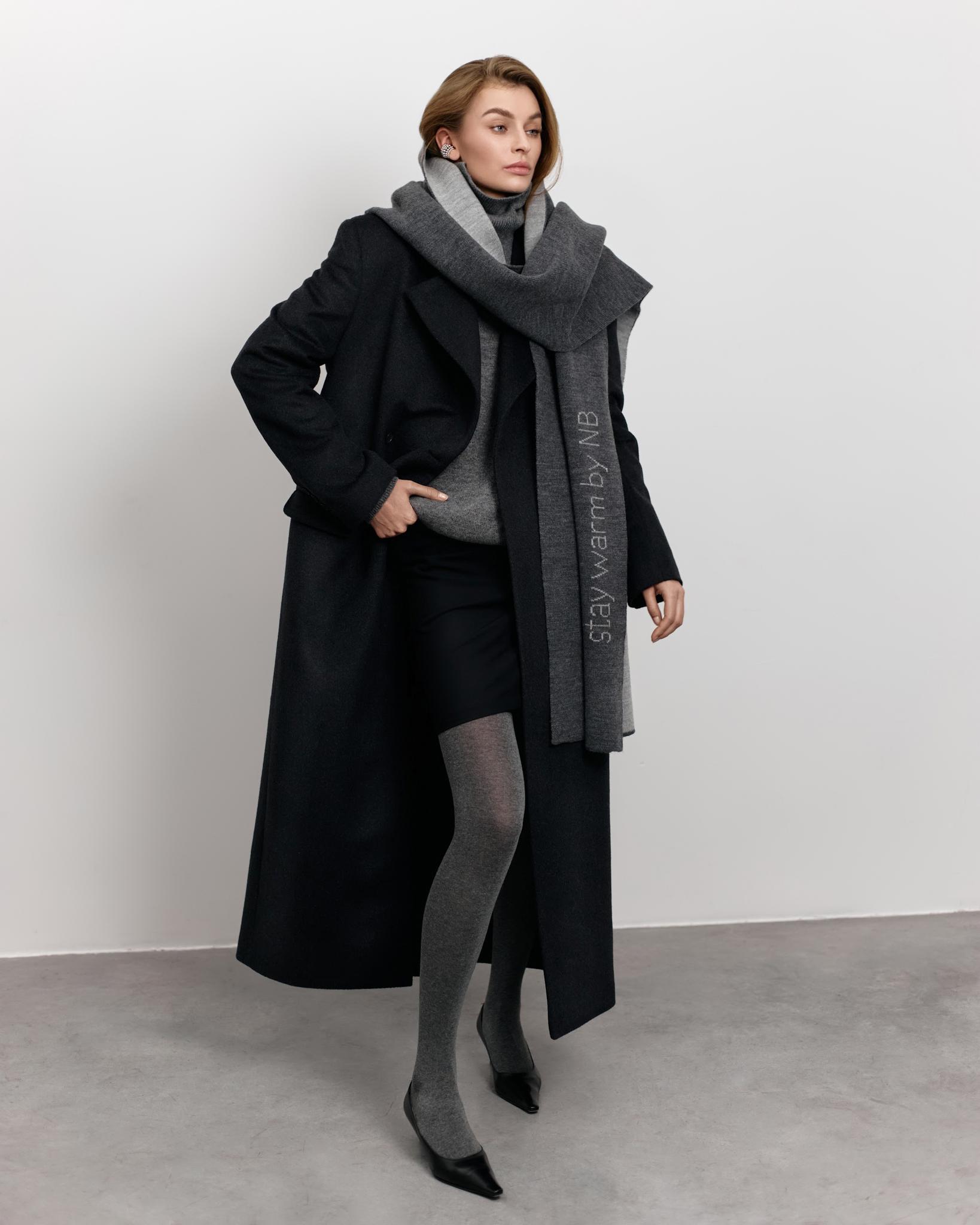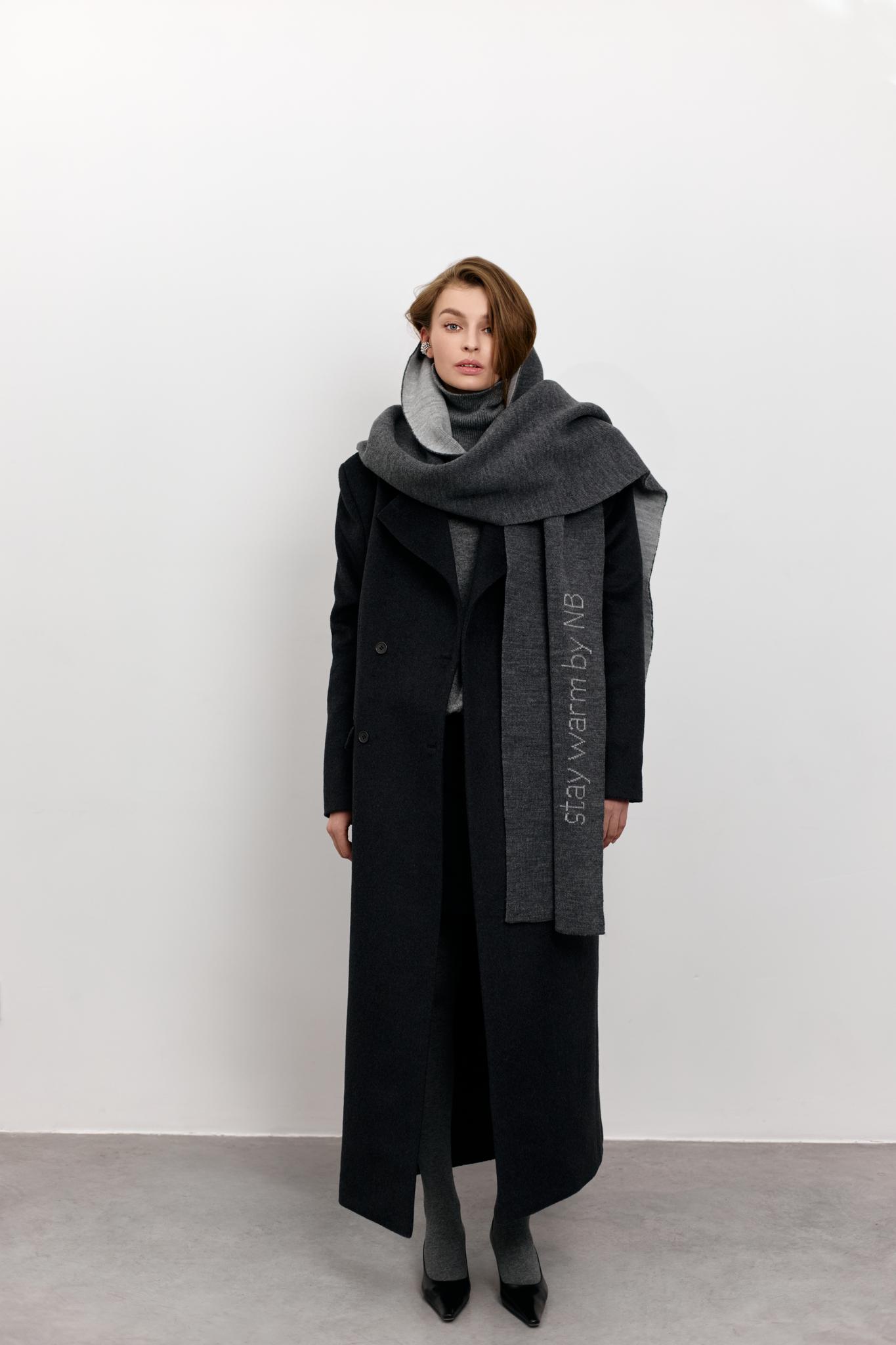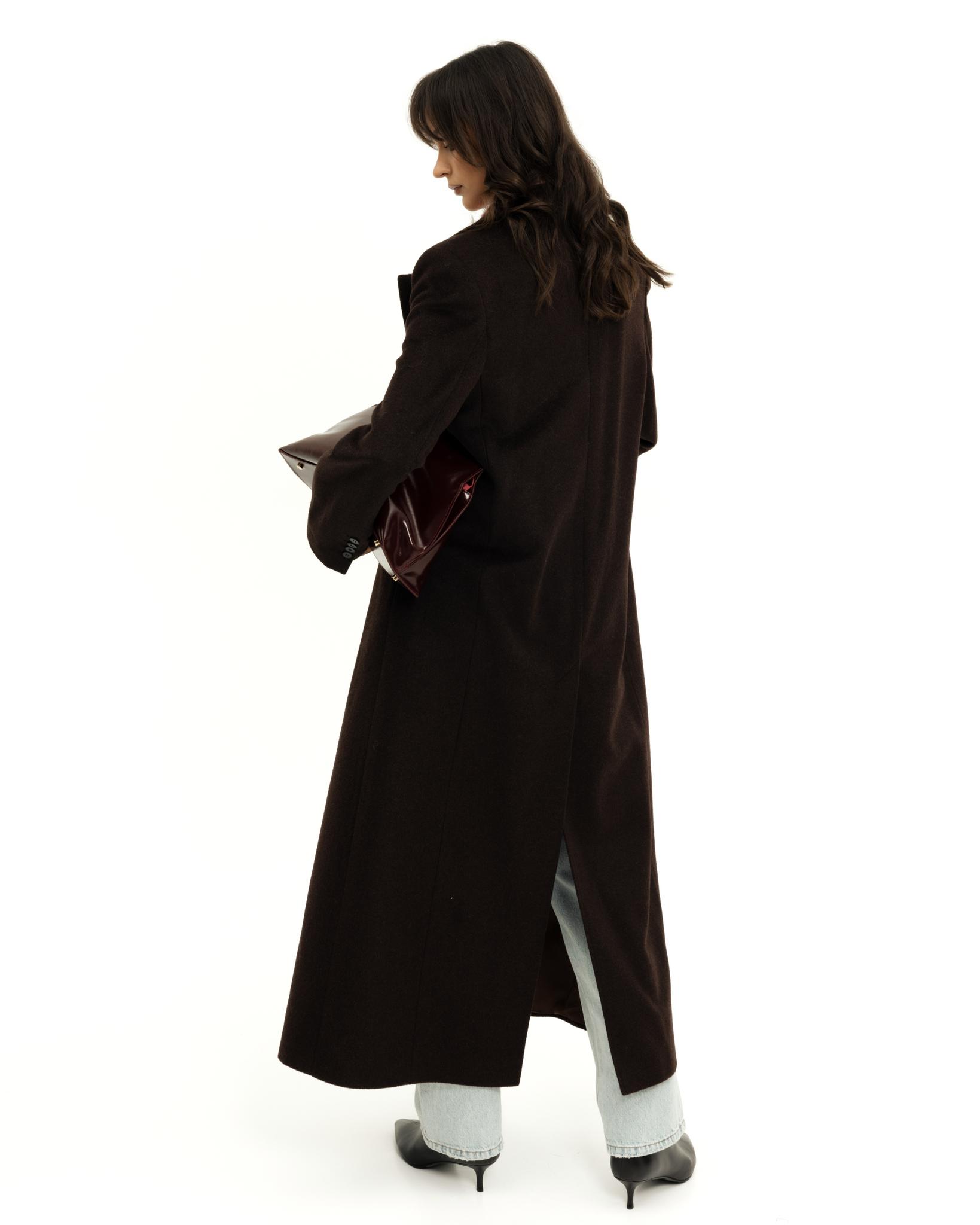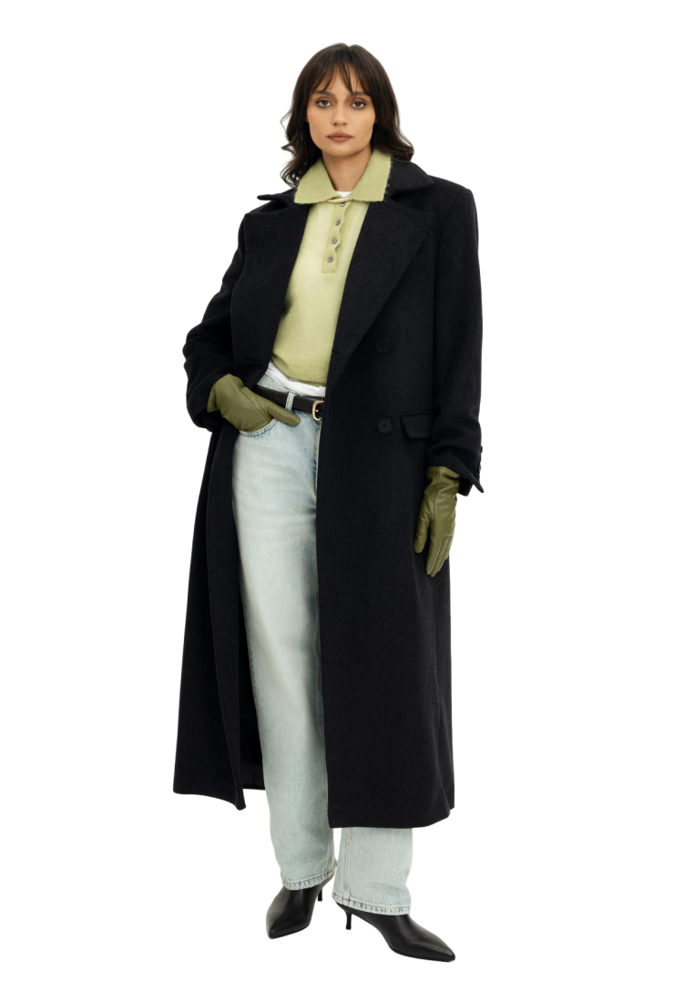 Двубортное шерстяное пальто THE COAT свободного кроя с английским воротником на подкладке - самый незаменимый элемент гардероба. Имеет боковые карманы и застегивается на пуговицы. Высокая шлица сзади дает возможность продемонстрировать стройность ваших ног, а так же обеспечивает свободу движений.