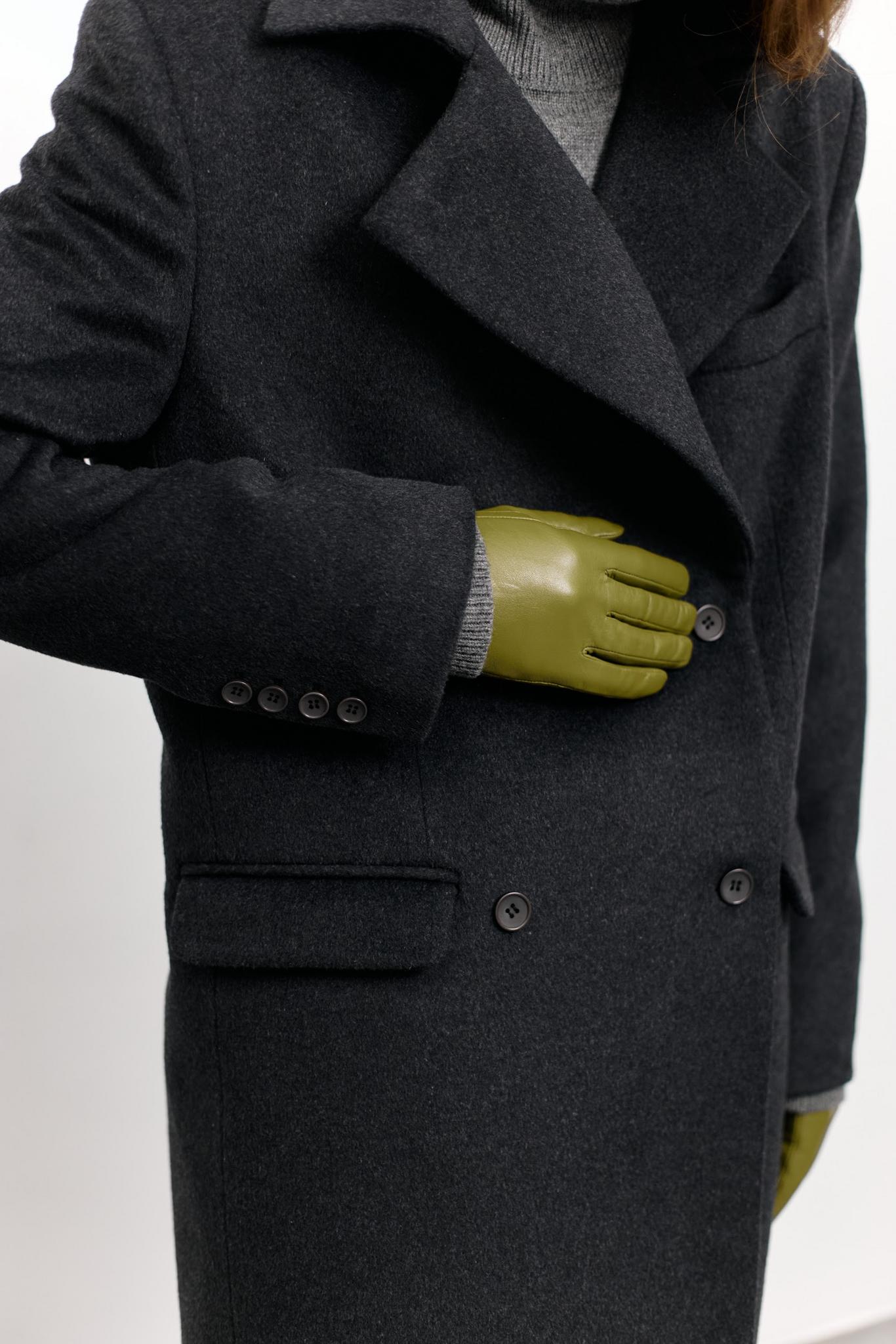 Пальто прямого кроя. Детали: акцентное плечо, застежка на пуговицы, карманы с клапанами, шлица на спинке.  Параметры изделия: Ширина - 60 см Длина по спинке - 122 см Ширина плеча - 17 см Длина рукава - 62 см Параметры модели:   Рост 162 см. Обхват груди 87 см. Обхват талии...