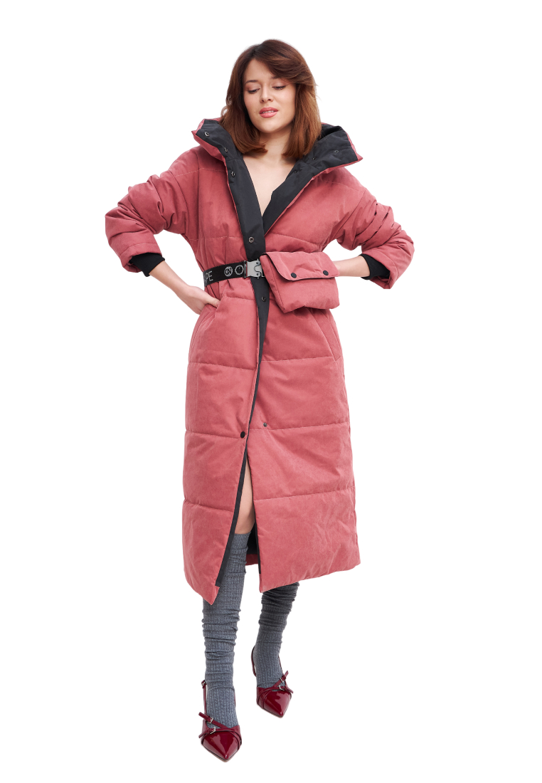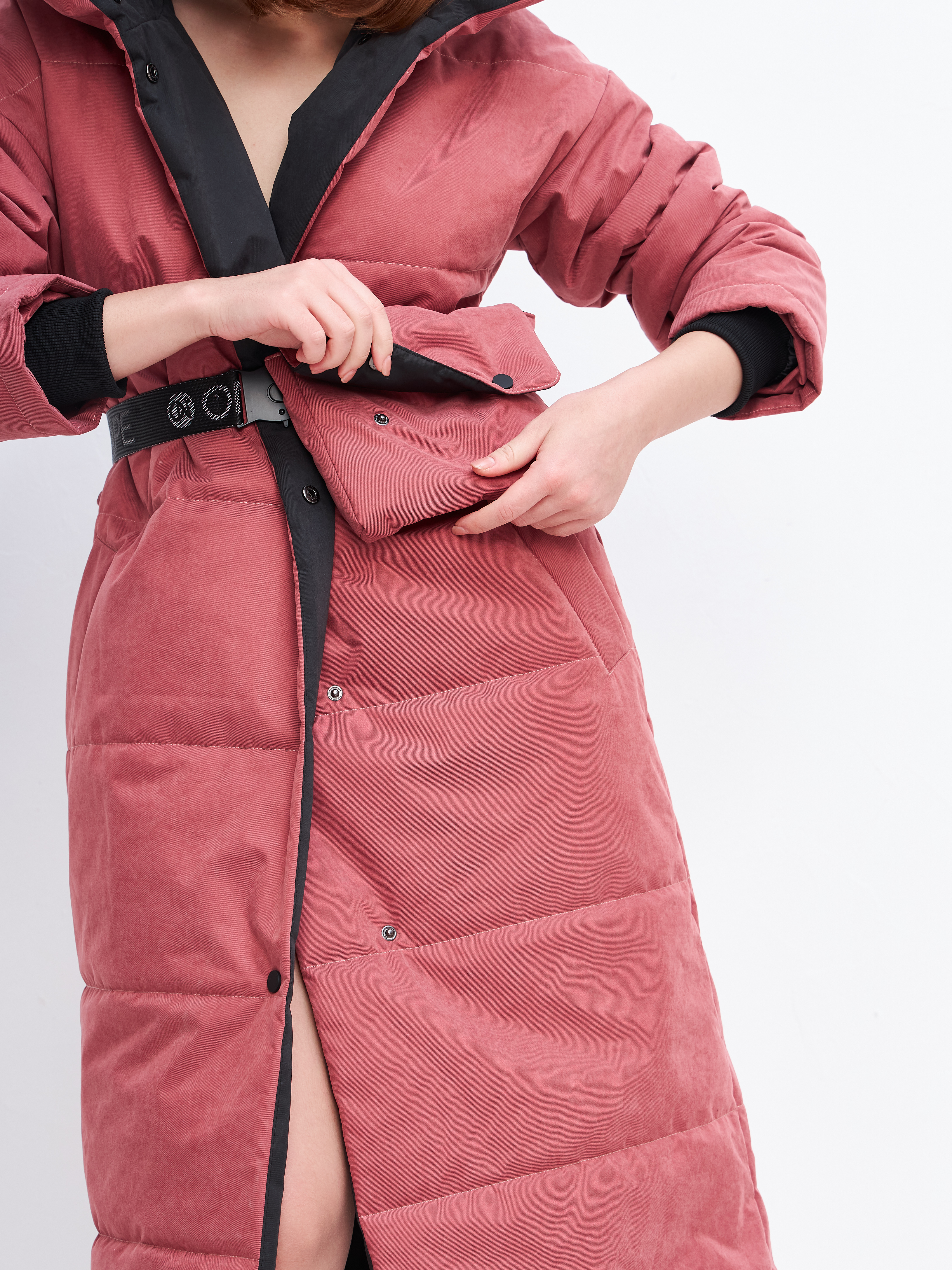 Зимнее пальто "Капелла" из мембранной ткани с эффектом бархата. Теплые пальто на кнопках актуальной крои, внутри и в верхнем воротнике, переходящим в капюшон. Контрастные детали внутри позволяют выразить свою индивидуальность. Пальто сшили из прочной и непромокаемой мембранной ткани с персиковым эффектом, утеплили невесомым премиальным утеплителем Слайтекс, который поддерживает оптимальную температуру. Талию привлекают ремнем с пряжкой-фастексом и миниатюрной поясной сумкой на кнопках.