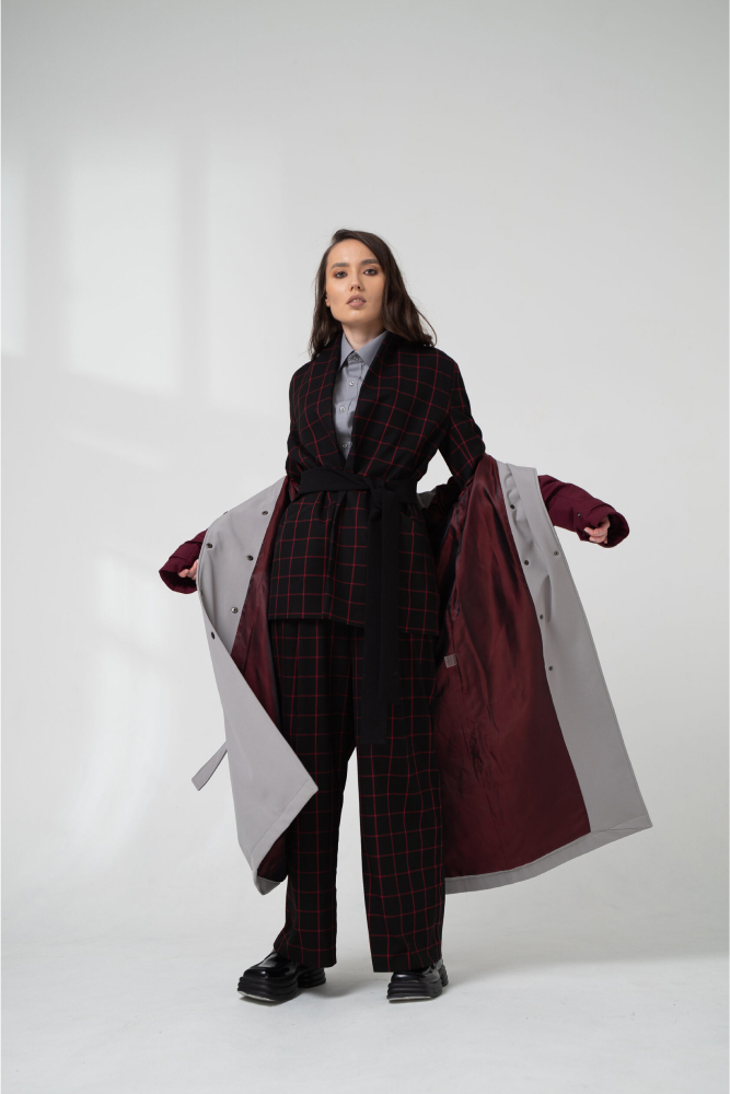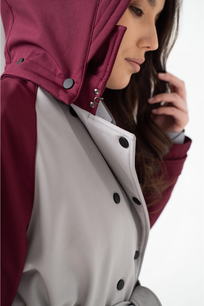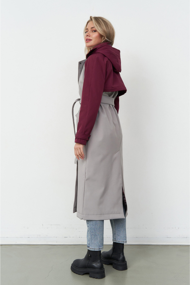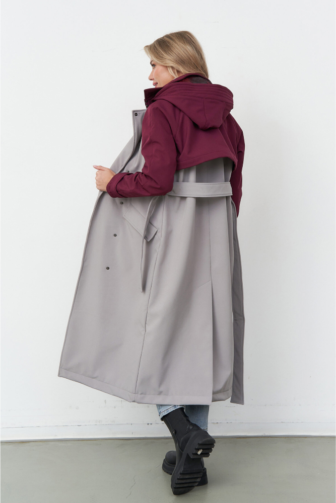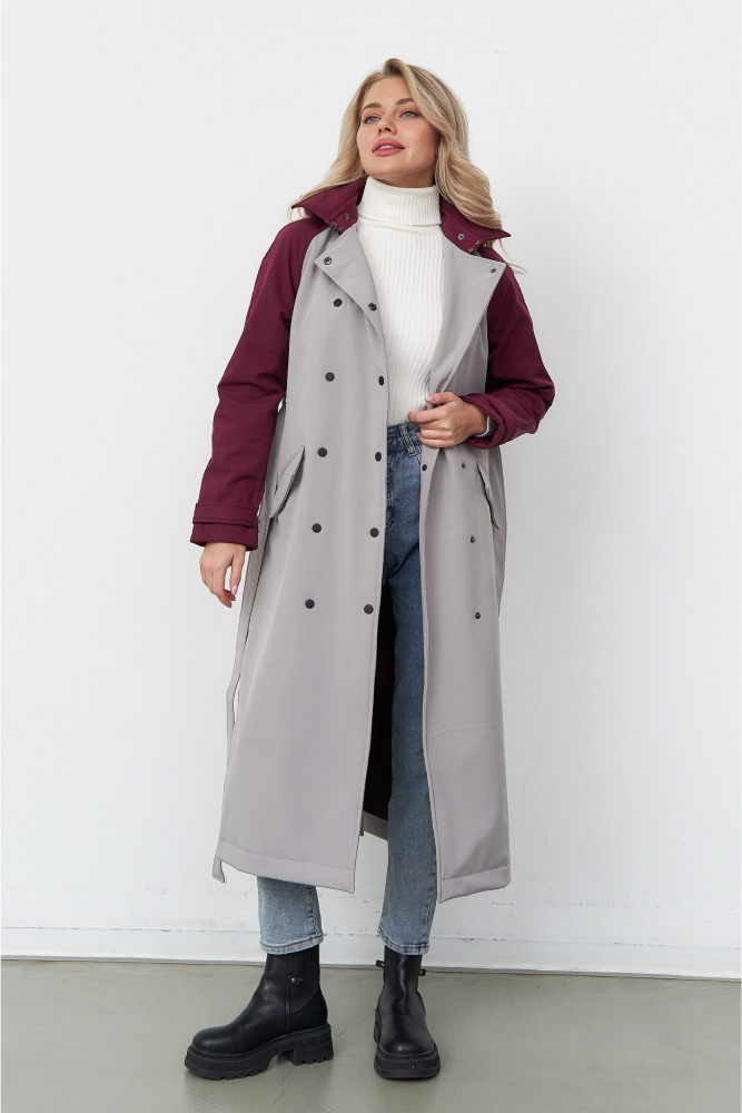 Демисезонный двубортный тренчкот "Матисов" актуального кроя в стиле колор-блок из софтшела. Идеально вписывается в стильный городской образ. Тренч выполнен в двух контрастных цветах с приятным подкладом из поливискозы и мембраны с высокими показателями защиты от дождя и ветра.