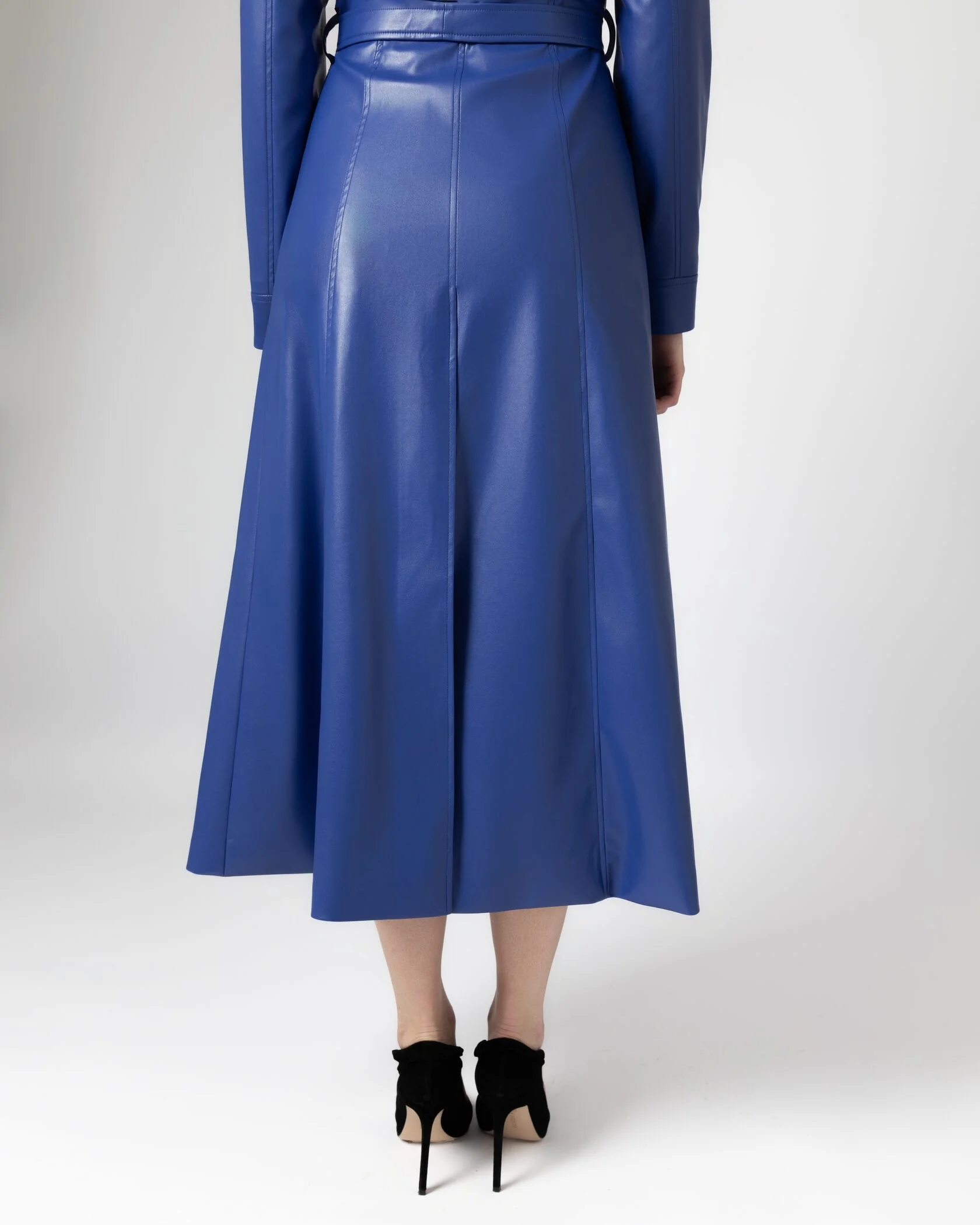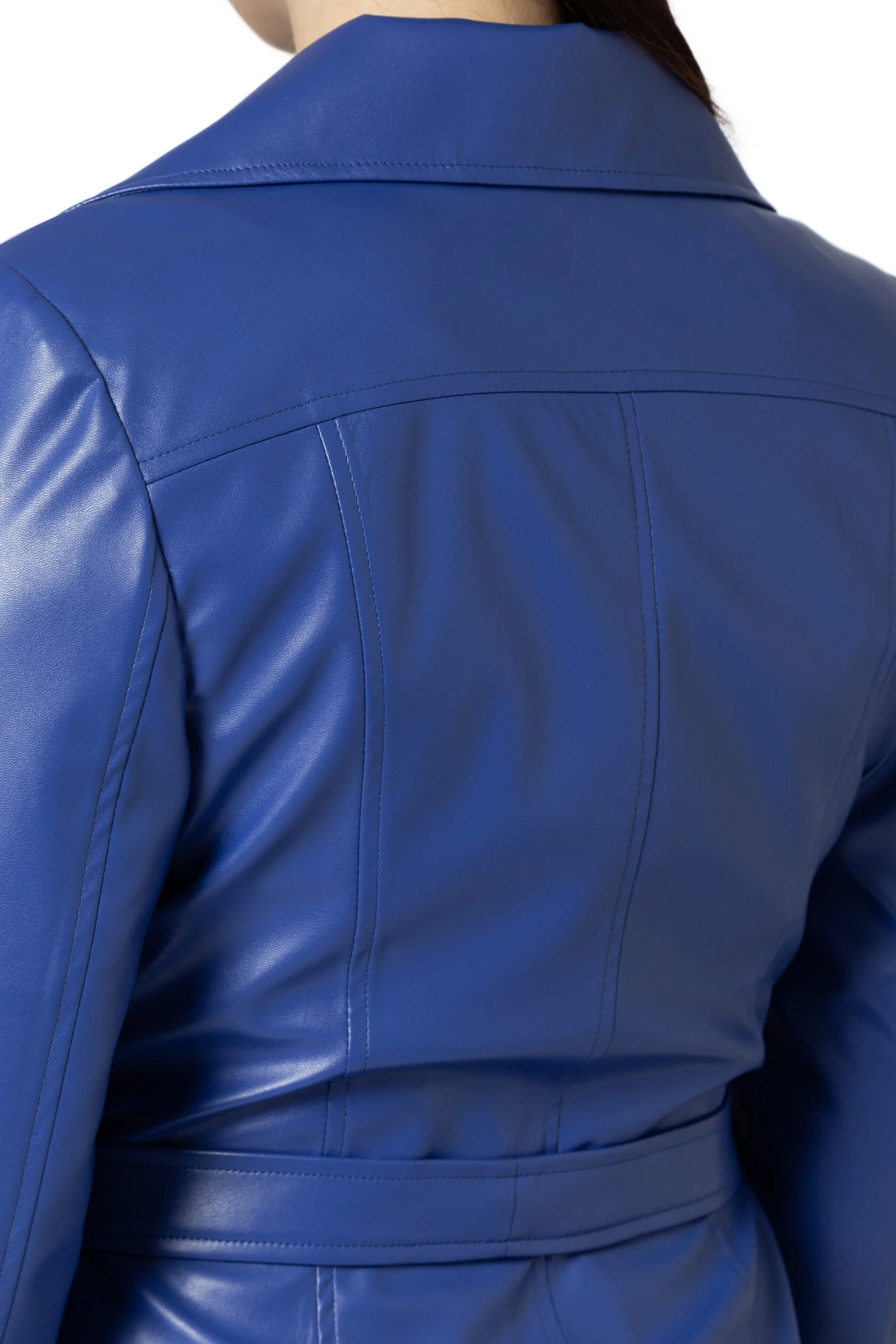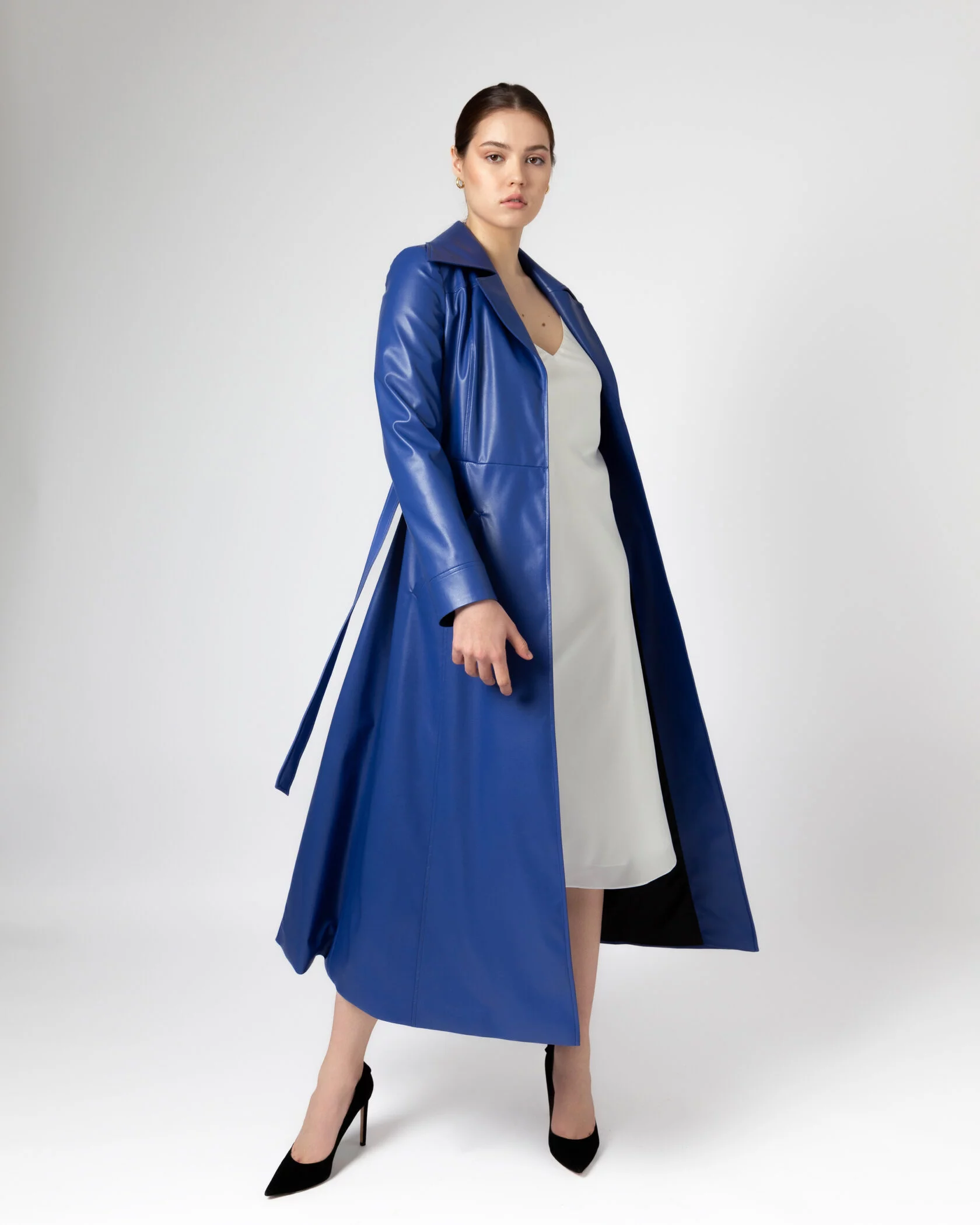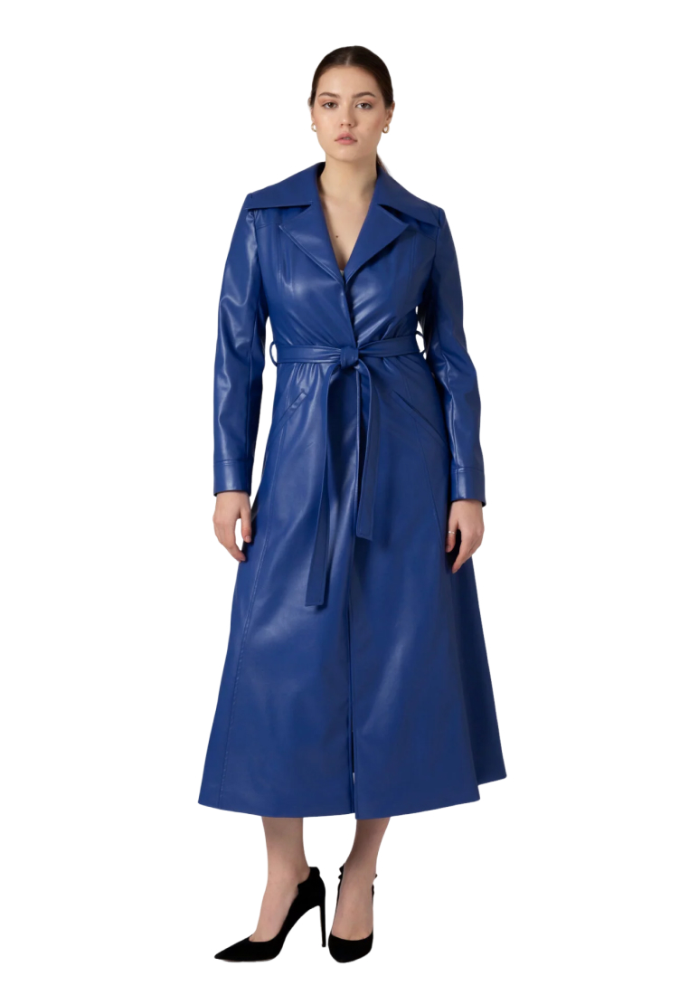 Эффектный тренч из экокожи. Изделие выполнено в дизайне inten. Приталенный аккуратно выполненный силуэт придаёт модели изящности. Стильно и ничего лишнего. Кнопку застежки тренча на талии устанавливаем индивидуально под ваш замер талии. Покупая этот товар, вы вносите свой вклад в сокращение углеродного следа и поддерживаете развитие осознанных локальных фабрик.