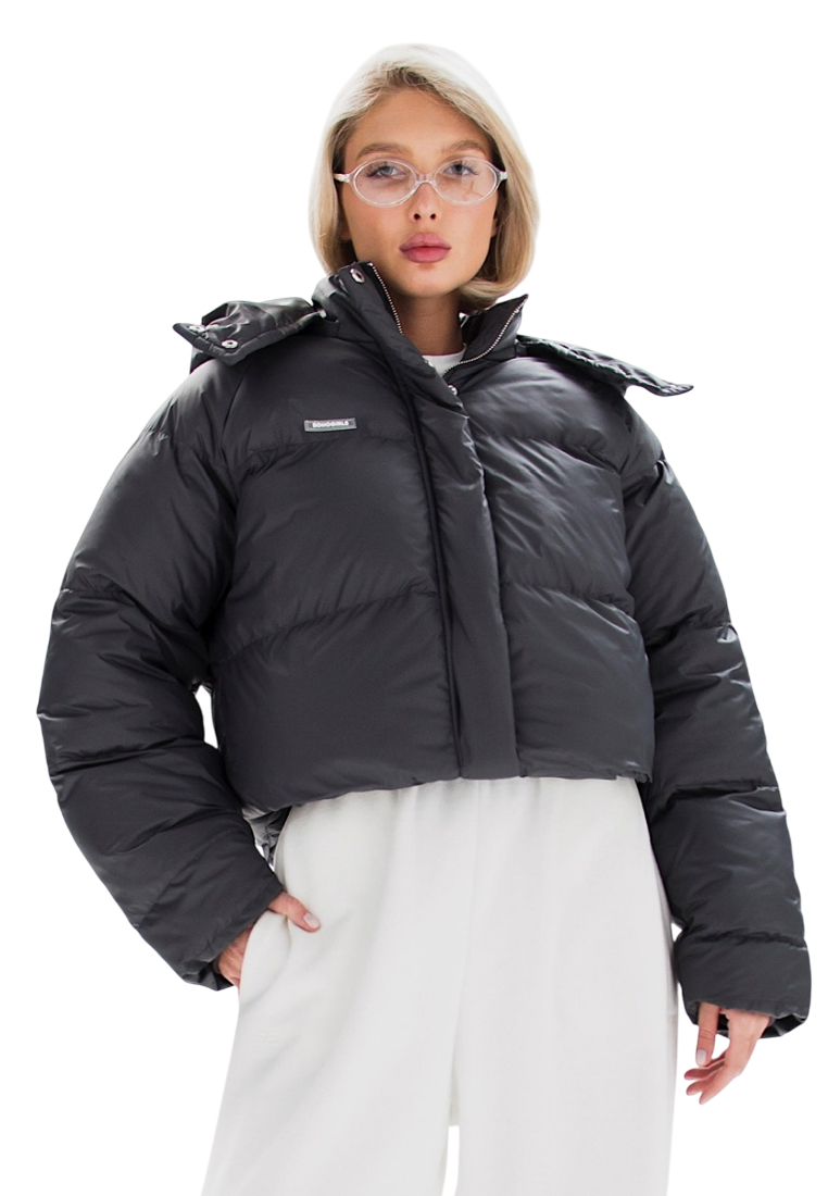 Базовый короткий пуховик oversize кроя с водоотталкивающей мембраной и защитой от ветра.  Детали: съемный капюшон на молнии; кулиска по периметру; два глубоких внешних кармана, дополнительно внутренний на молнии. Спущенный плечевой шов, воротник-стойка, ветрозащитная планка на кнопках....
