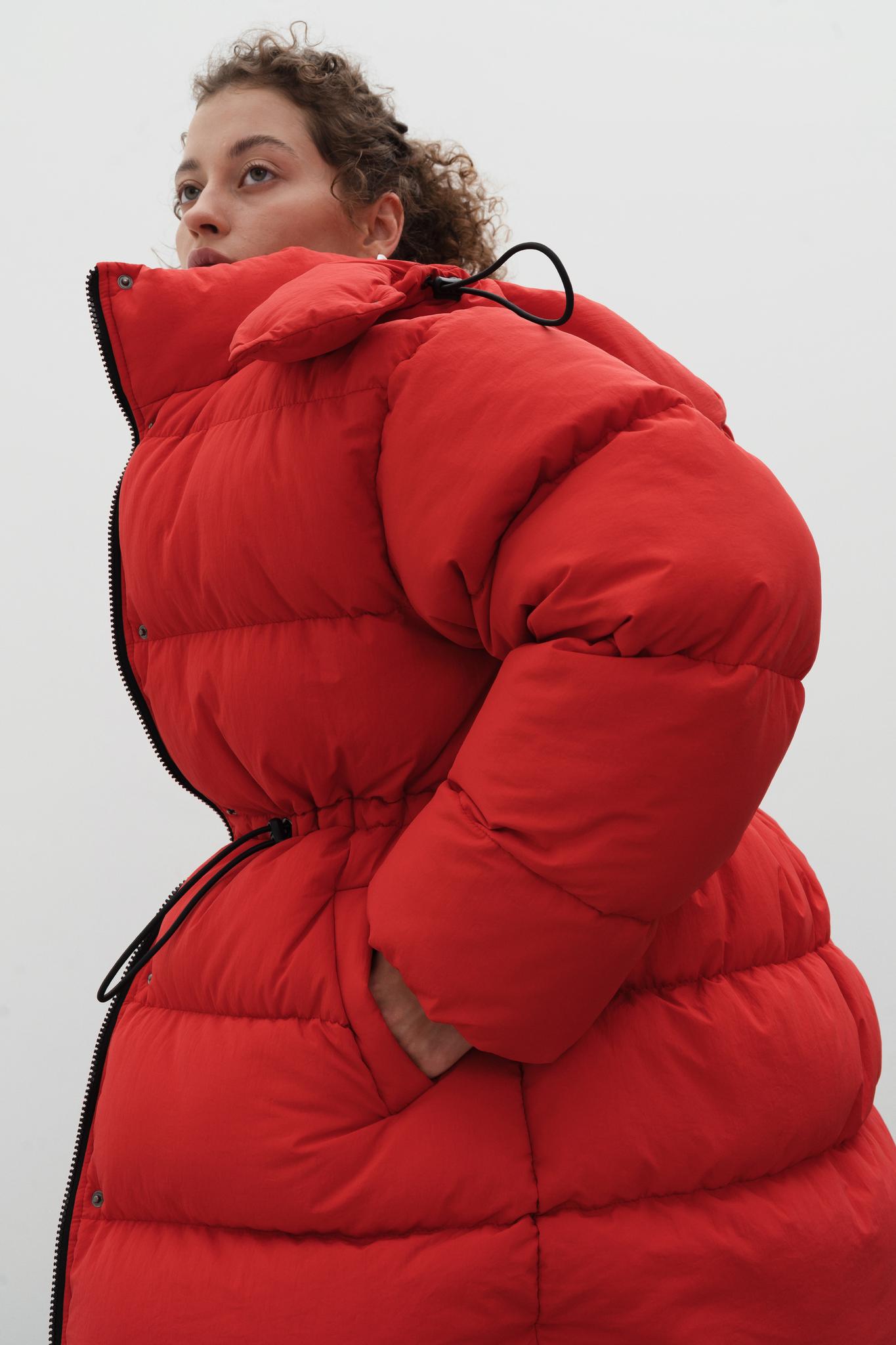 Удлиненный стеганый пуховик oversize с защитой от влаги и ветра. Длинные рукава, высокий воротник и глубокие карманы. Ветрозащитная планка. Застегивается на молнию.  УХОД Ручная стирка при температуре не выше 30 градусов С Не отжимать в машине Разрешена щадящая химчистка Не...