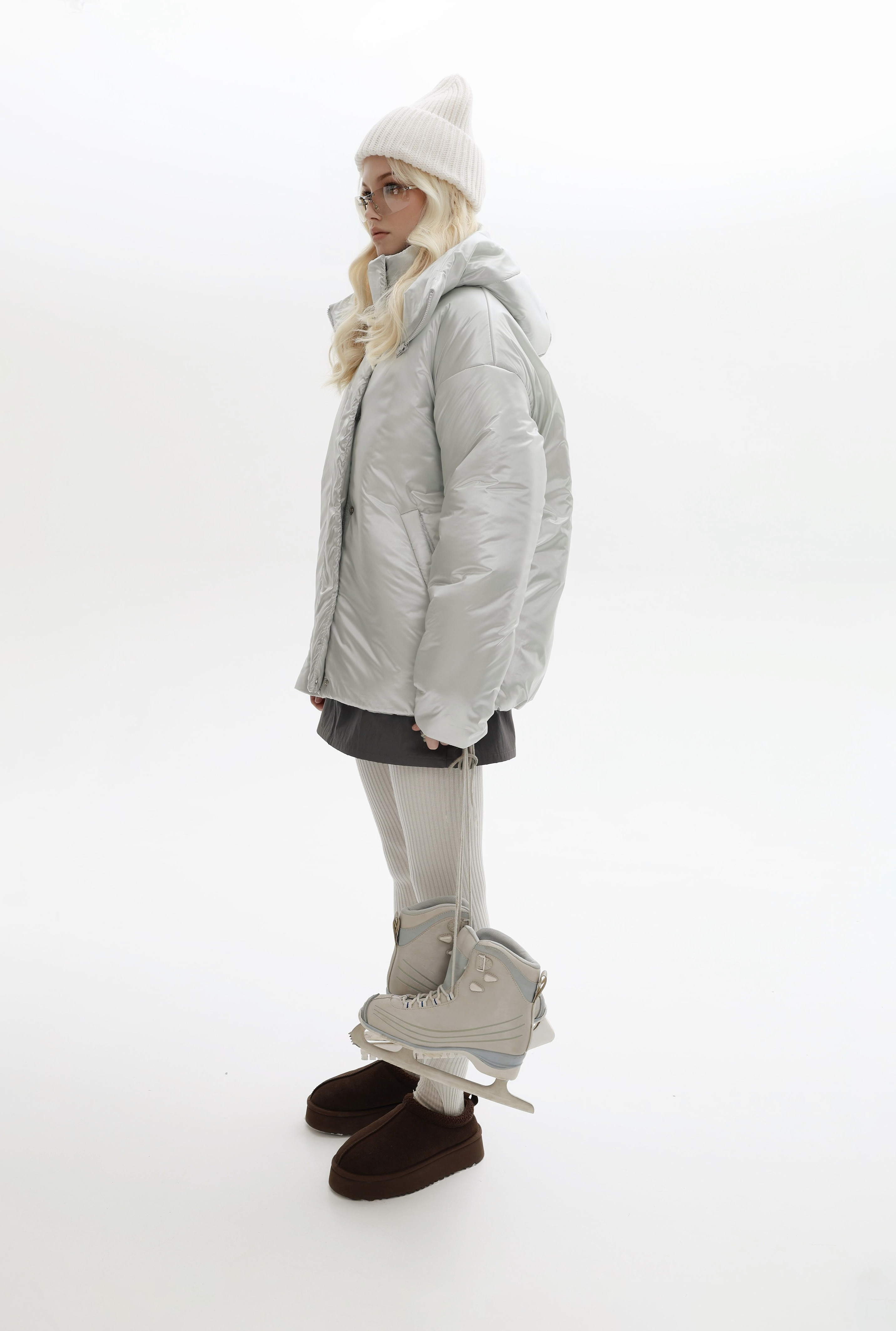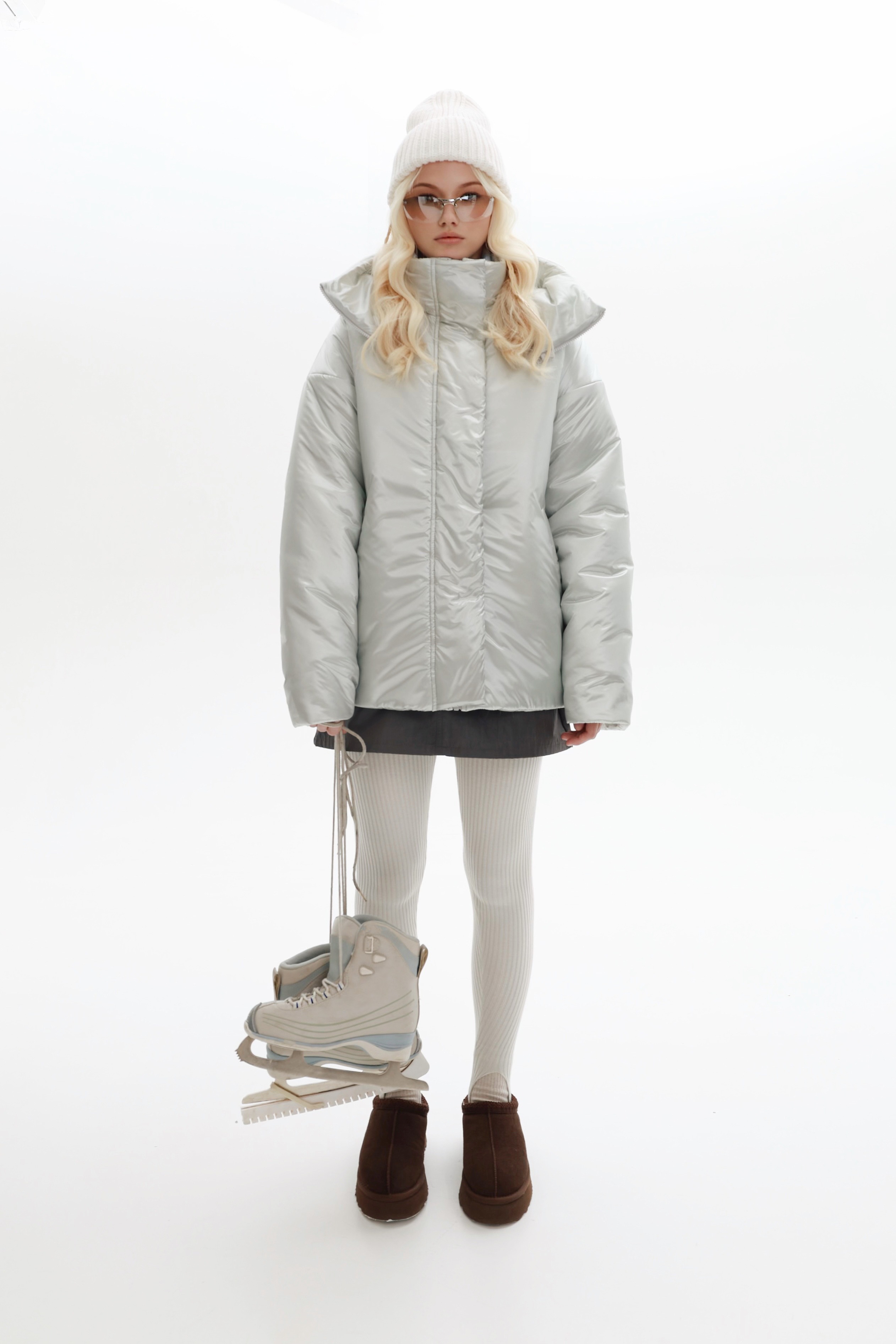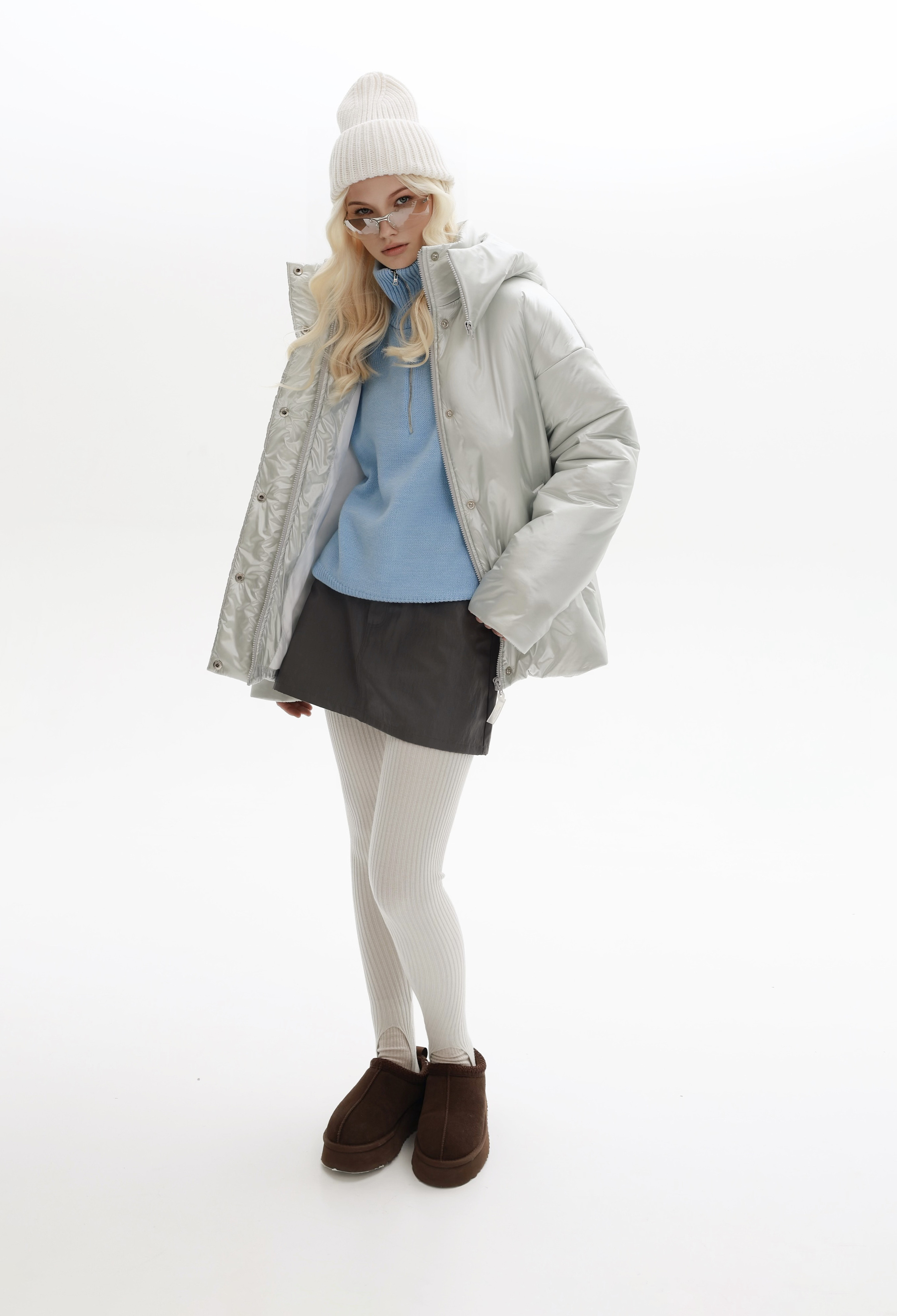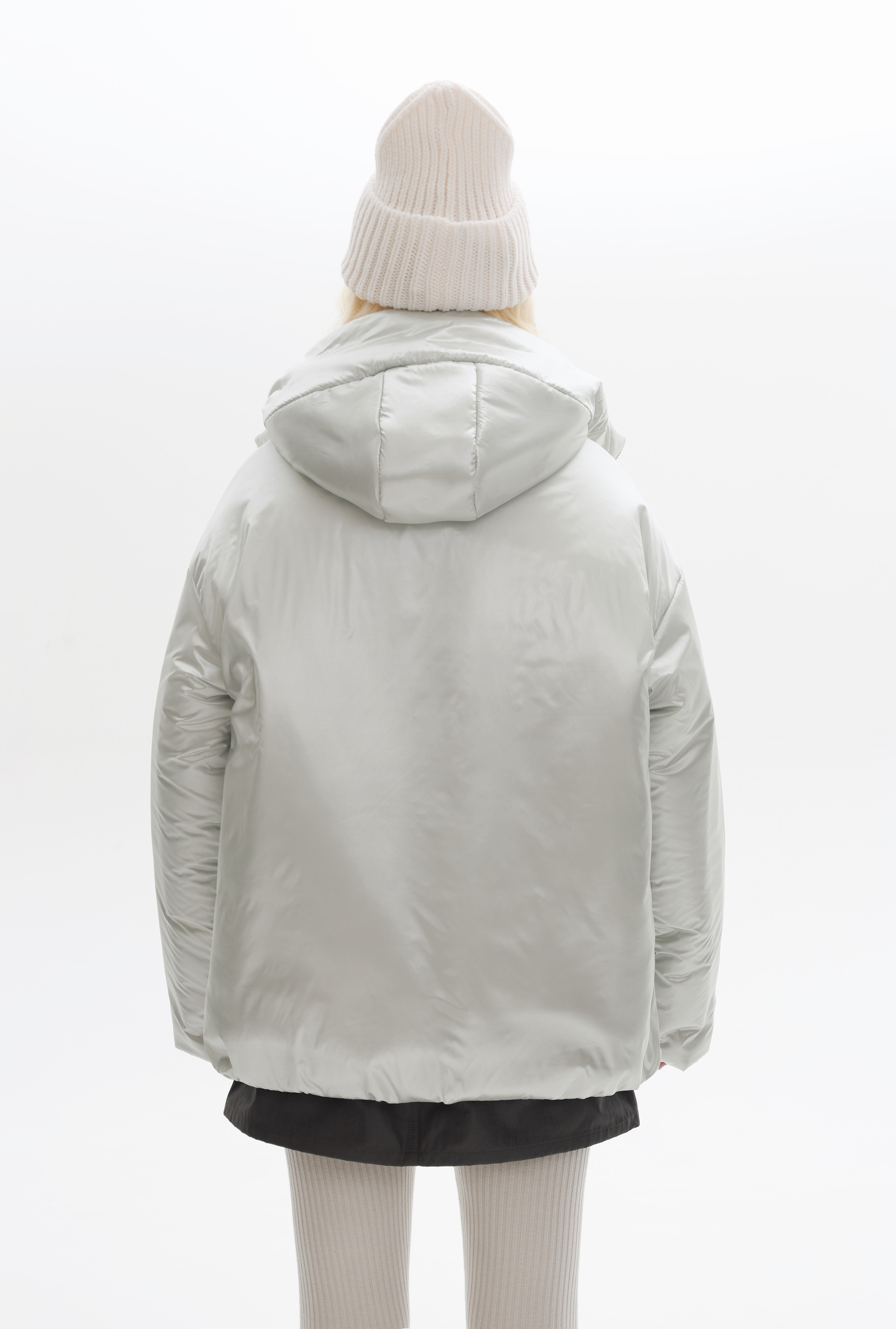 Базовый короткий пуховик oversize кроя с водоотталкивающей мембраной и защитой от ветра.