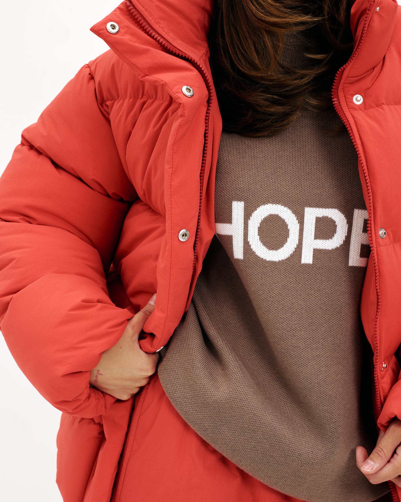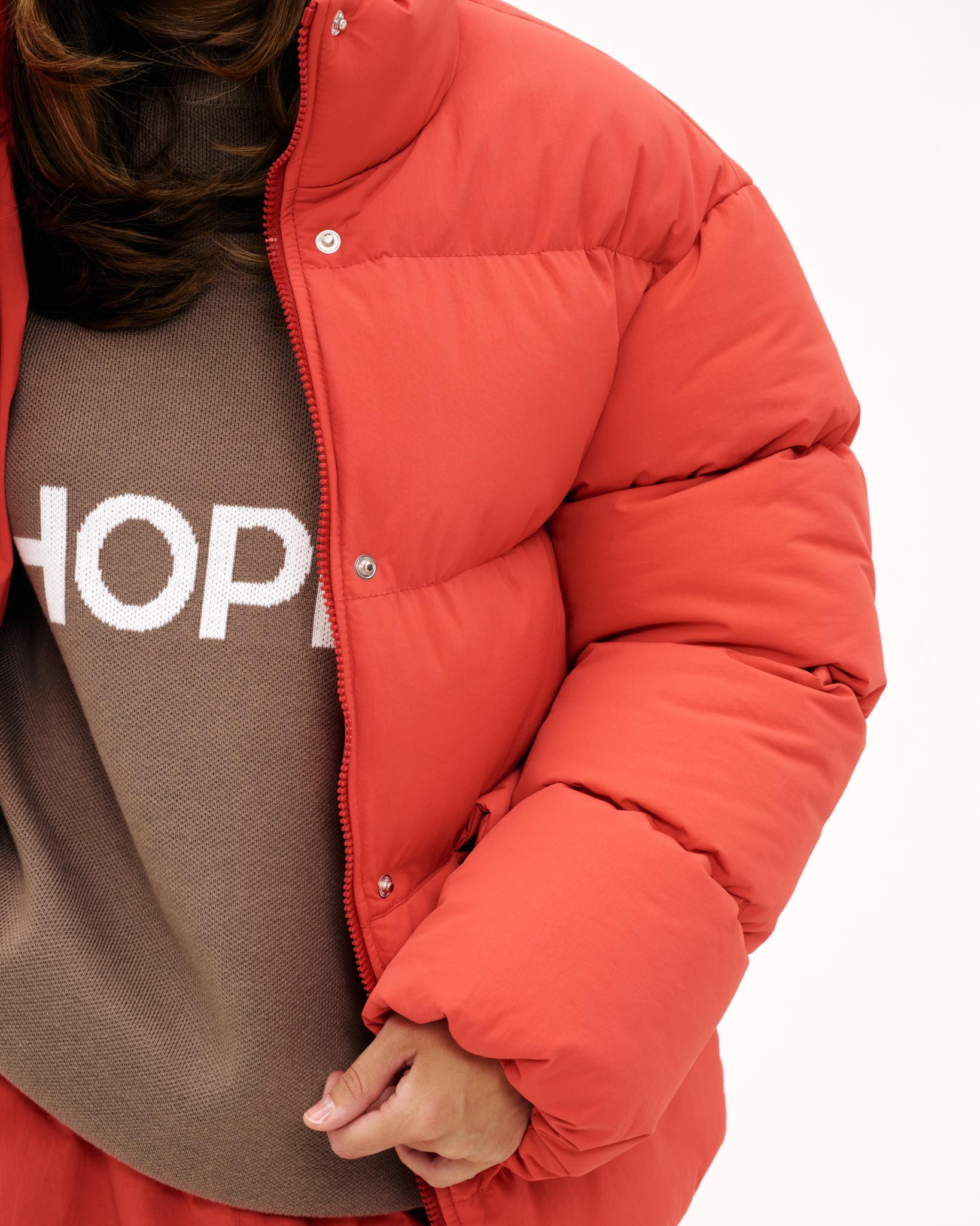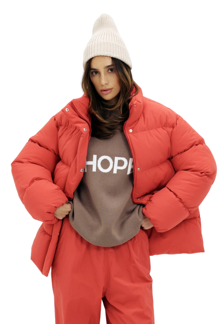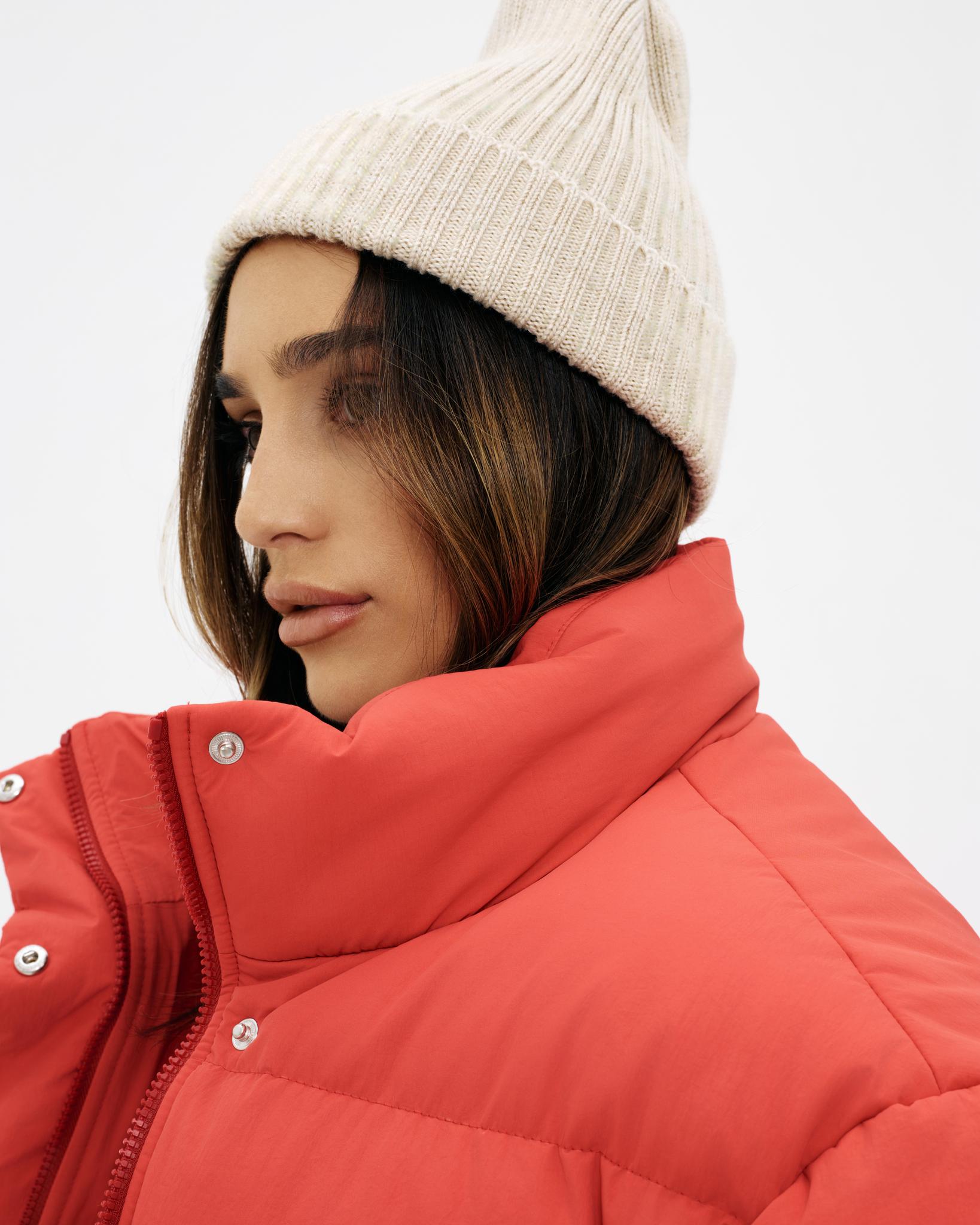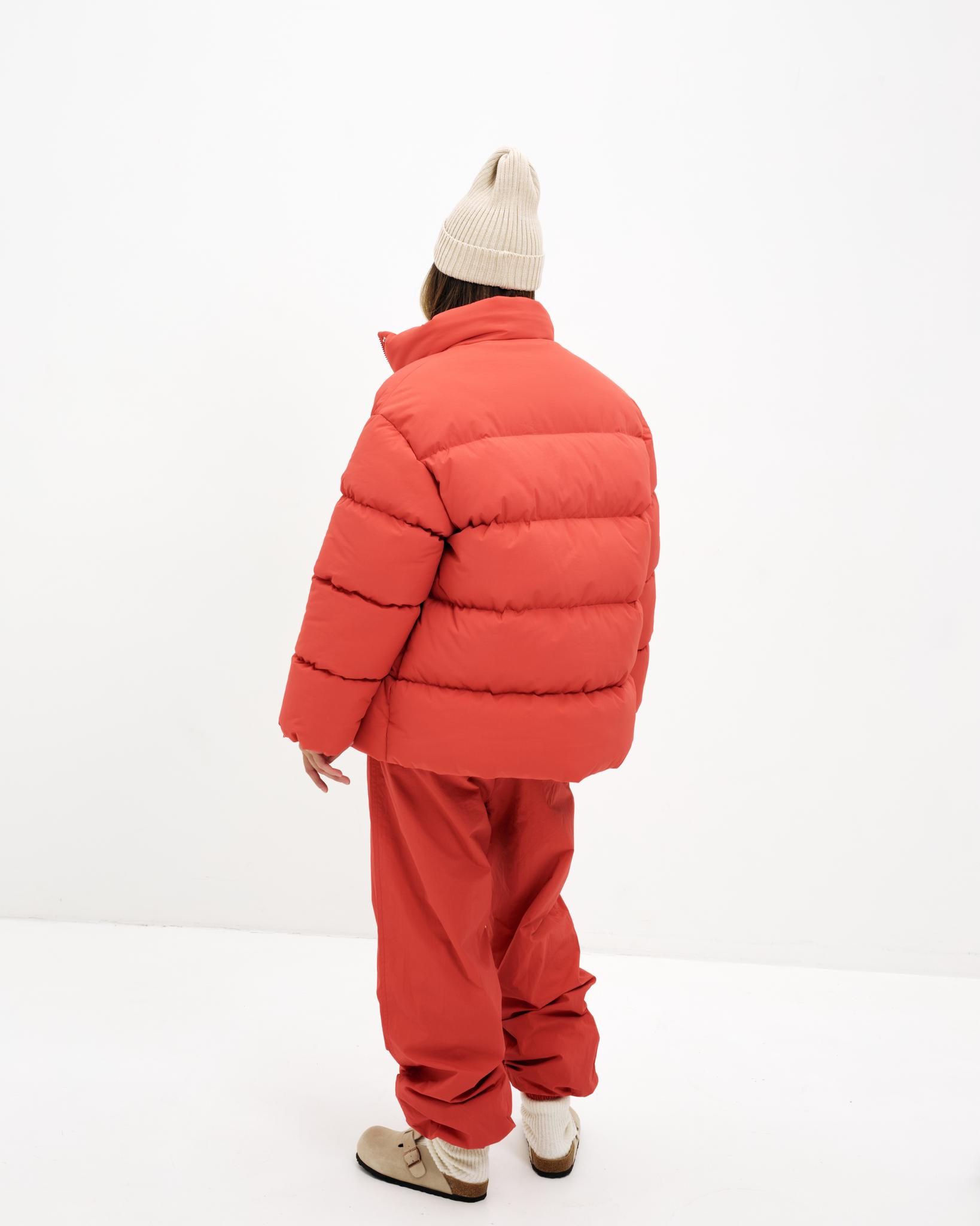 У пуховика невесомый, но в то же время тёплый утеплитель (комбо синтетического лебяжьего пуха и shelter).