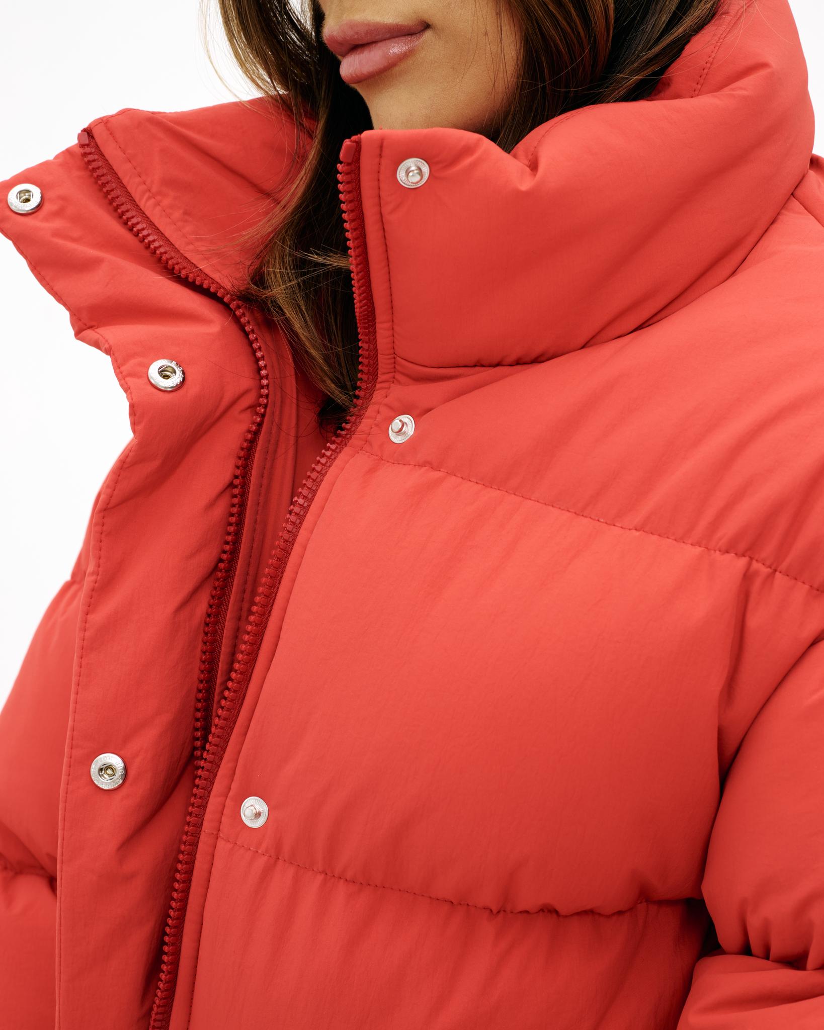 Удлиненный стеганый пуховик oversize с защитой от влаги и ветра. Длинные рукава, высокий воротник и глубокие карманы. Ветрозащитная планка. Застегивается на молнию.  УХОД Ручная стирка при температуре не выше 30 градусов С Не отжимать в машине Разрешена щадящая химчистка Не...