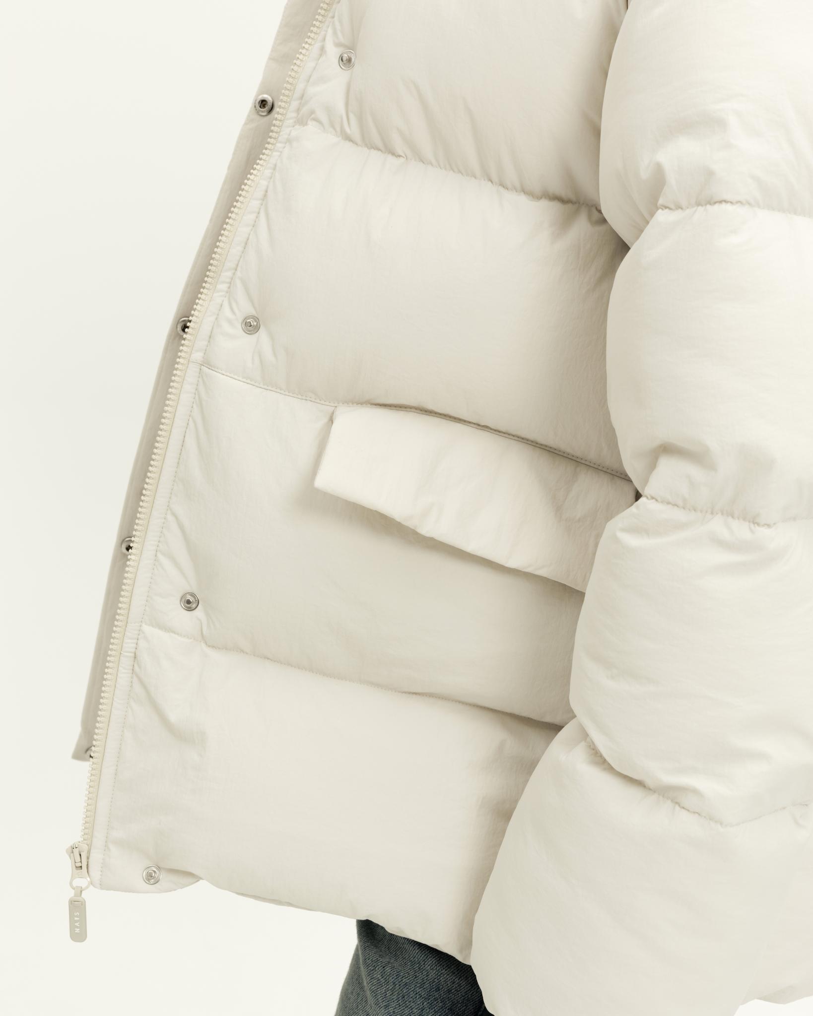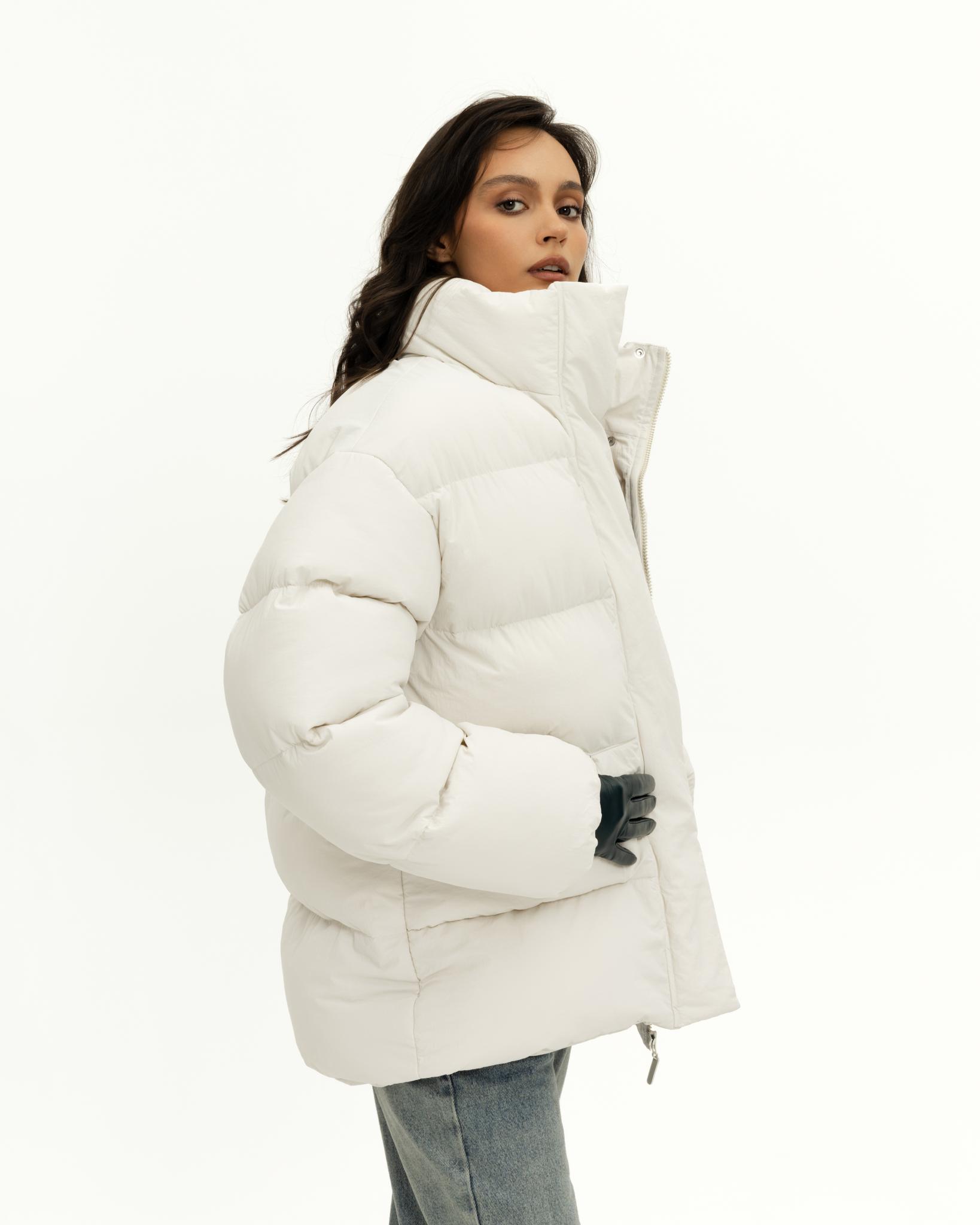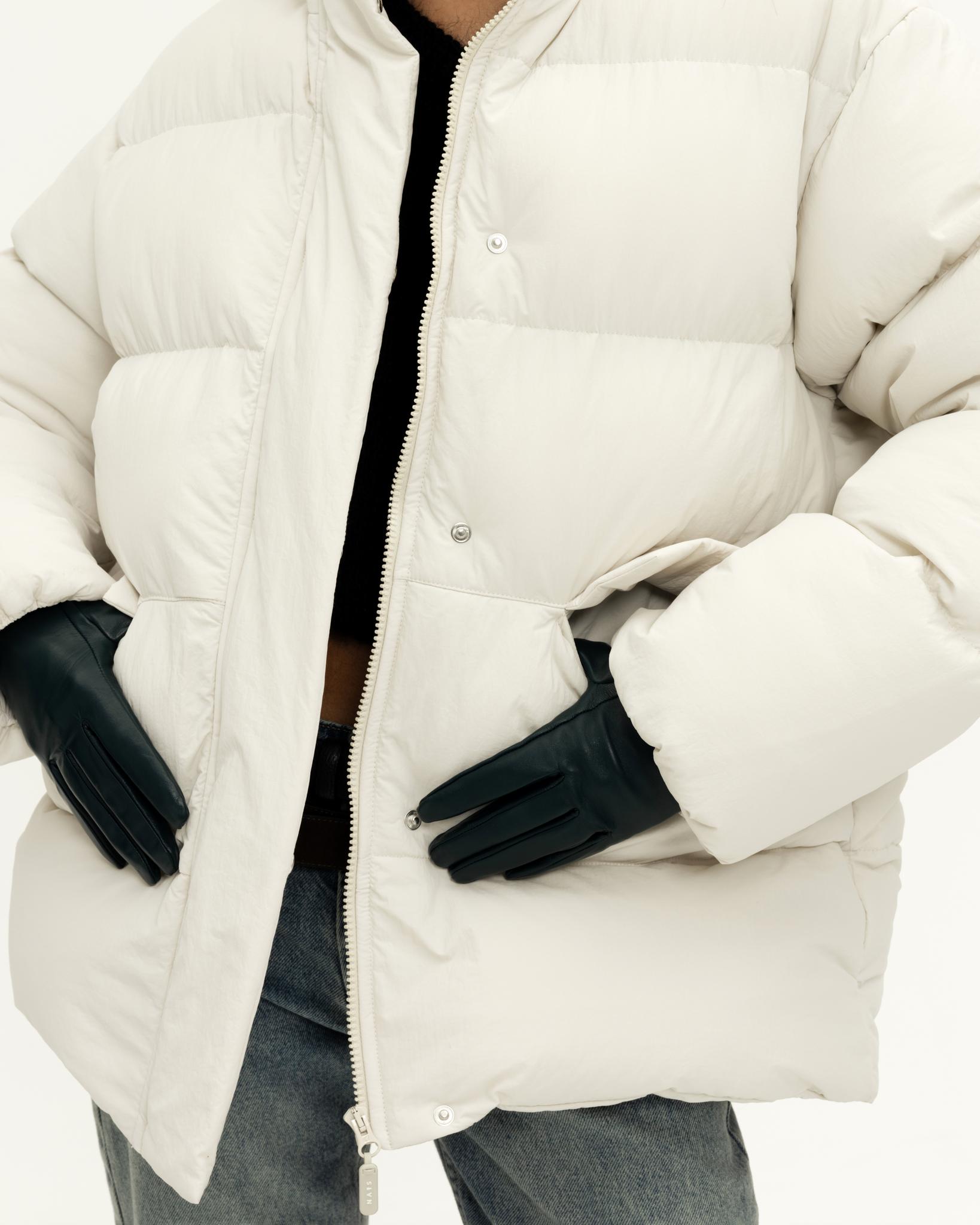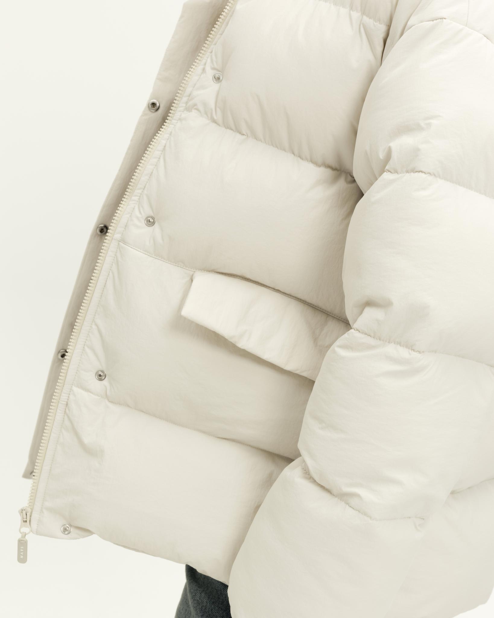 У пуховика невесомый, но в то же время тёплый утеплитель (комбо синтетического лебяжьего пуха и shelter).