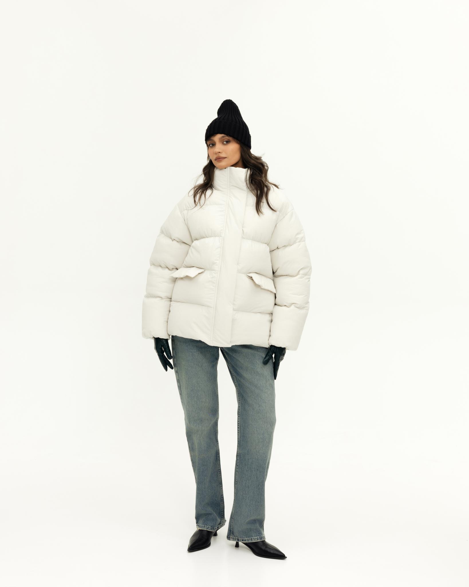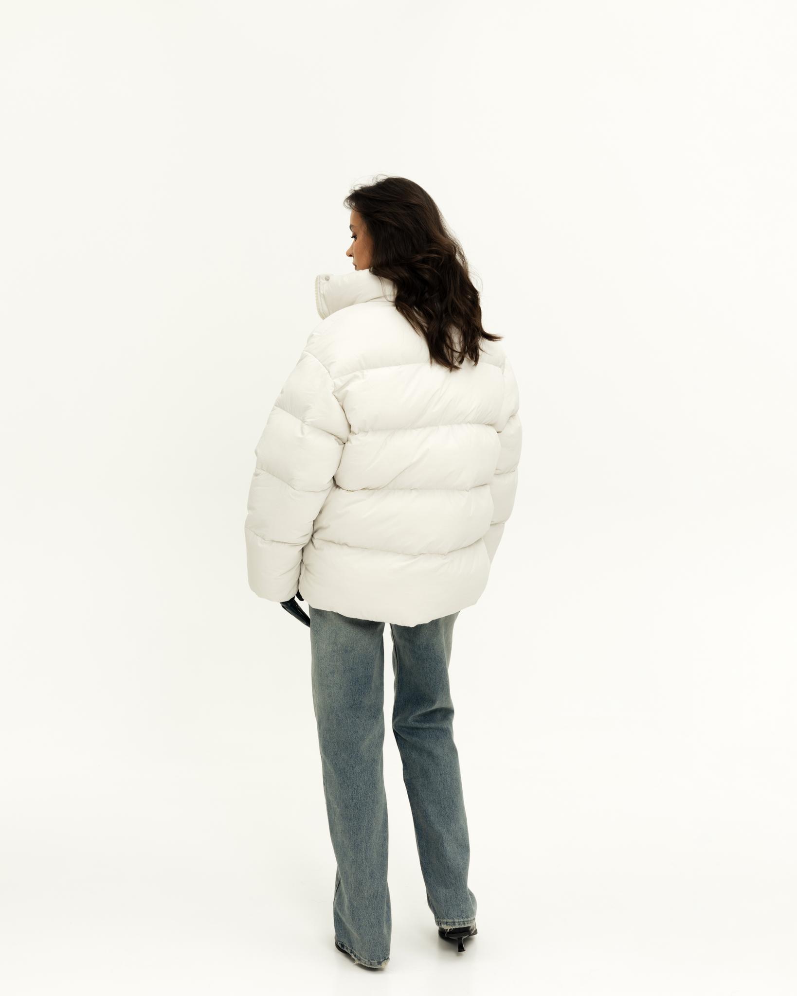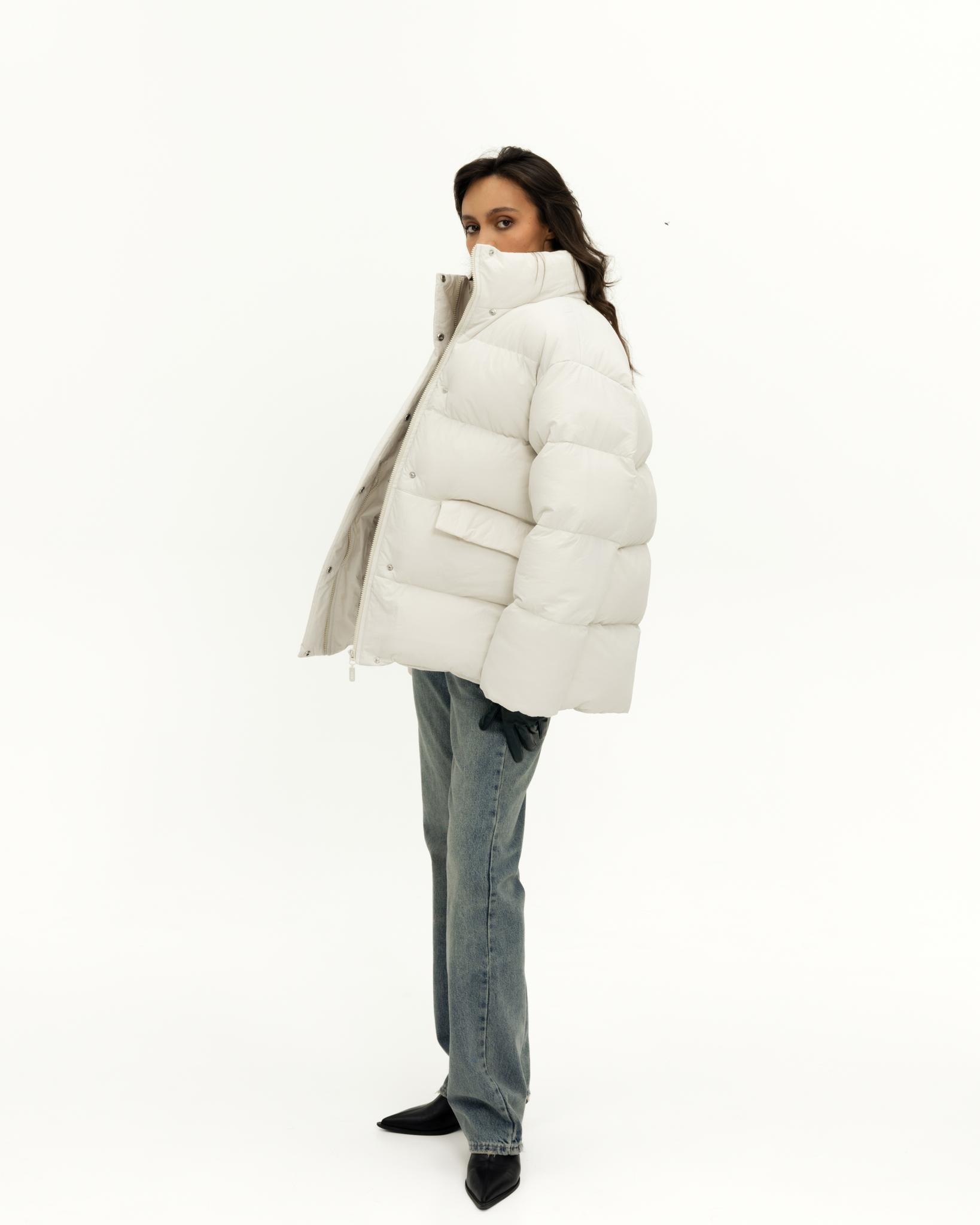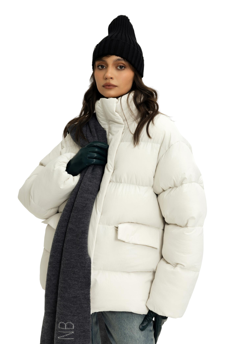У пуховика невесомый, но в то же время тёплый утеплитель (комбо синтетического лебяжьего пуха и shelter).