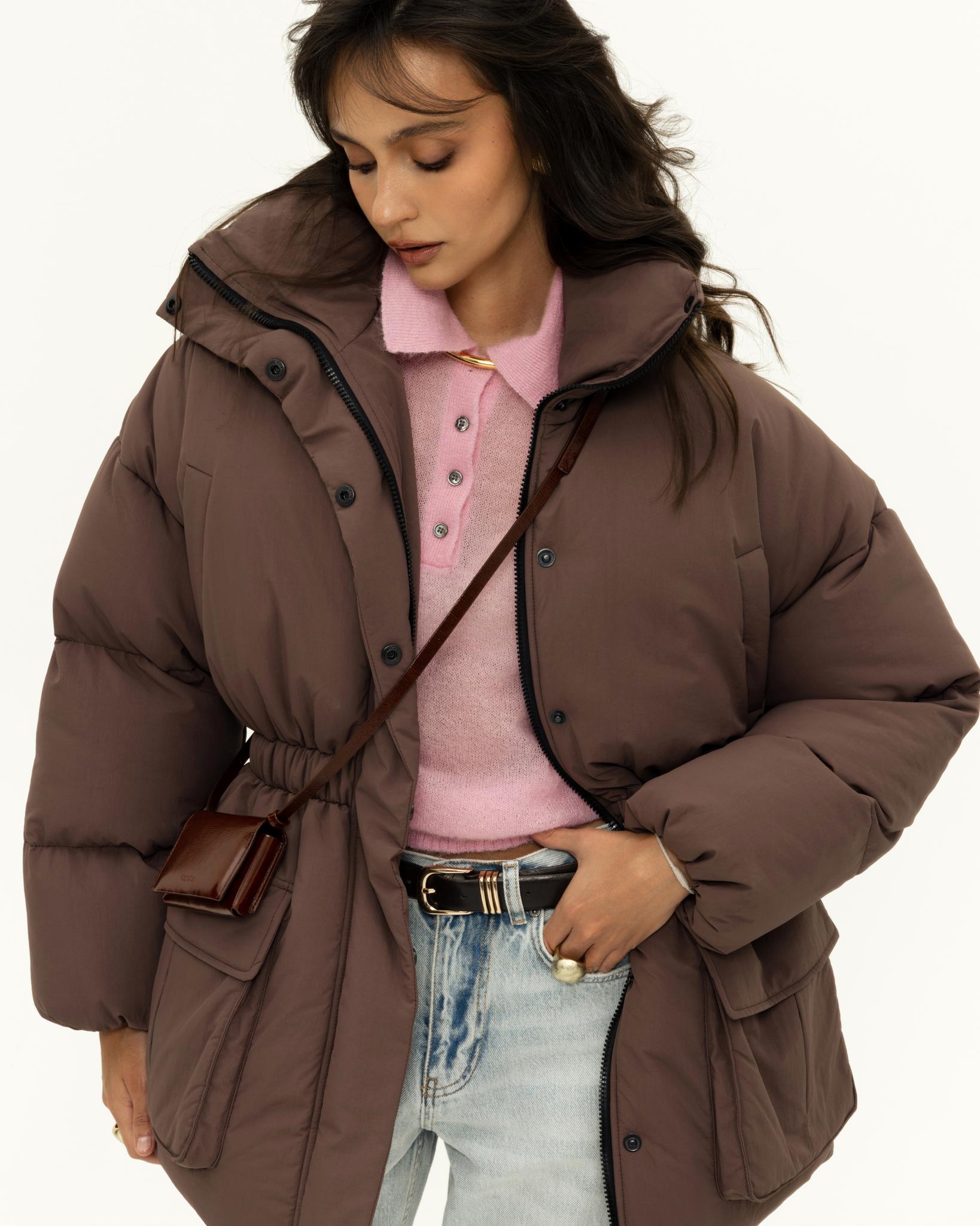 Пуховик короткий свободного кроя с поясом