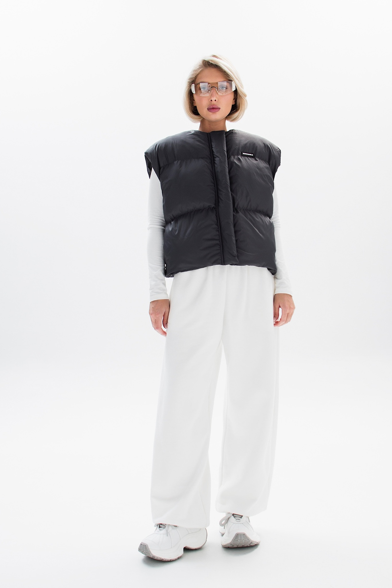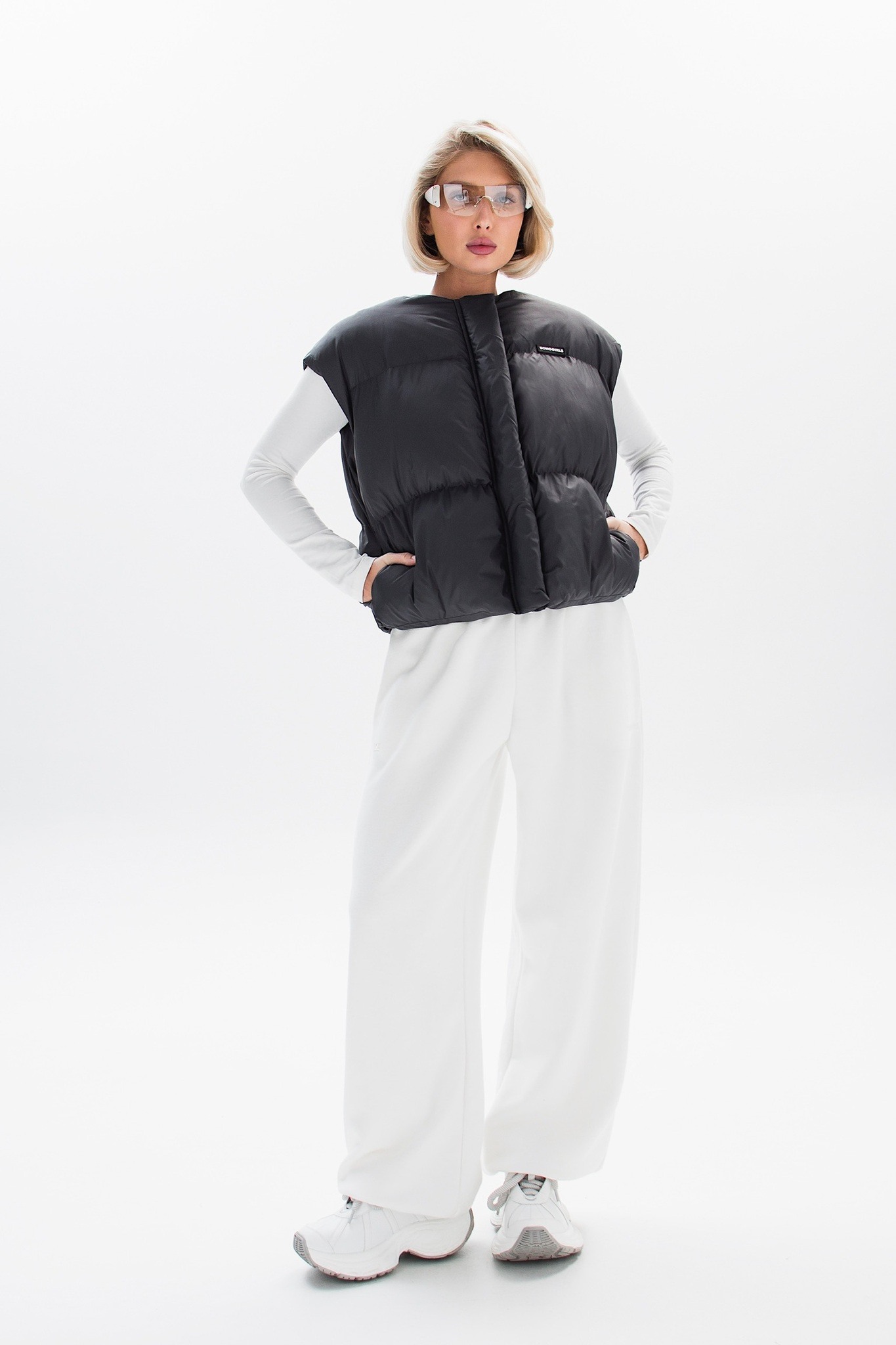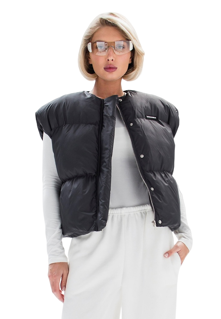 Жилет из курточной ткани с фирменным логотипом SOHOGIRLS на груди - стильный и практичный выбор для холодного сезона. Специальное покрытие материала делает жилет особенно прочным и устойчивым к износу, гарантируя долговечность.