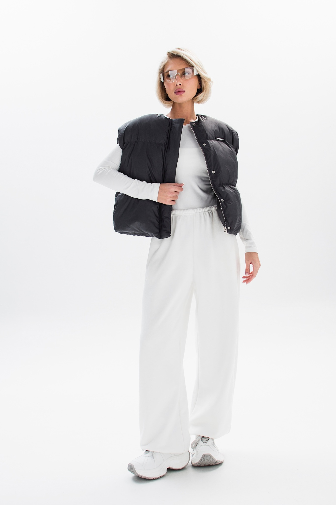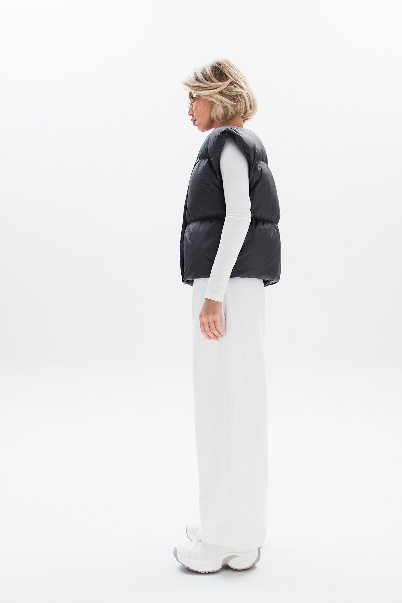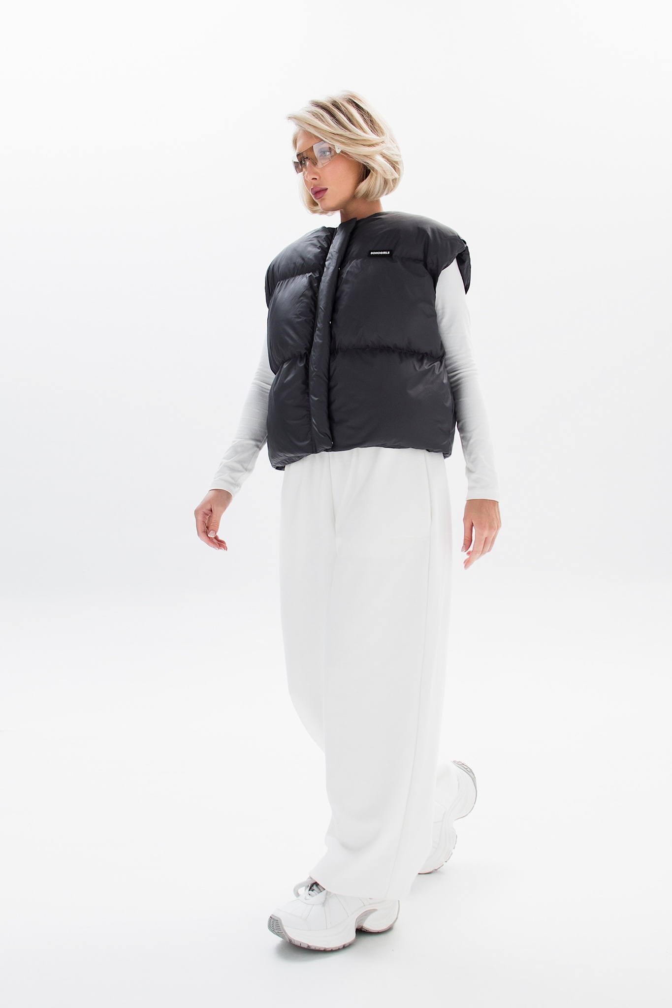 Жилет из курточной ткани с фирменным логотипом SOHOGIRLS на груди - стильный и практичный выбор для холодного сезона. Специальное покрытие материала делает жилет особенно прочным и устойчивым к износу, гарантируя долговечность.