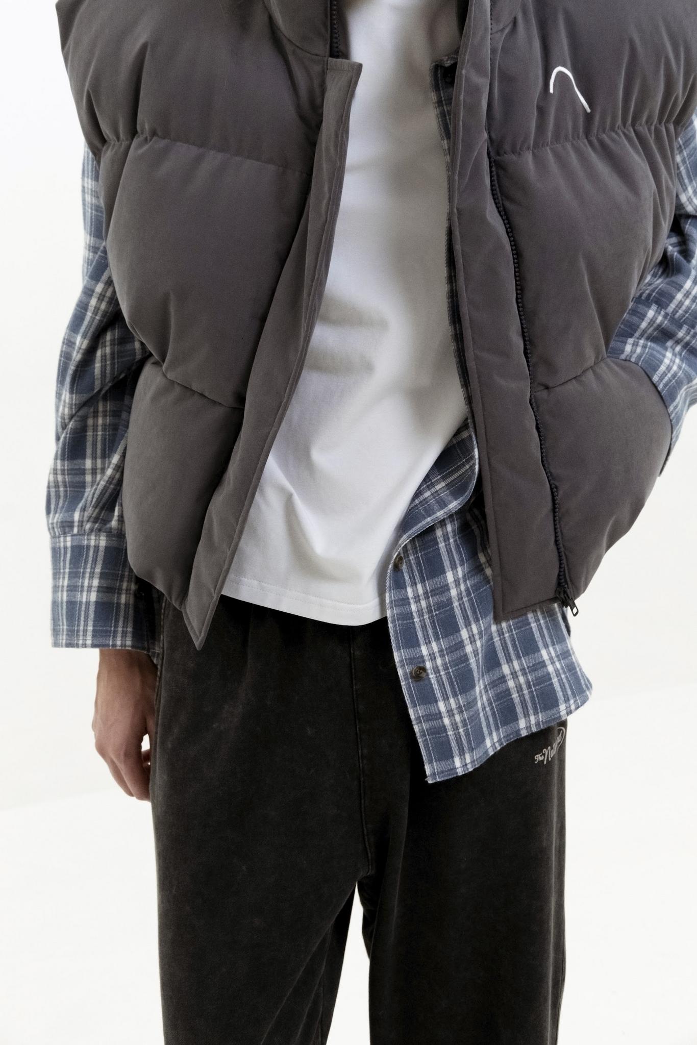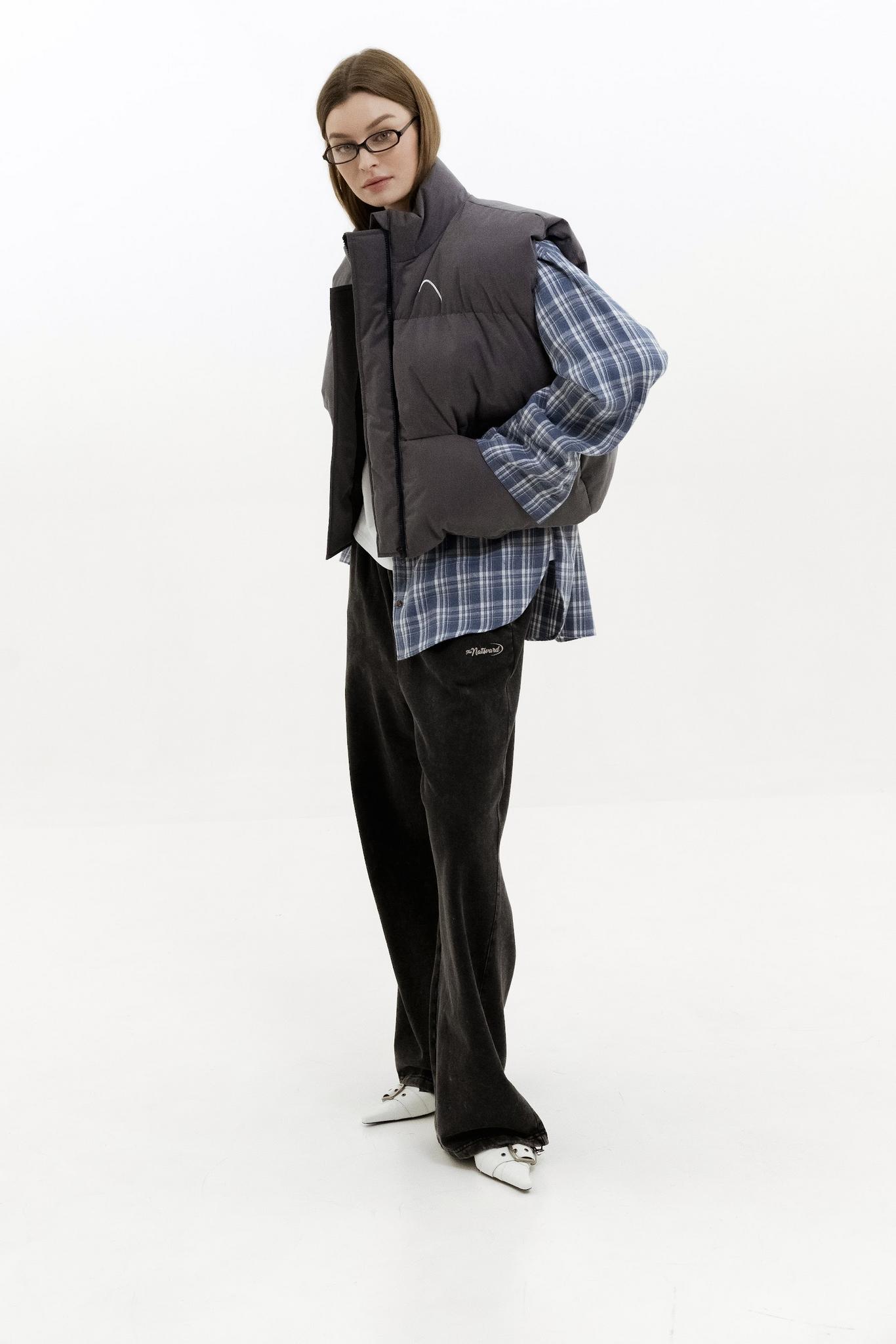 Укороченный жилет на молнии с карманами и магнитными кнопками, cнизу затягивается на резинку.