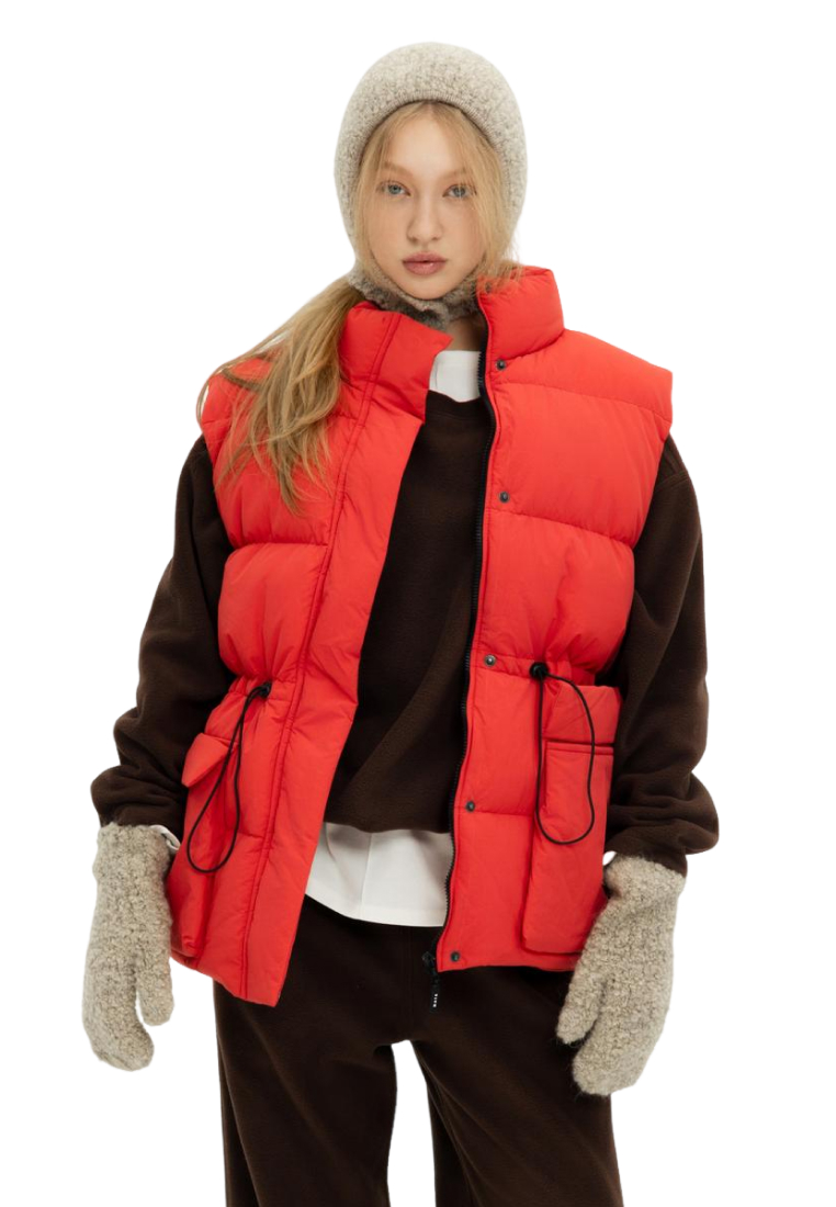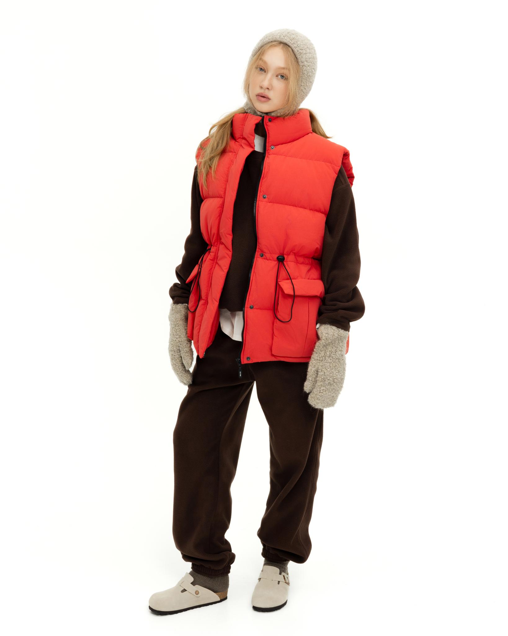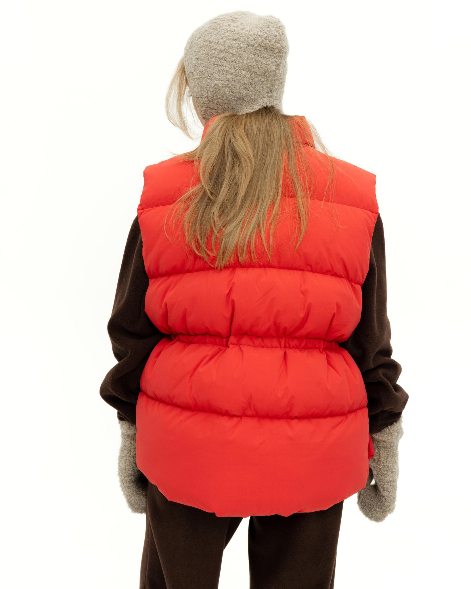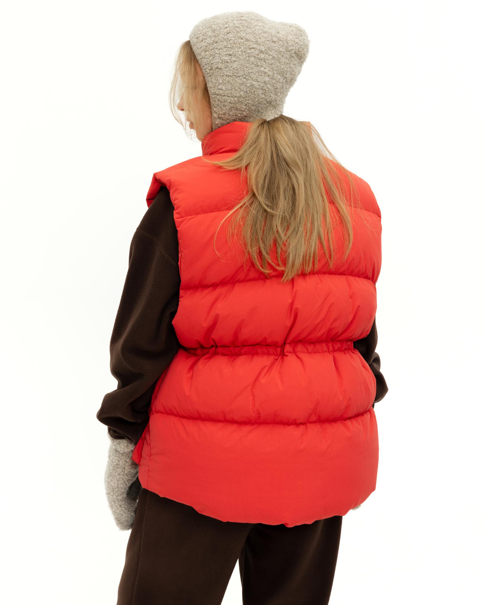 Невесомый и теплый жилет с воротом стойкой и удлиненной спинкой защитит вас от холодного ветра, а глубокая пройма позволит надеть под жилет обьемный свитер или худи.