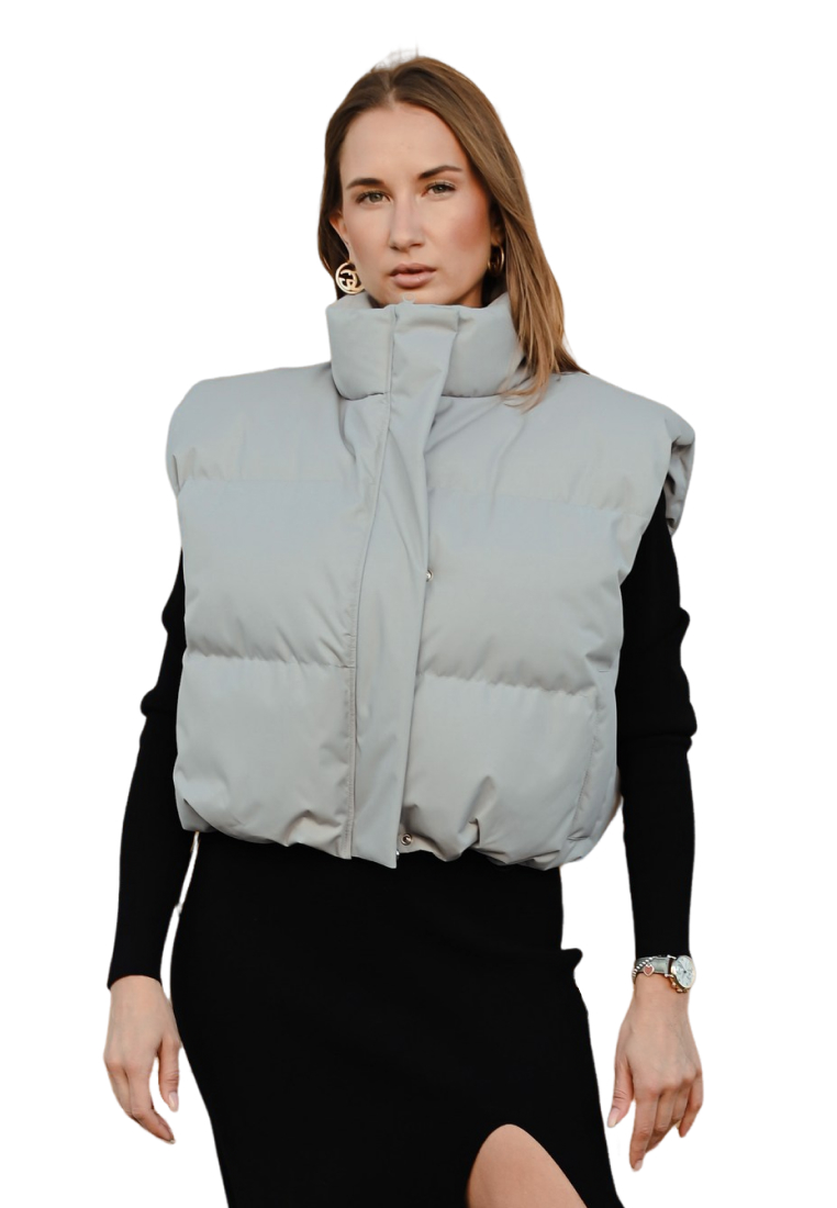 Жилет в едином размере с акцентными плечами, понизу утяжка.