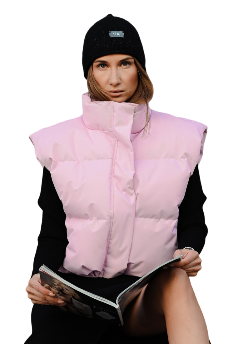 Жилет в едином размере с акцентными плечами, понизу утяжка.