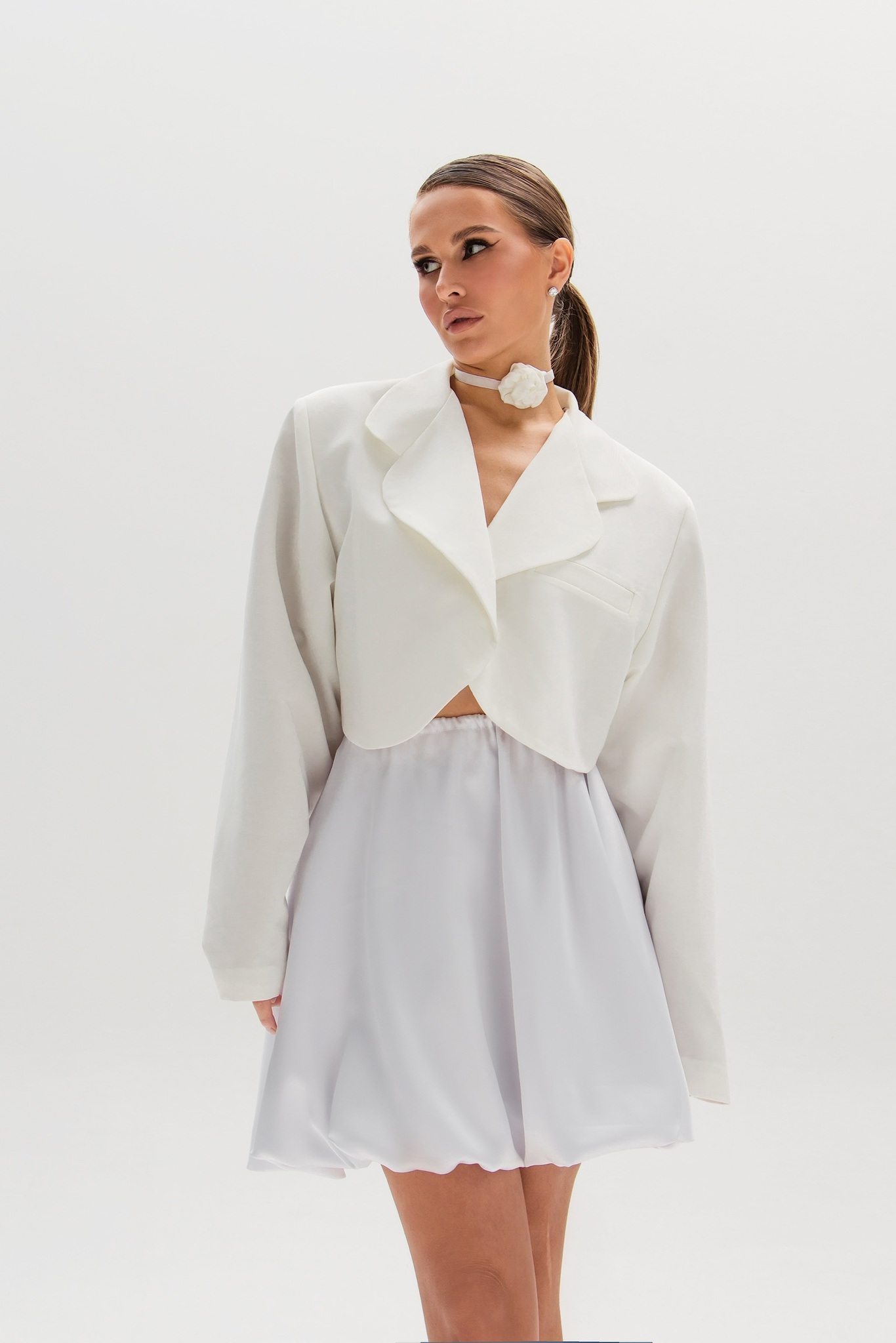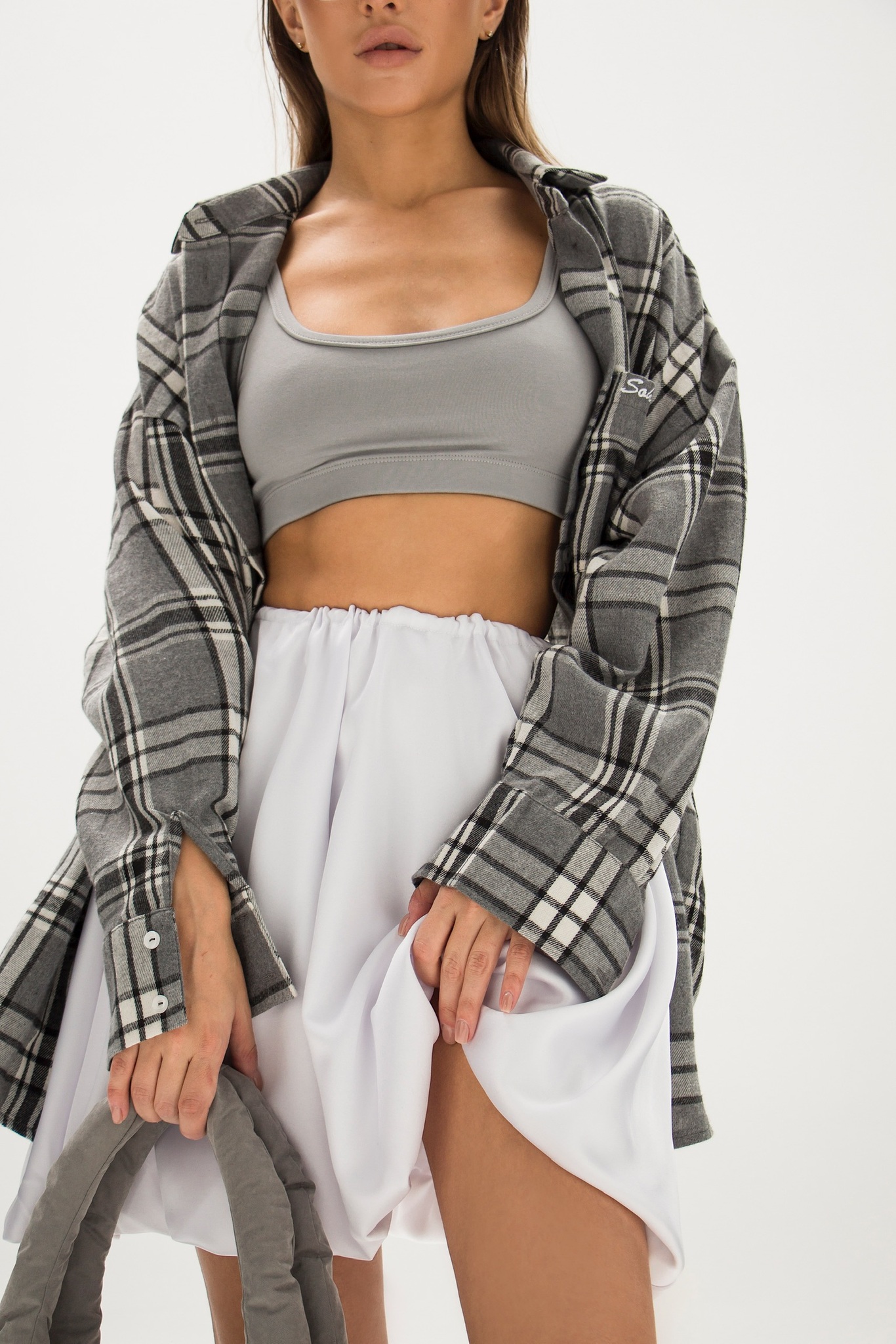 Юбка из мягкого атласа с подкладом. В верхней части юбки расположен фиксатор, за счет которого можно регулировать обхват талии.