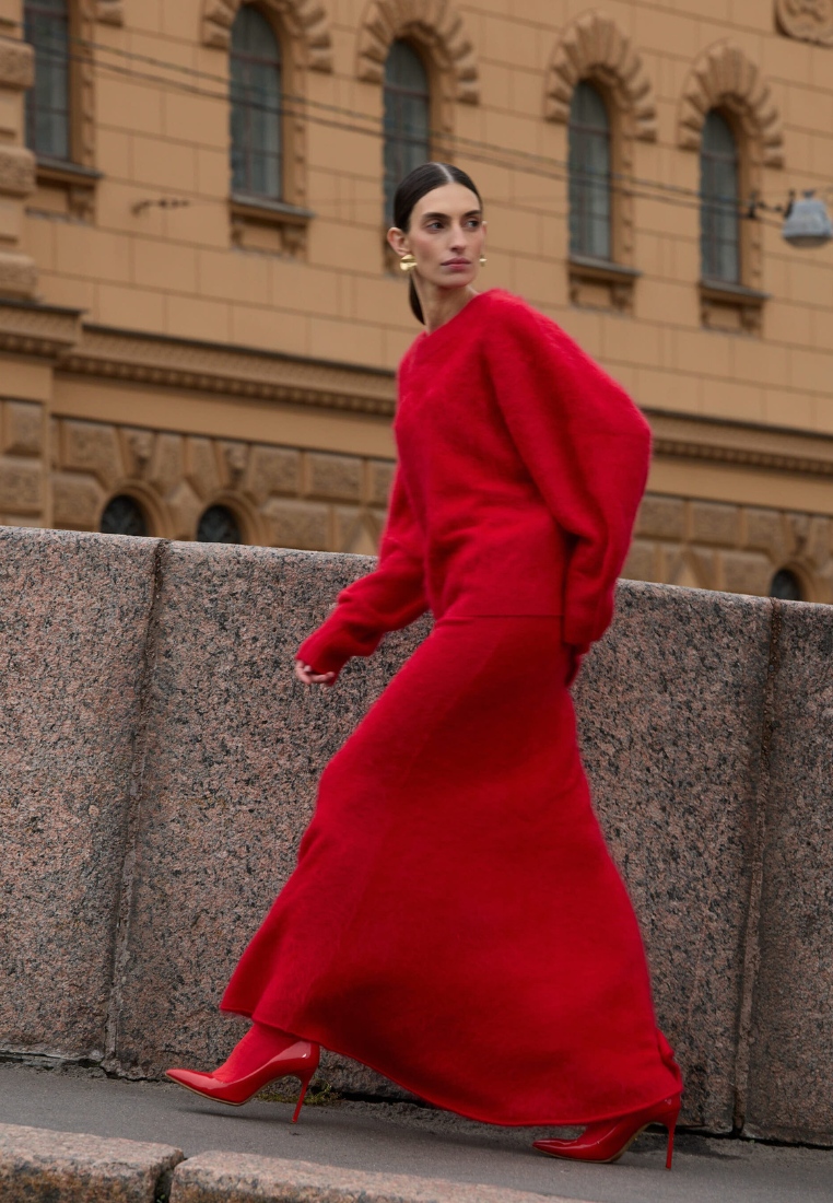 Юбка из пушистого 100% органического кашемира, обволакивающая нежностью.