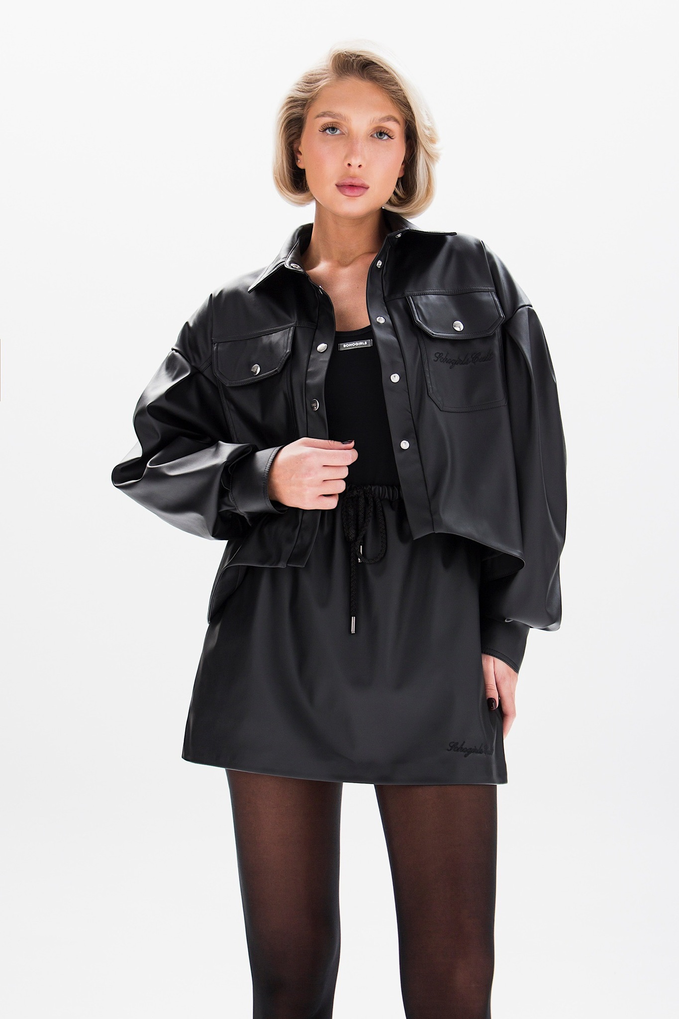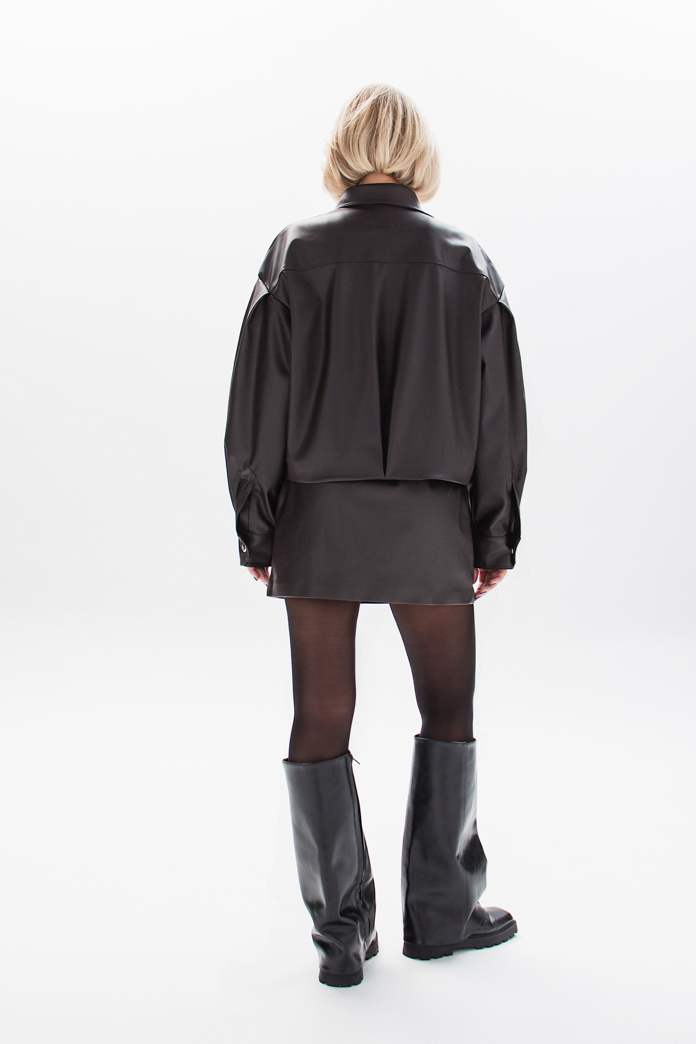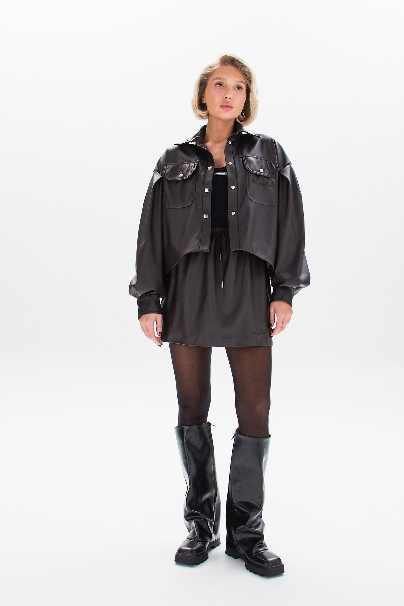 Юбка NYXX из мягкой экожи на мягкой резинке со шнурком для регулировки и вышивкой снизу.