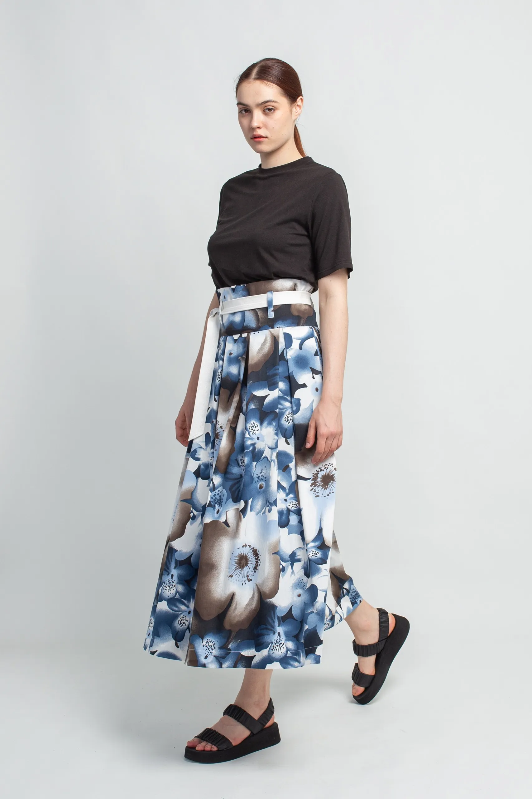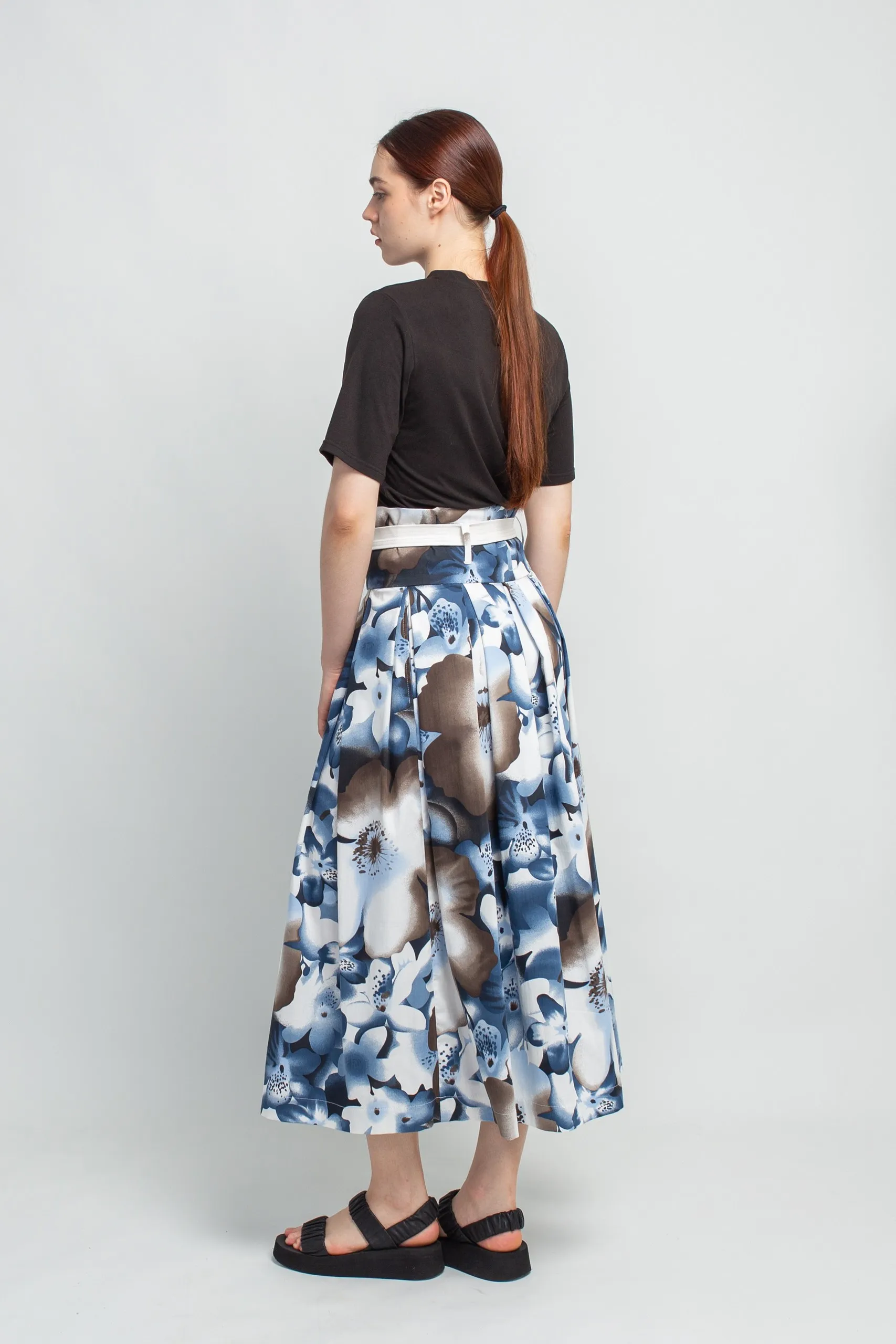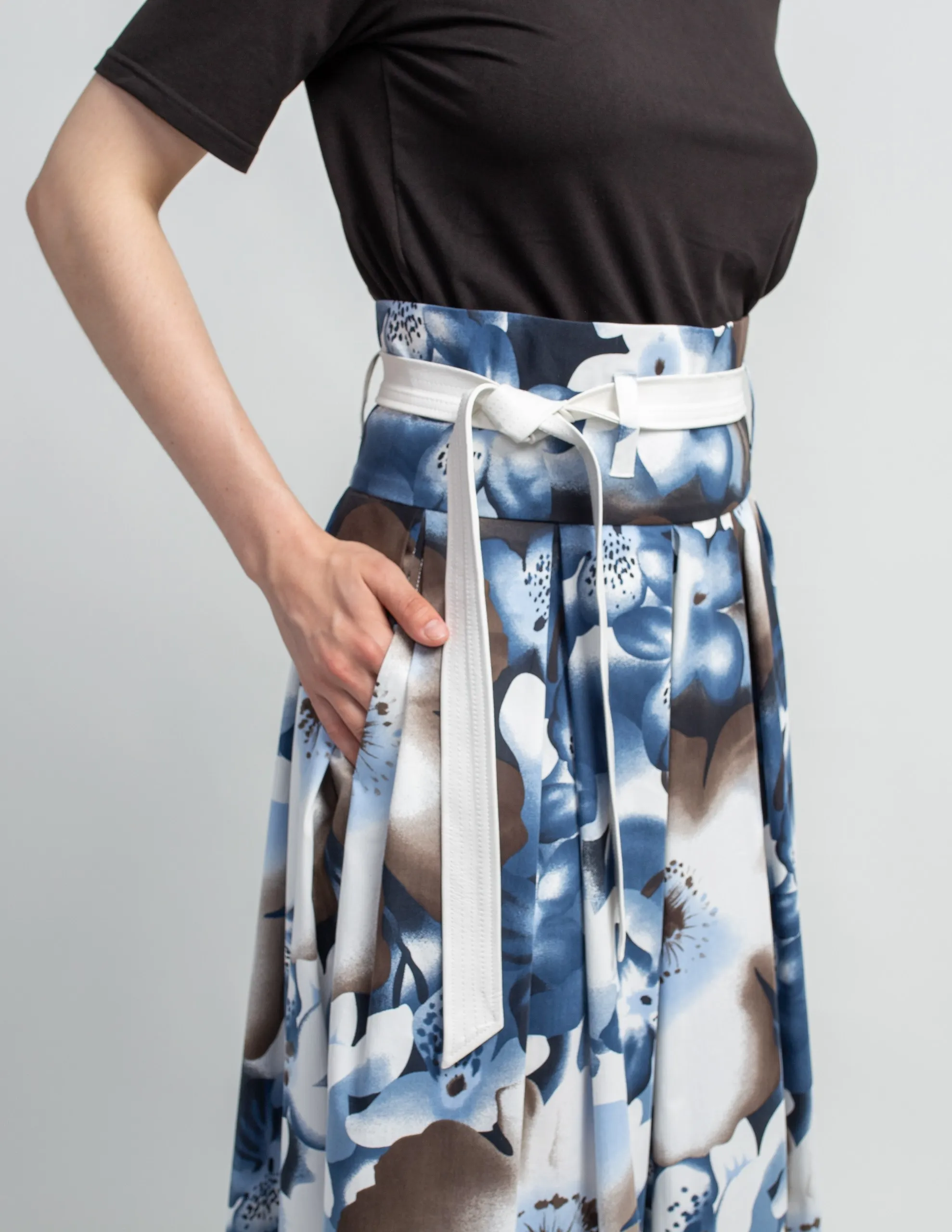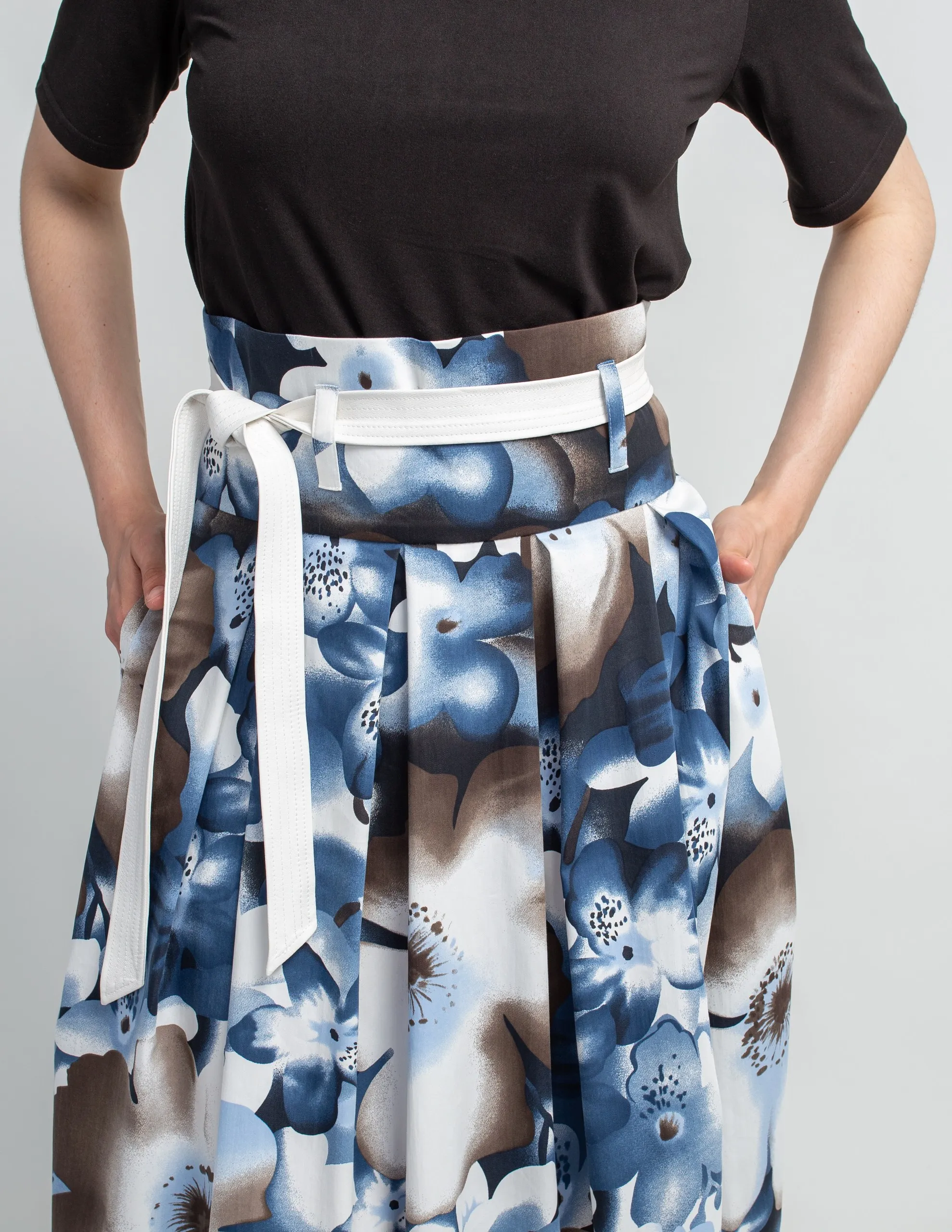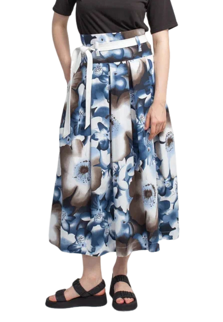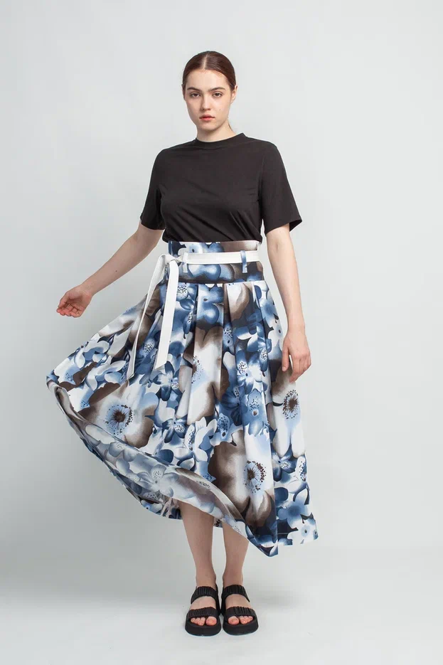 Юбка с бантовыми складками выполнена в элегантном А-силуэте длиной миди. Широкий пояс акцентирует талию, создавая женственный образ. Бантовые складки от талии придают юбке воздушность и объем, формируя утонченный силуэт. Изготовлена из итальянского плотного хлопка с акварельным цветочным принтом, который отлично держит форму. Этот трендовый вариант юбки вдохновит вас на создание разнообразных стильных образов, подходящих как для мероприятий, так и для повседневной носки.