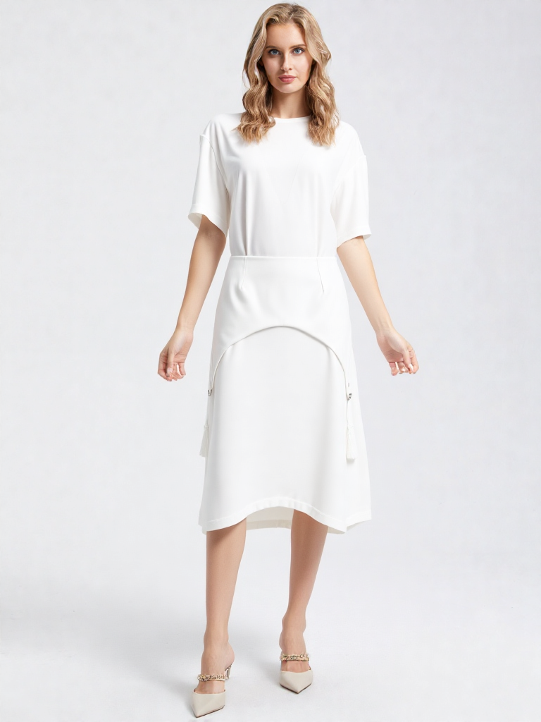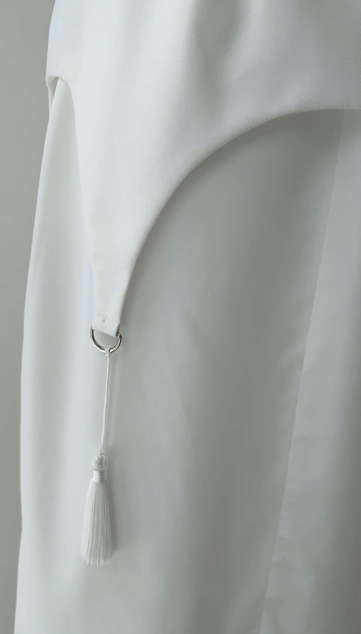 Юбка-мини на подкладе из трендовой ткани - белого твида «Шанель». Модель юбки без разрезов, с карманами в боковых швах, застежка на молнию 18 см по задней половинке. По низу изделия выполнена бахрома. Уход за изделием: Деликатная машинная стирка при 30° с жидким средством для деликатных...