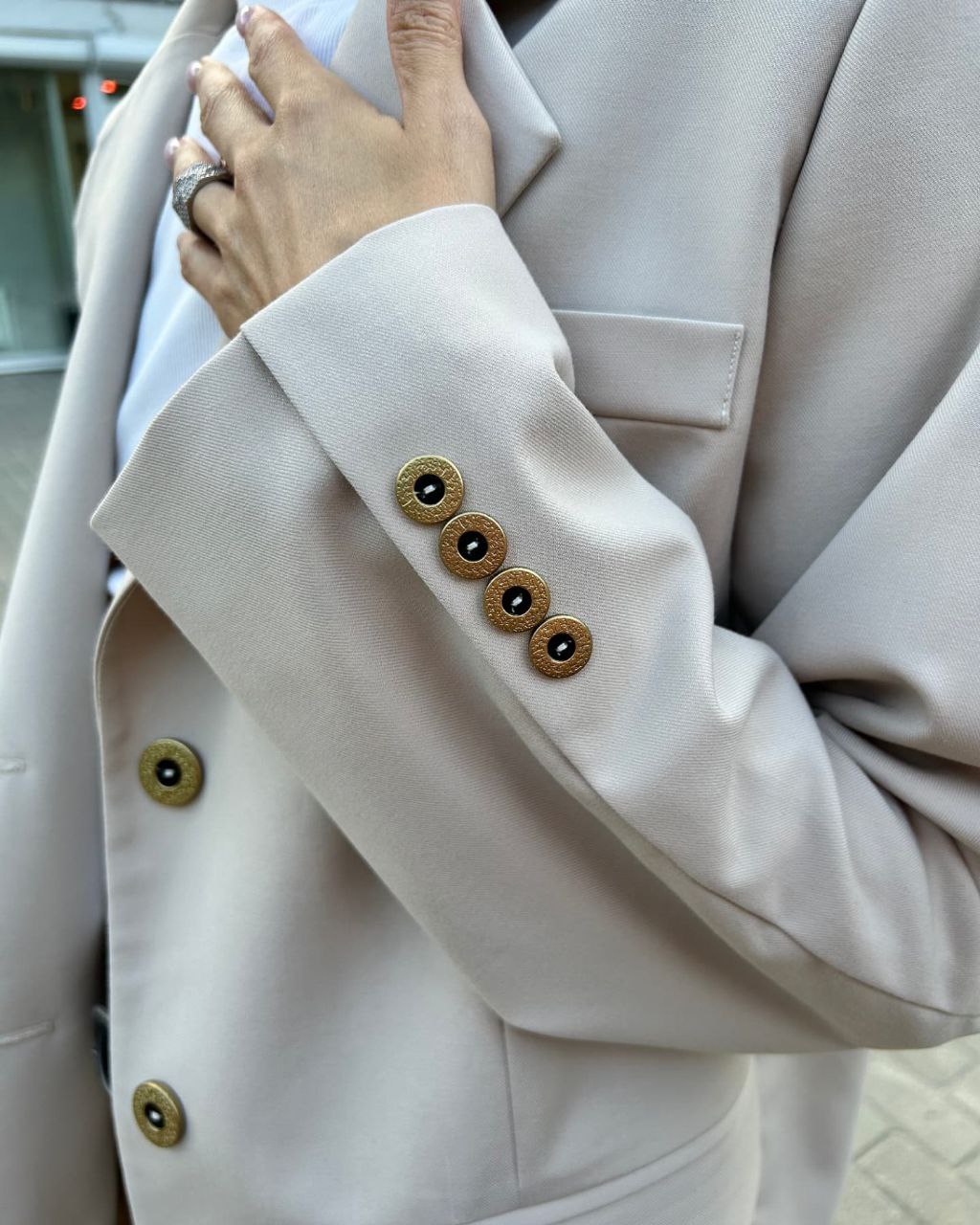- За идеальную посадку и комфорт отвечает разрез на спине и рукав полуспортивного кроя