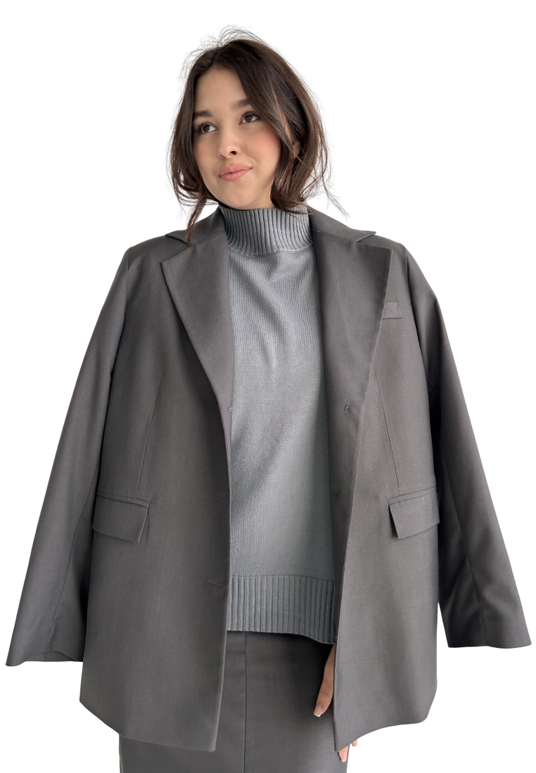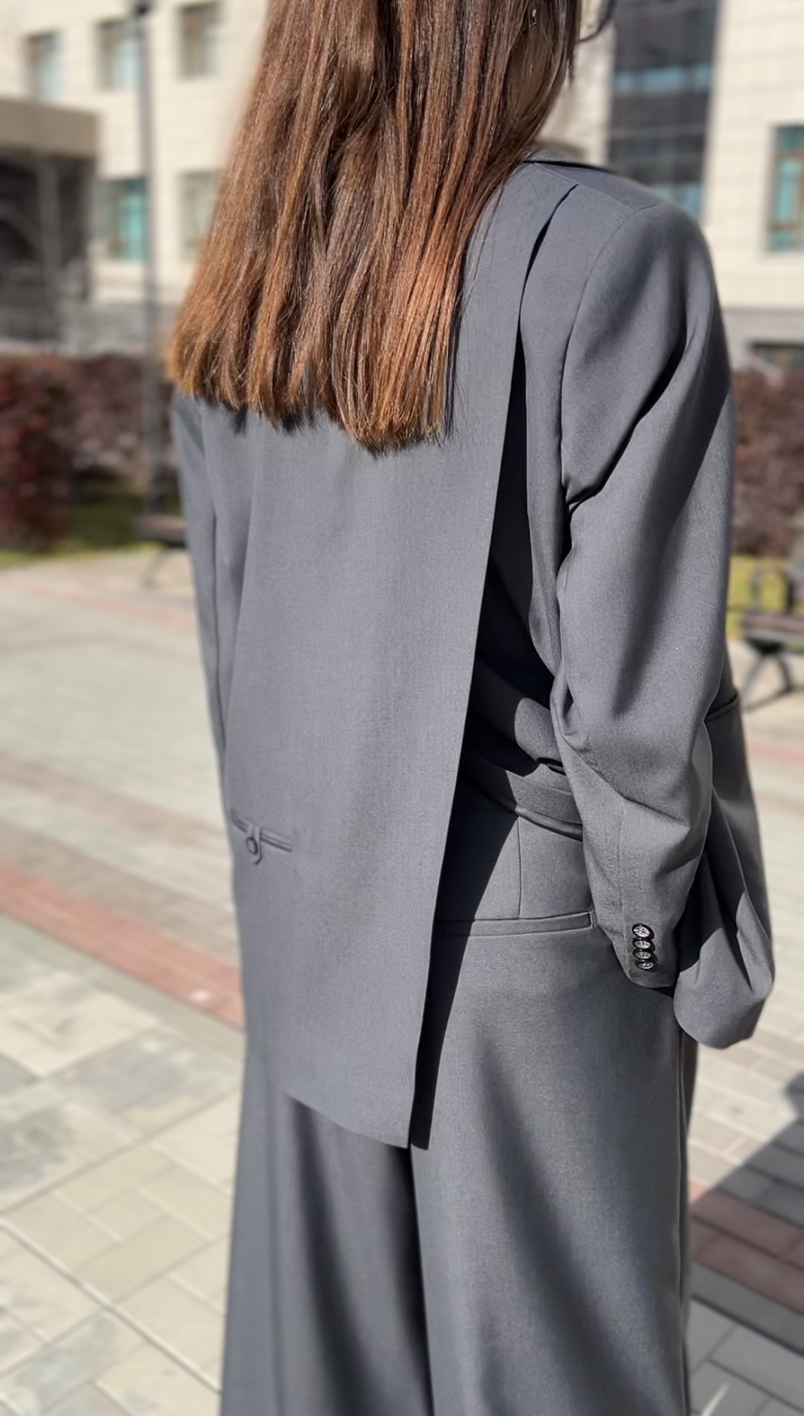 - За идеальную посадку и комфорт отвечает разрез на спине и рукав полуспортивного кроя