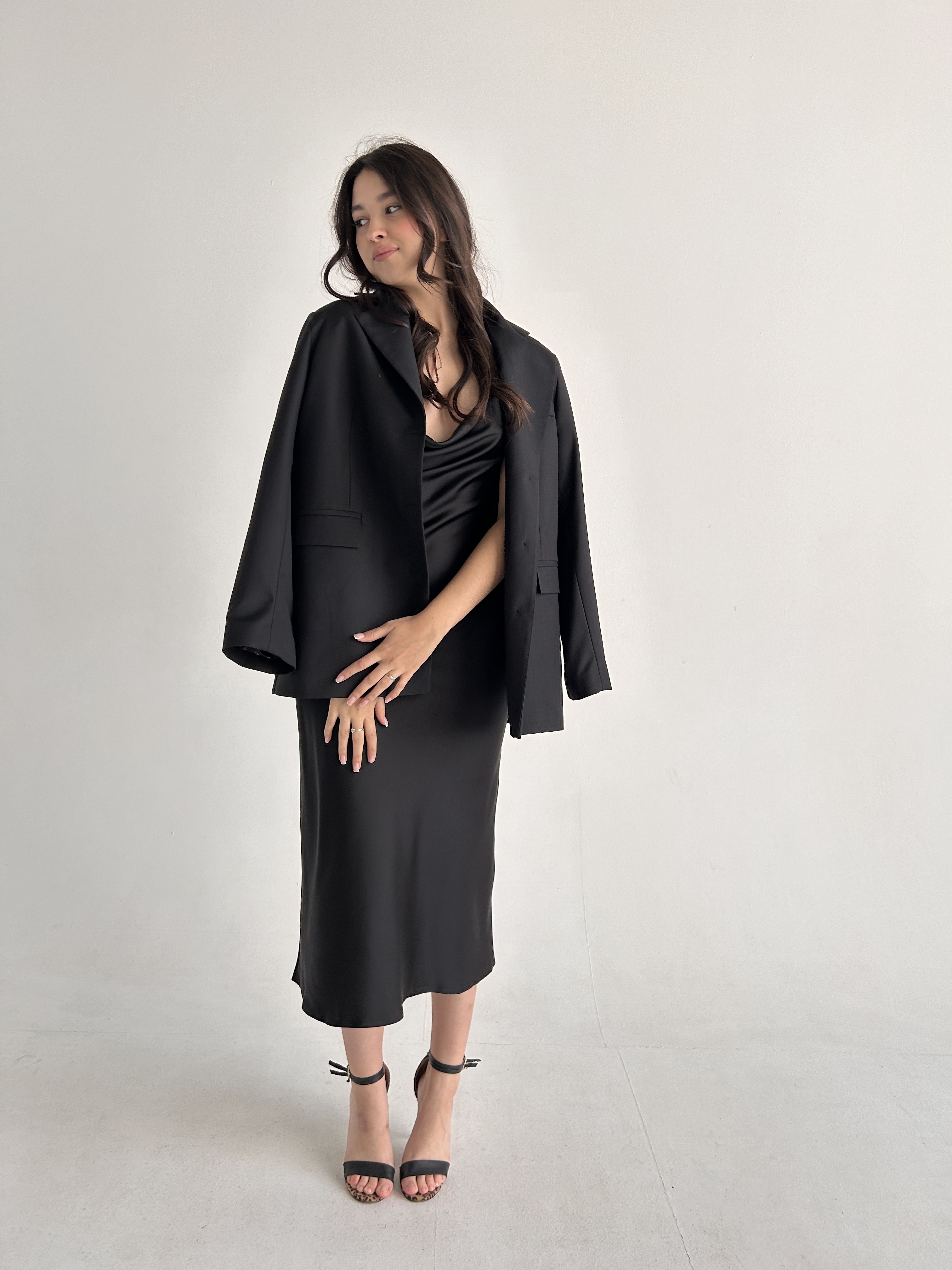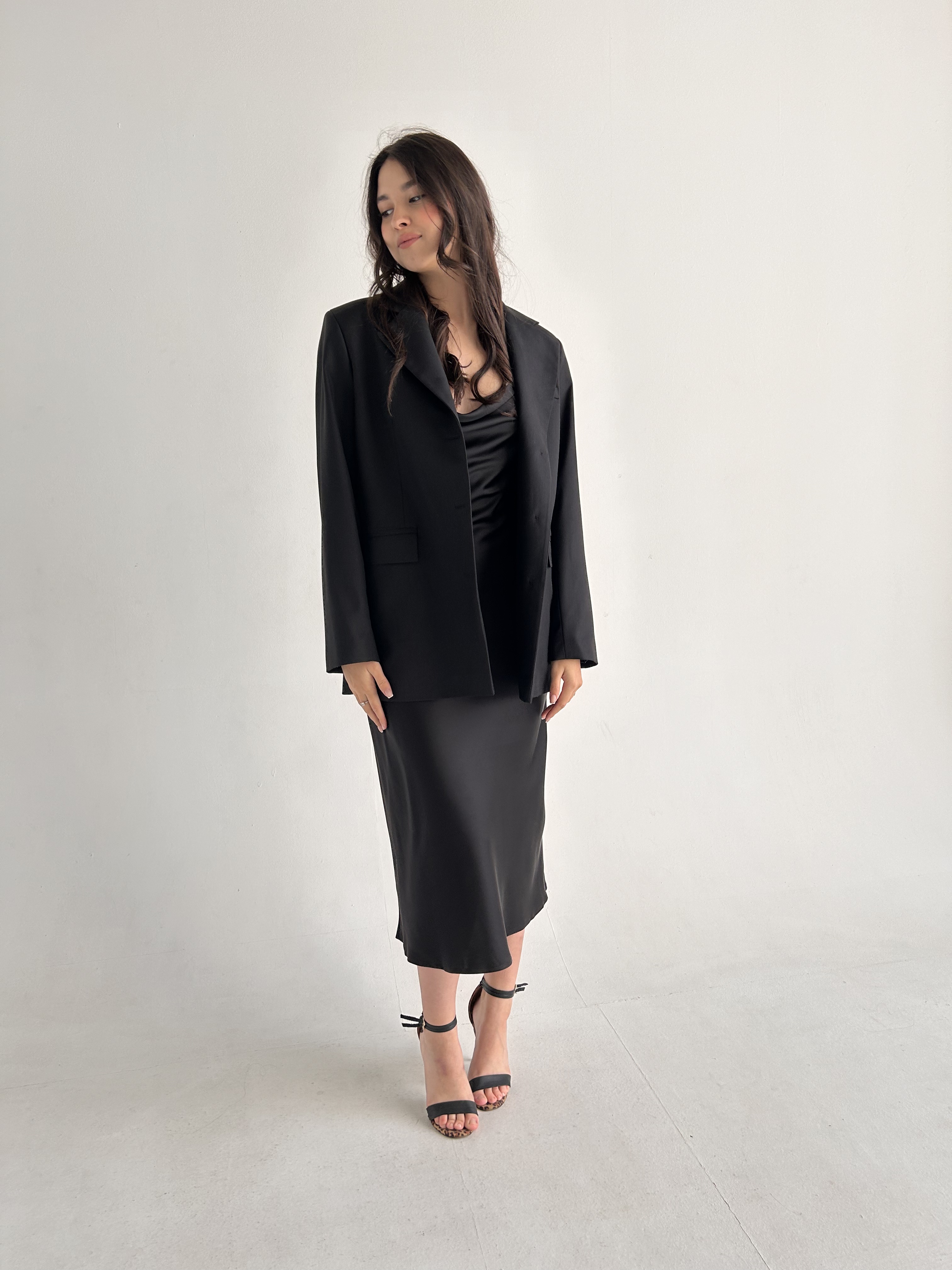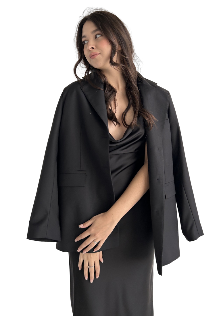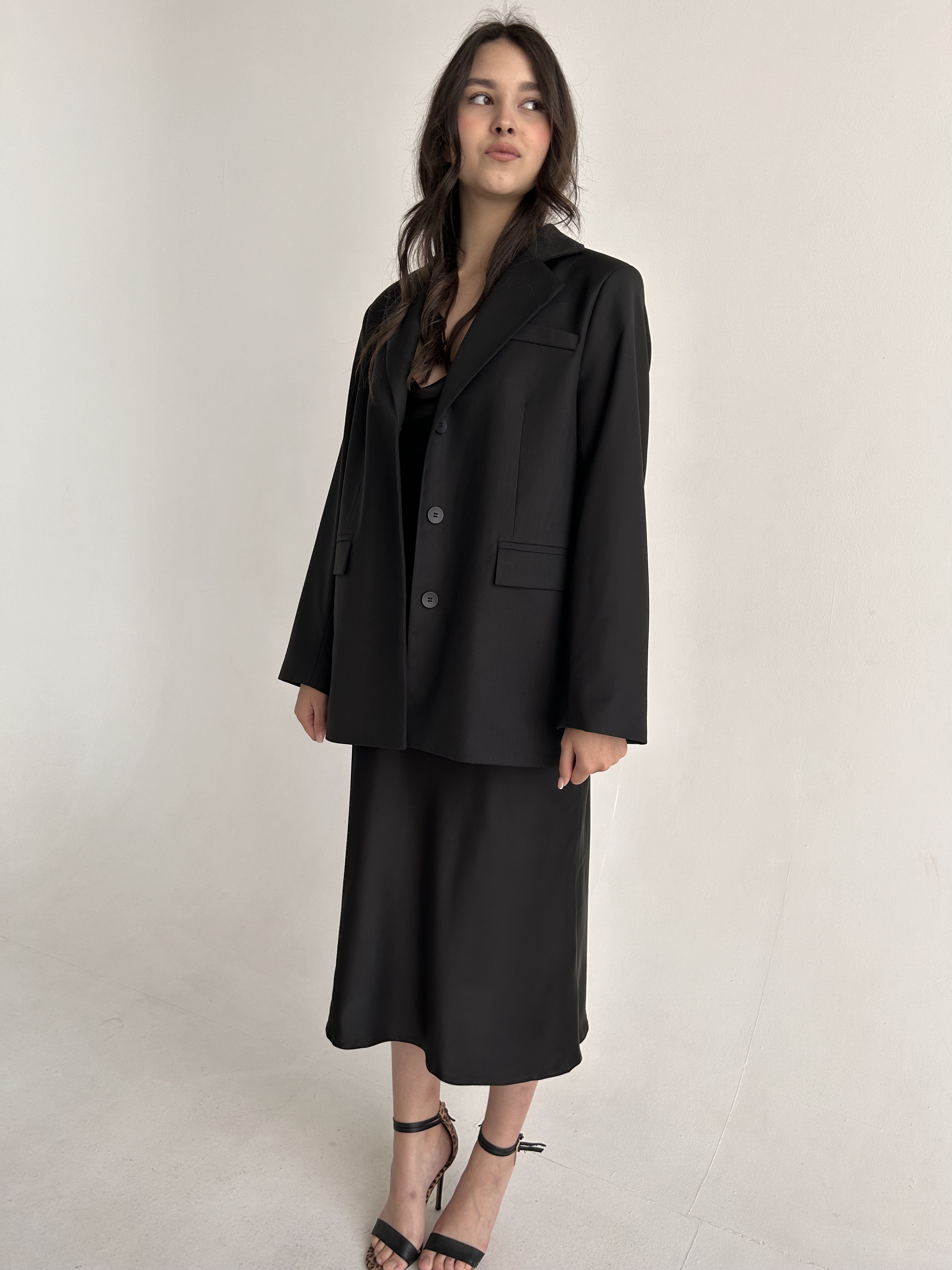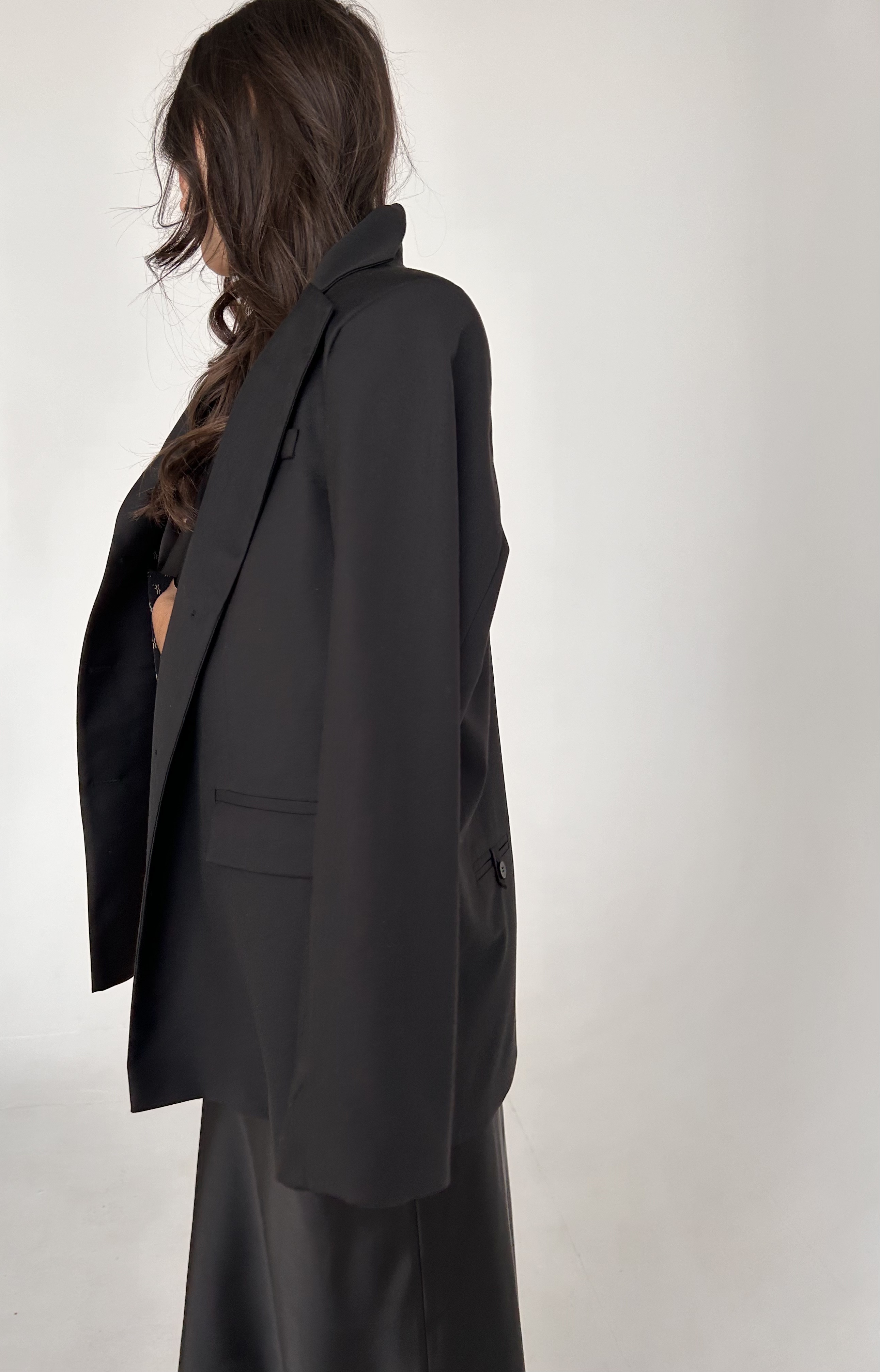 - За идеальную посадку и комфорт отвечает разрез на спине и рукав полуспортивного кроя